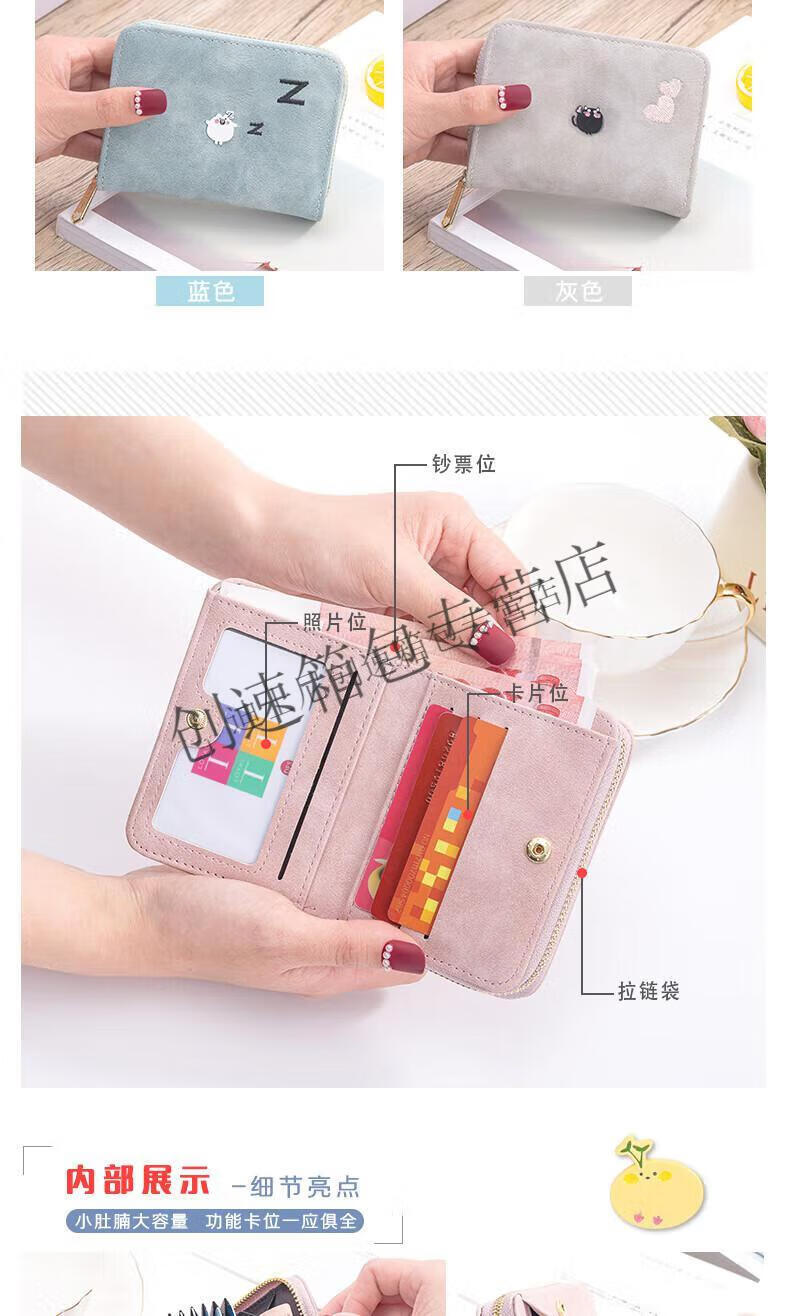 小茵熊(XIAOINGGBEAR)钱包女短款卡包一体包新款韩版时尚可爱小清新学生折叠拉链零钱包 粉色钱包(一体包)