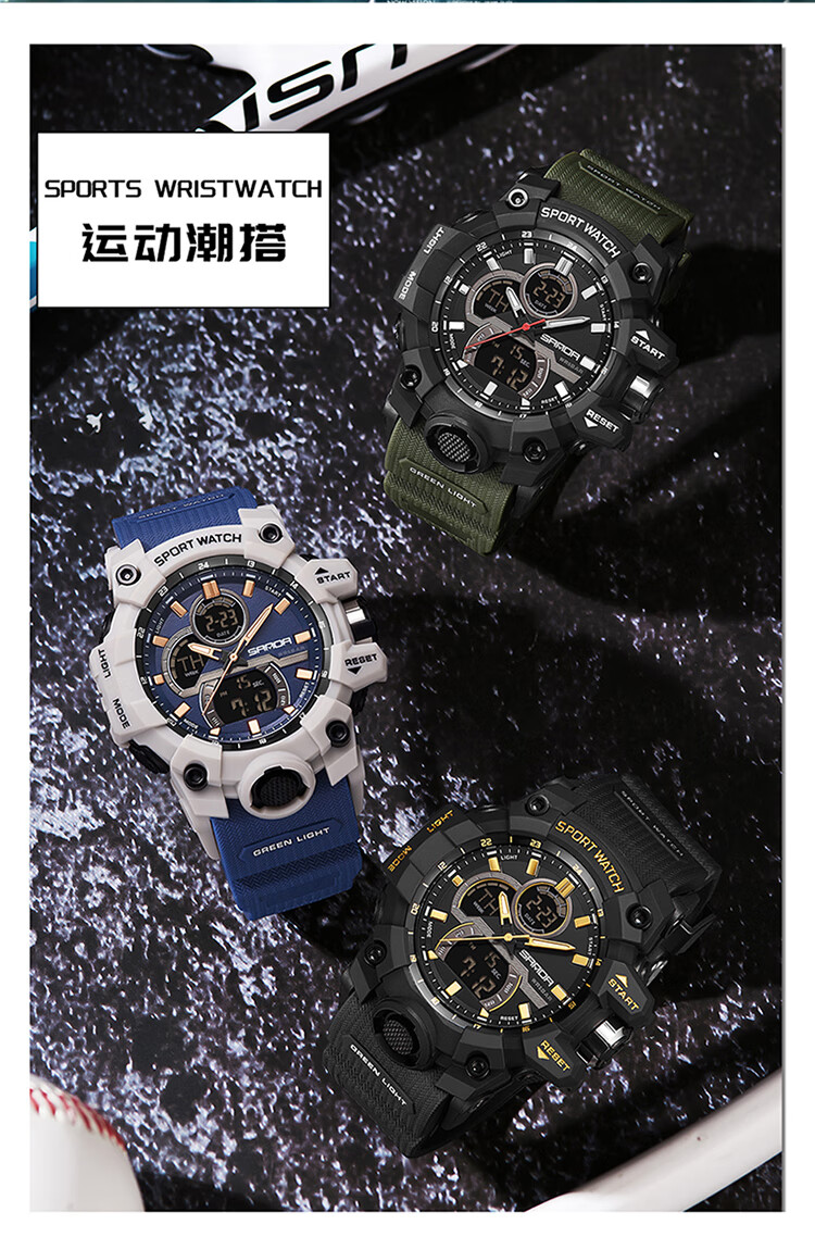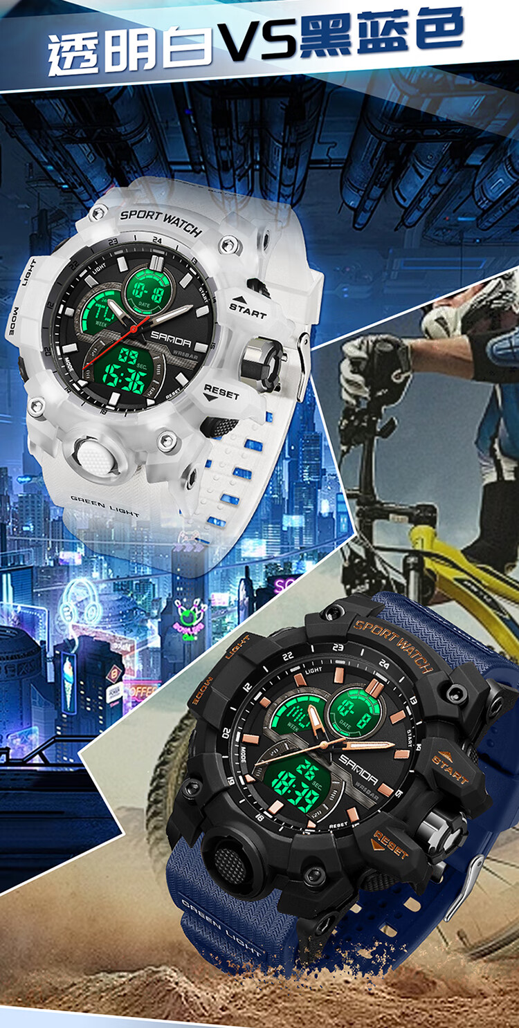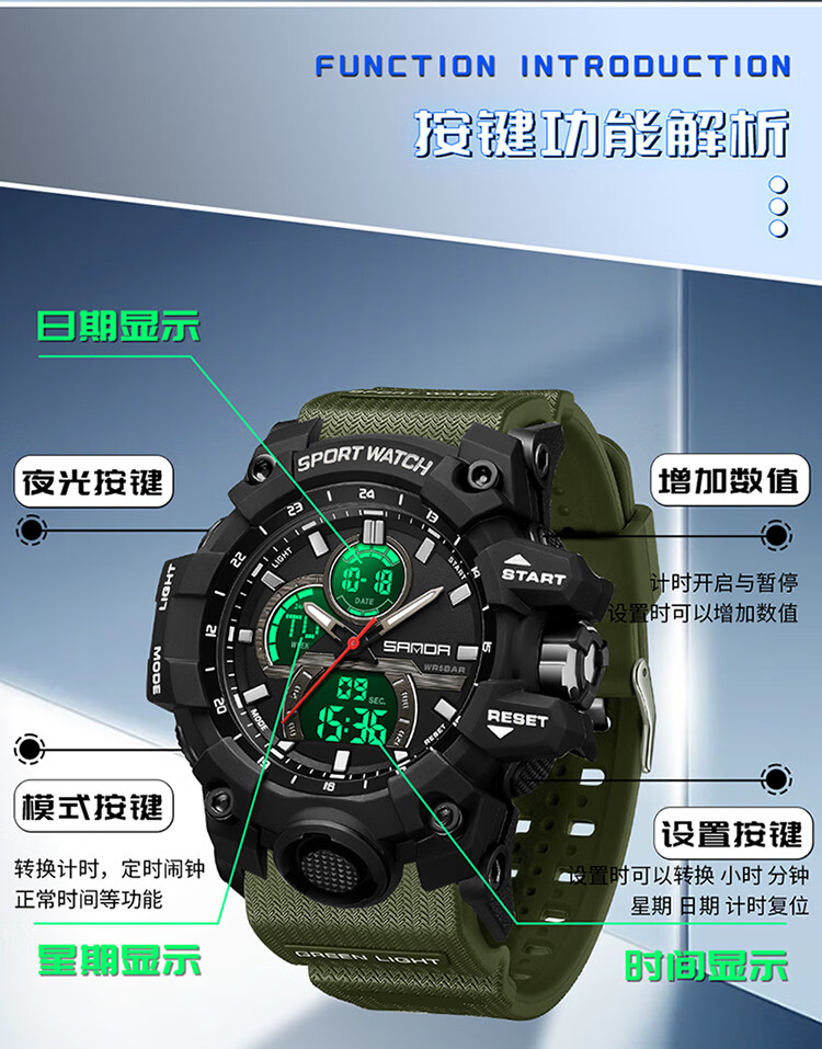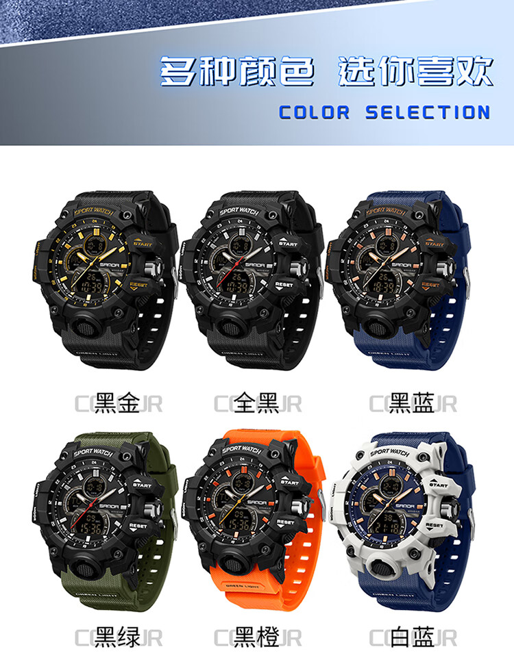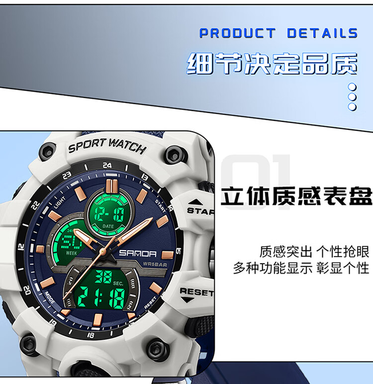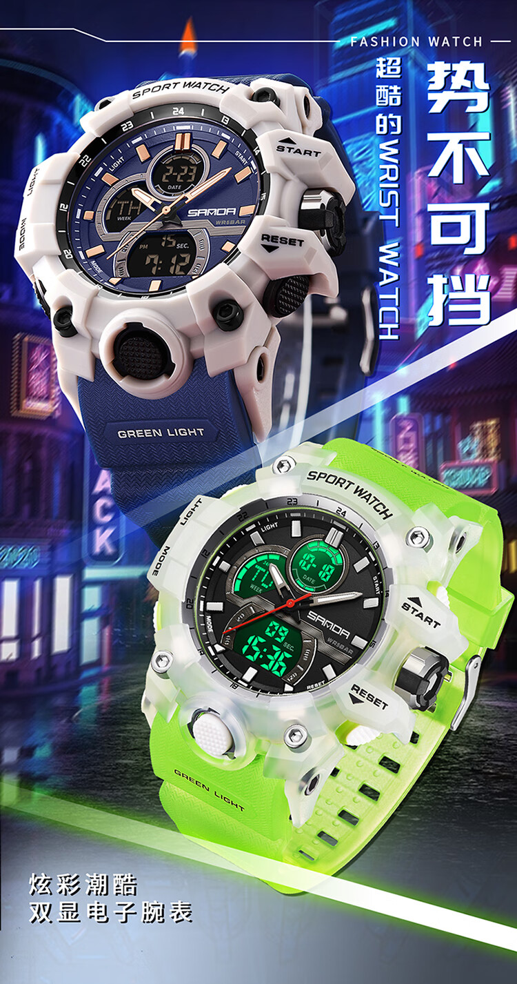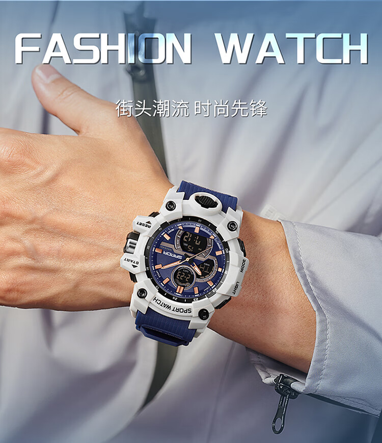 Lu Shizhe Uhr Herren, großes Zifferblatt, Student, Jugend, multifunktional, vielseitig, leuchtend, wasserdicht, elektronische Studentenuhr für Mittelschüler, 6198, Weiß, Blau