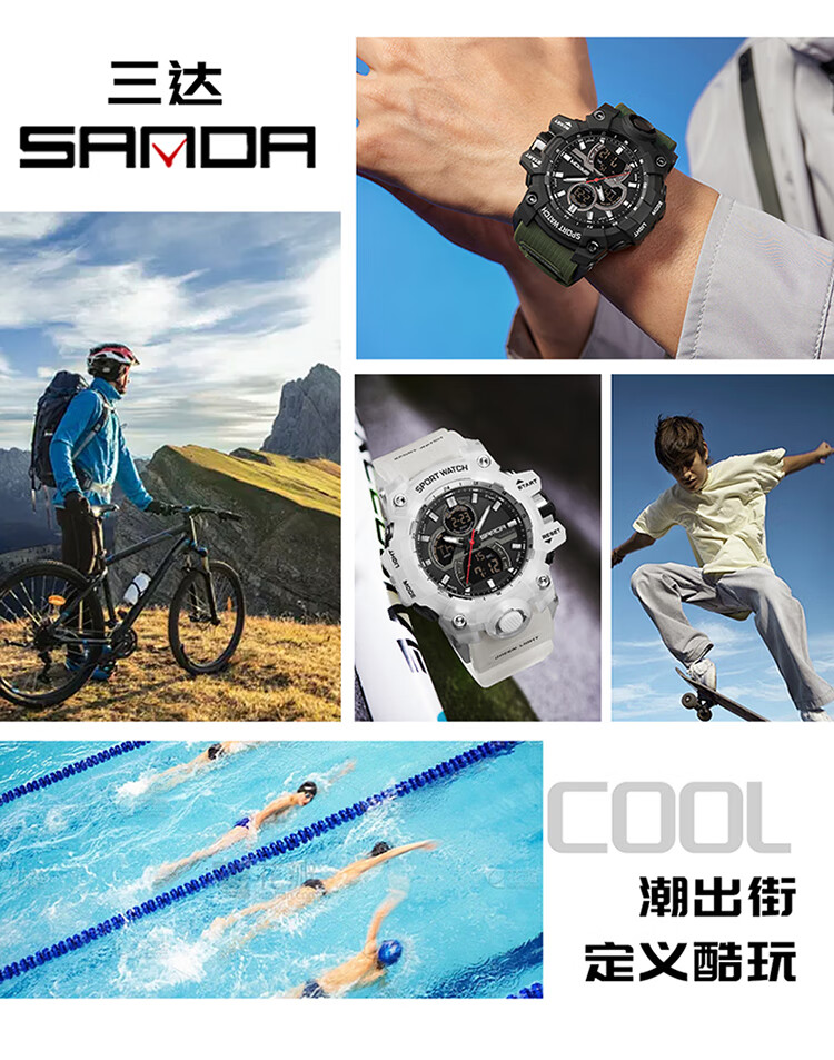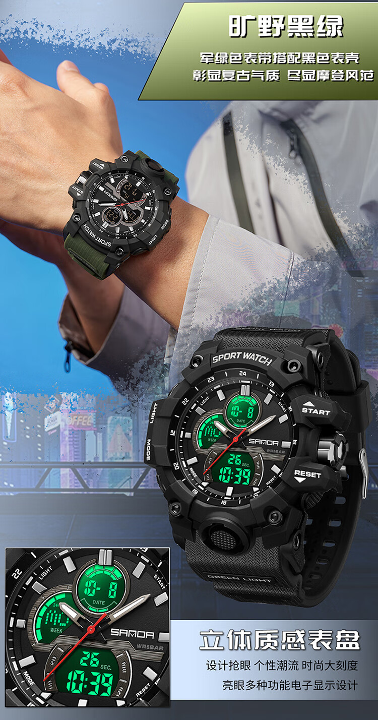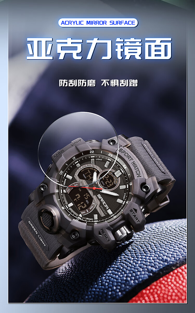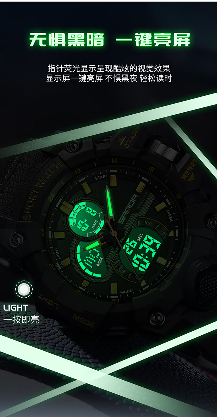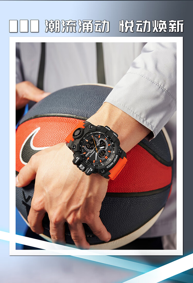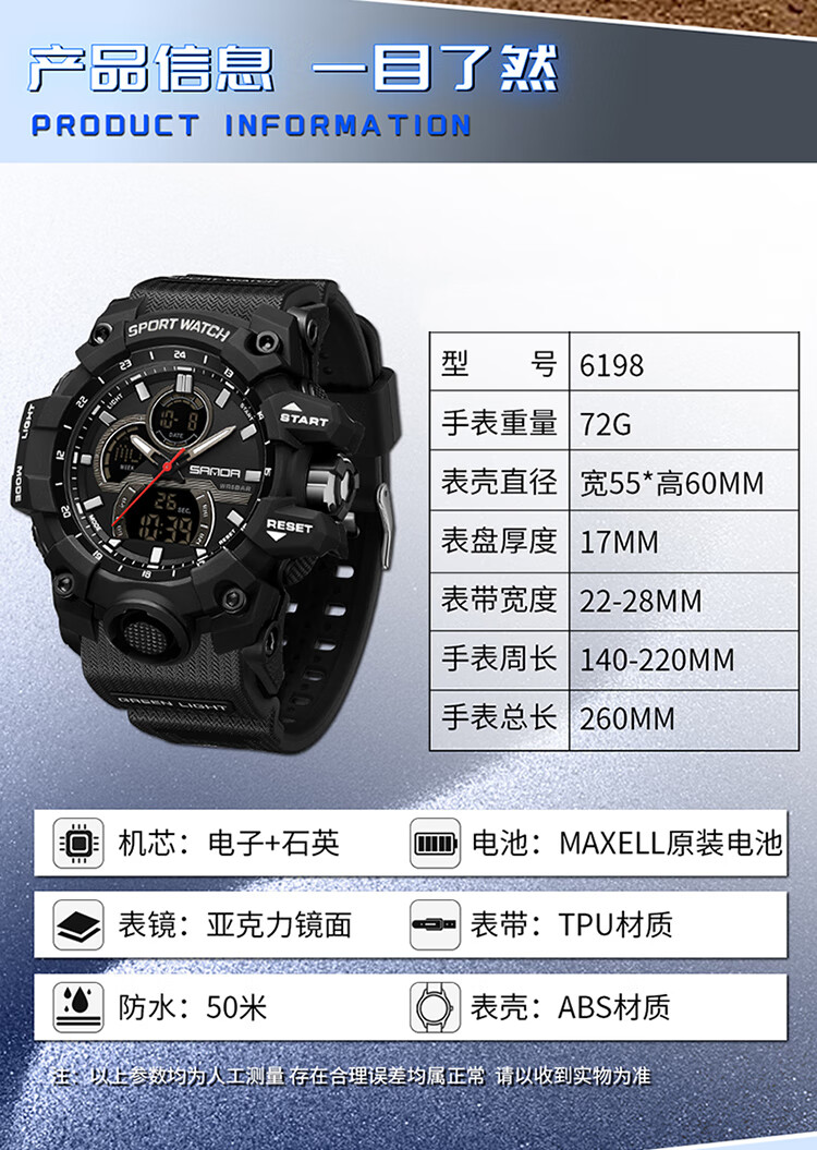Lu Shizhe Uhr Herren, großes Zifferblatt, Student, Jugend, multifunktional, vielseitig, leuchtend, wasserdicht, elektronische Studentenuhr für Mittelschüler, 6198, Weiß, Blau