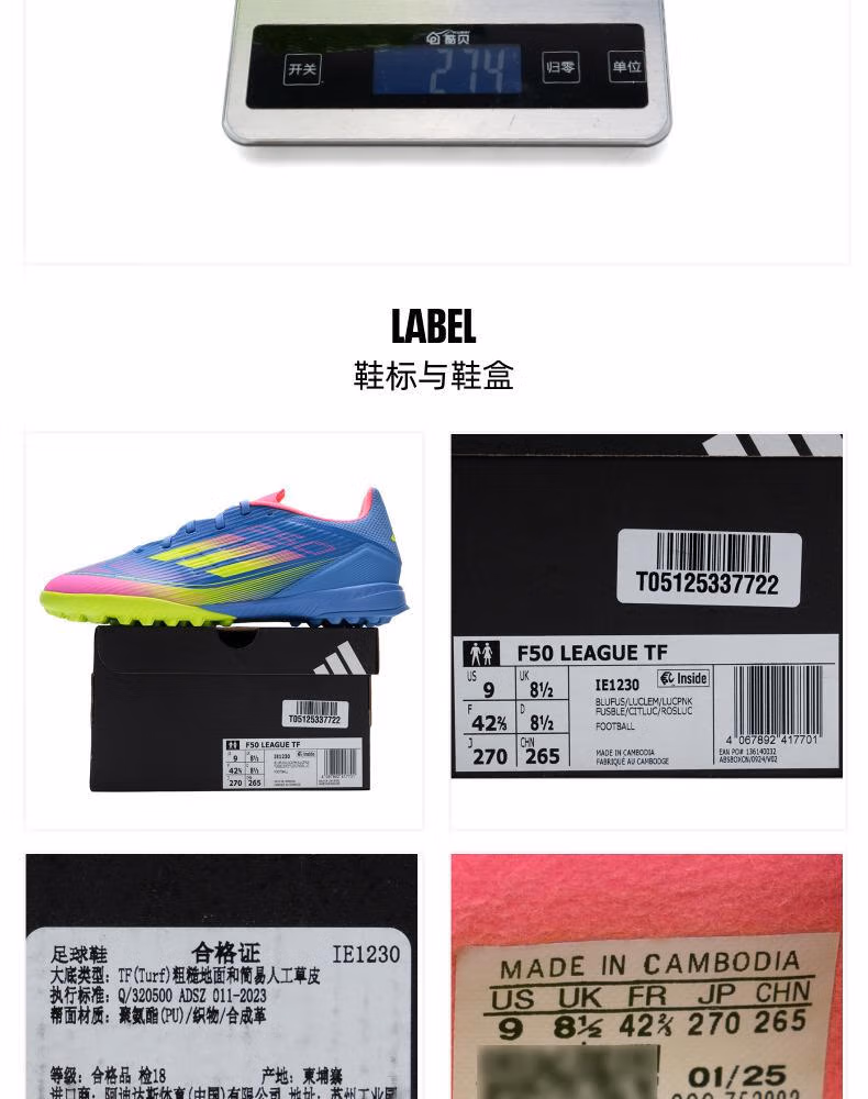 Adidas (adidas) football shoes men's shoes 2025 autumn new F50 CLUB TF broken nail anti-slip game training shoes IF1348 IF1343 mid-range 39