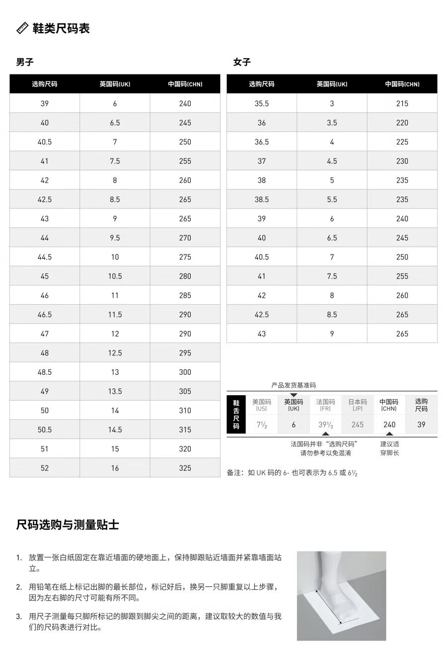 China (cm) 36 - 37 38 - 39 40 - 42 43 - 44 45 - 47