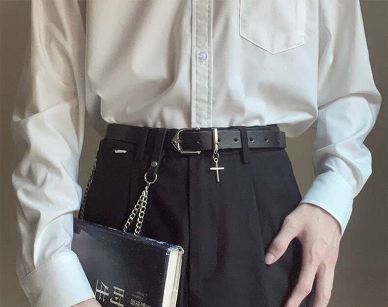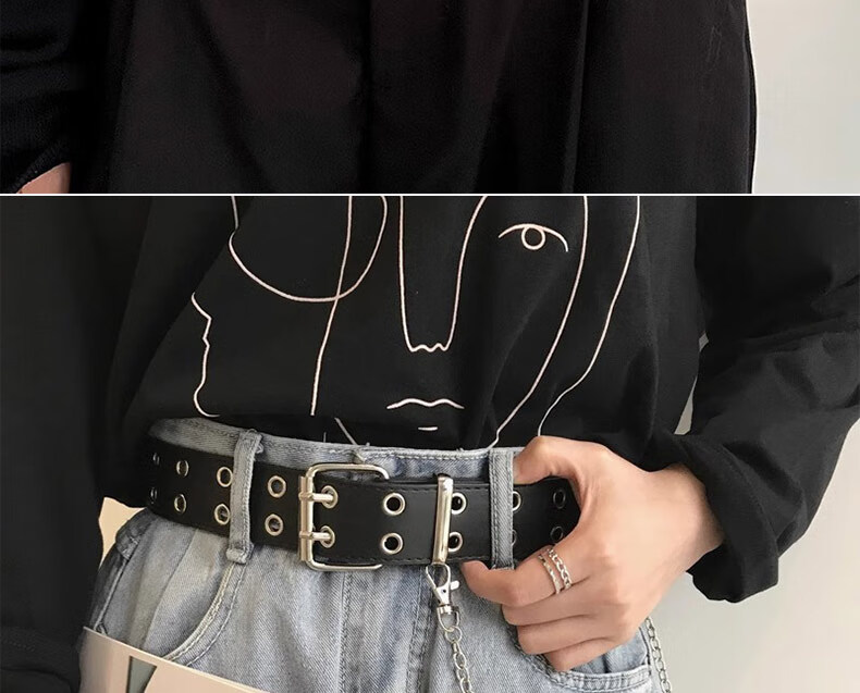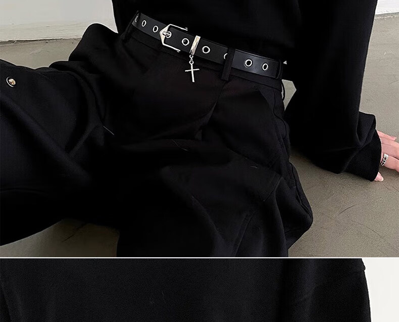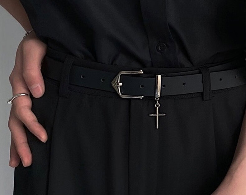 星昔皮带男ins韩版原宿复古个性时尚腰带简约学生西装裤带休闲男女潮 十字架皮带黑色
