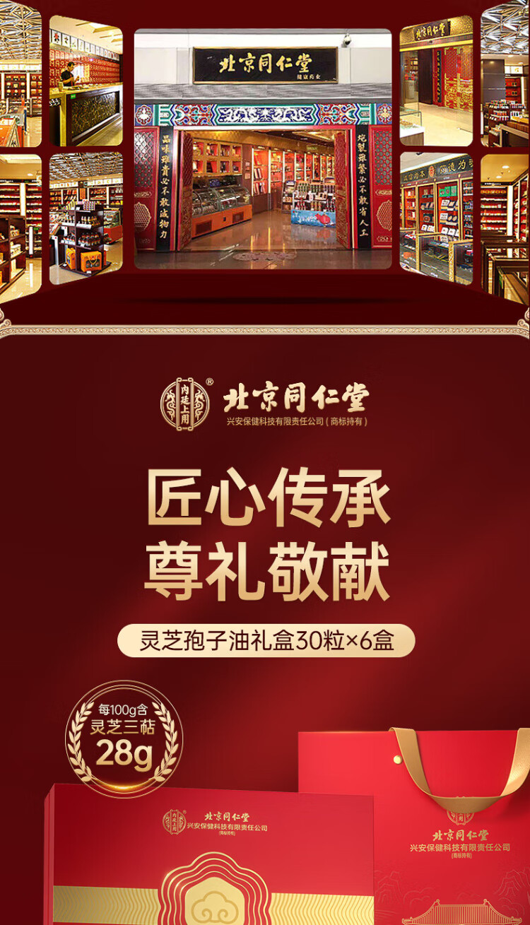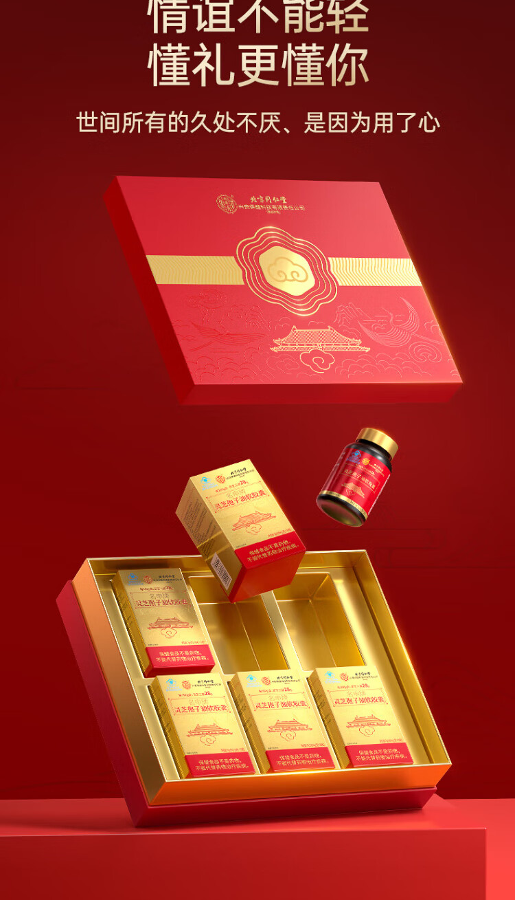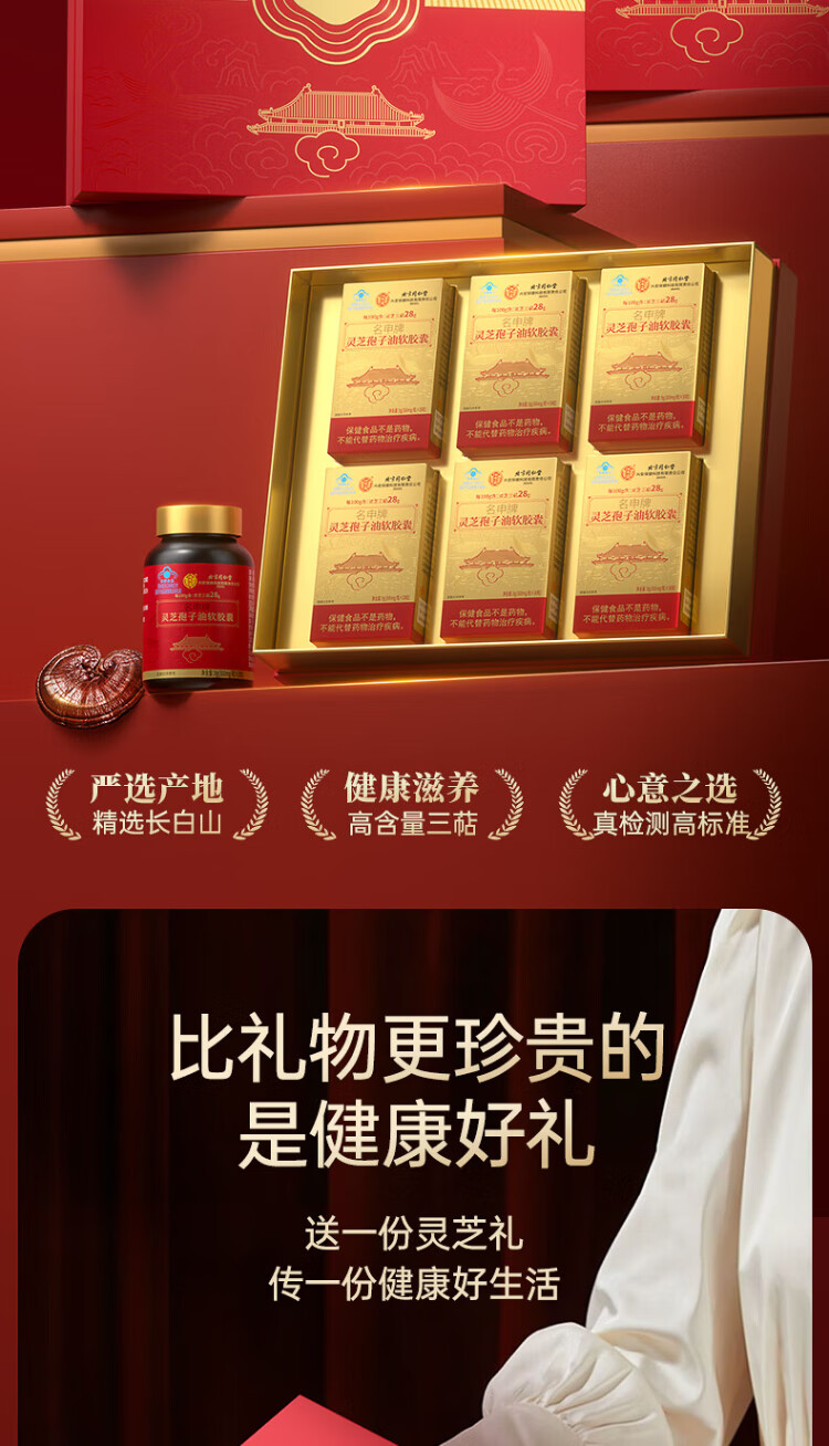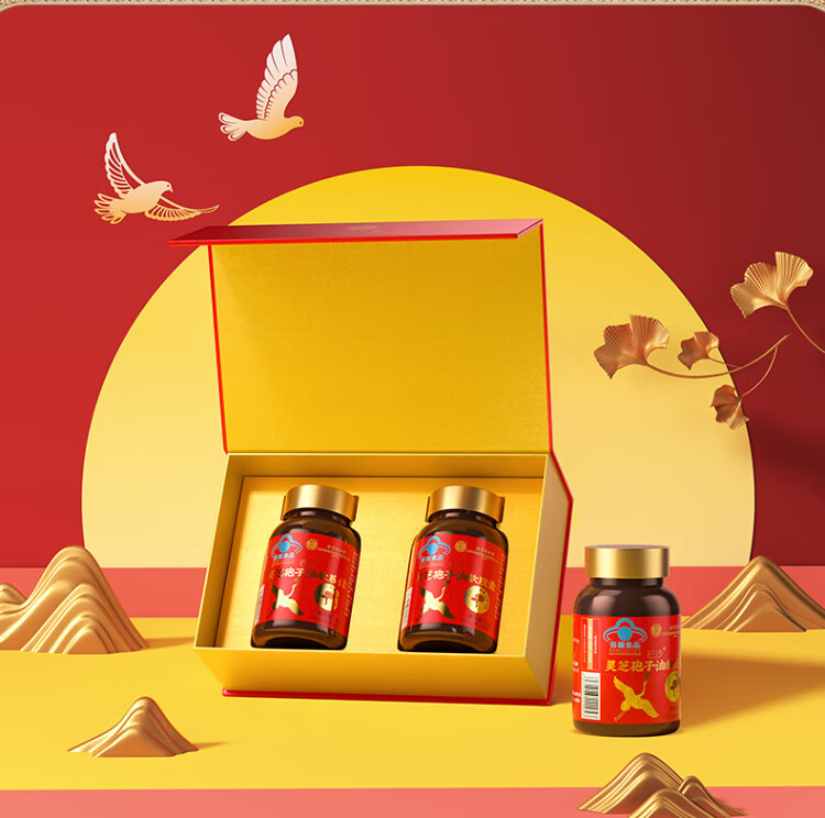 同仁堂【百年老字号】灵芝孢子粉油软胶囊中秋礼盒增强免疫力营养保健品 【丹宸鹤瑞·礼盒】2瓶60粒装/买5送1