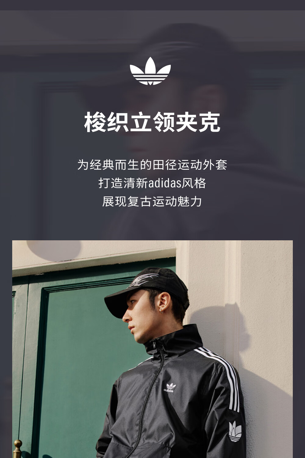 adidas休闲简约三条纹梭织立领夹克外套男装秋季阿迪达斯三叶草   黑色(推荐选大一码)   L