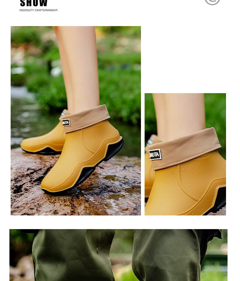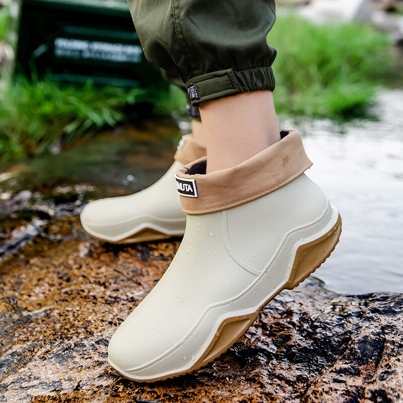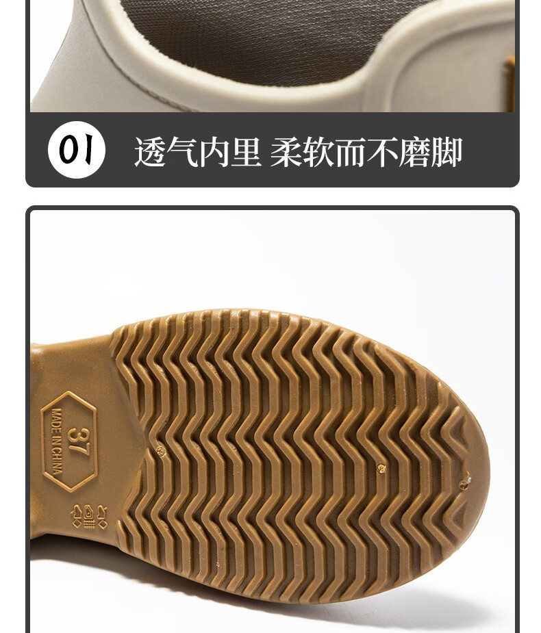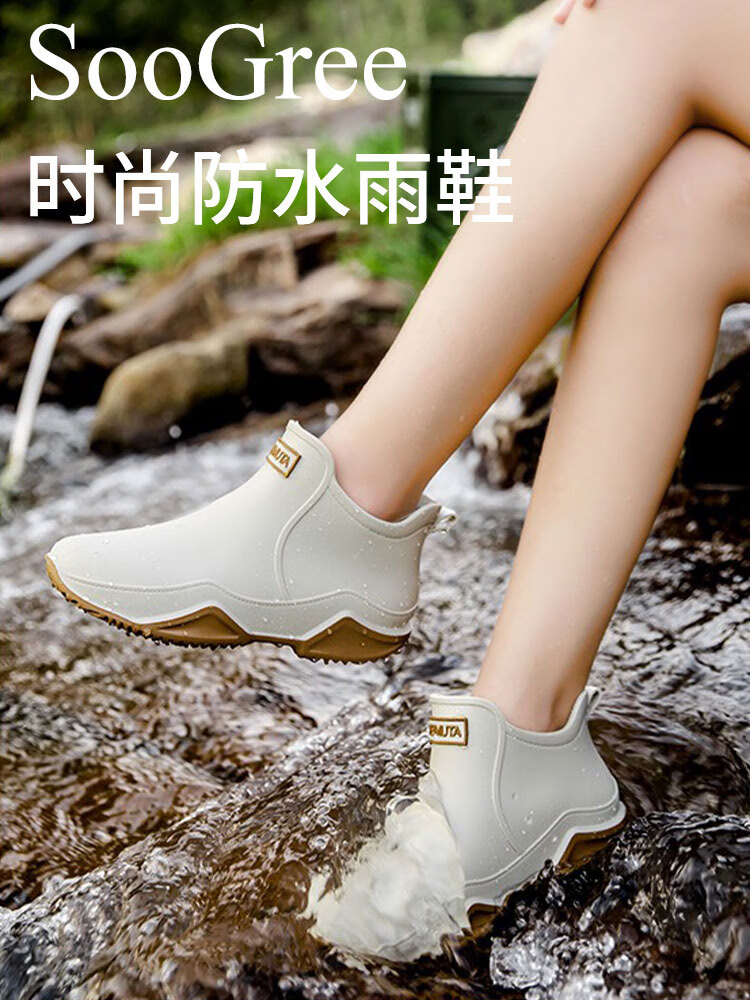 SooGree雨鞋男女情侣外穿户外露营钓鱼洗车徒步骑行防水防滑耐磨水工作鞋 防滑雨鞋米白色-无棉套 41