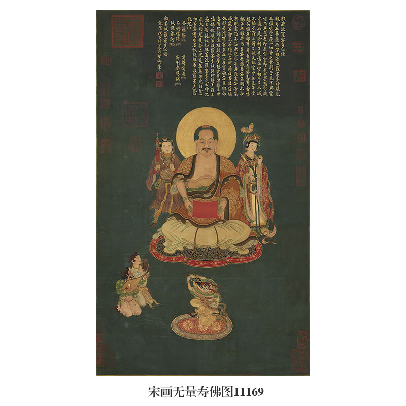 Gemälde von Amitayus Buddha aus der Song-Dynastie, antike Gemälderolle, berühmtes Gemälde, Replik eines antiken Gemäldes, dekoratives hängendes Gemälde, Gemälde von Tathagata beim Predigen, Bild 11165 aus der Song-Dynastie, 30 x 50 cm (Gemälde in Herzgröße), milchig weiß gerahmt