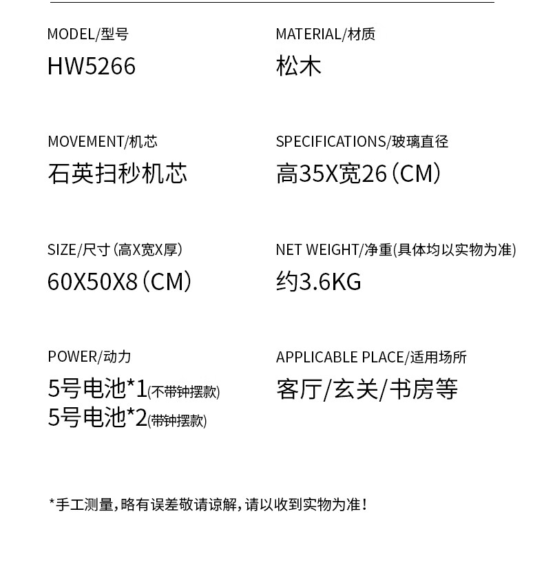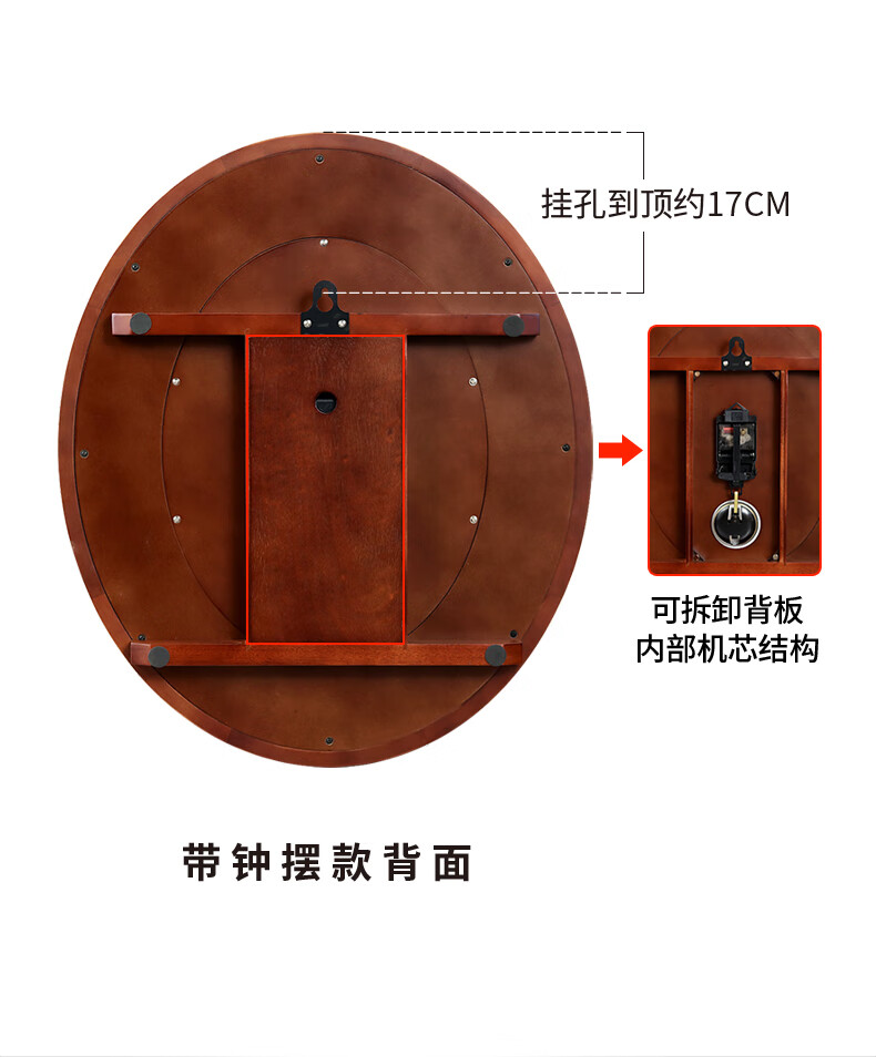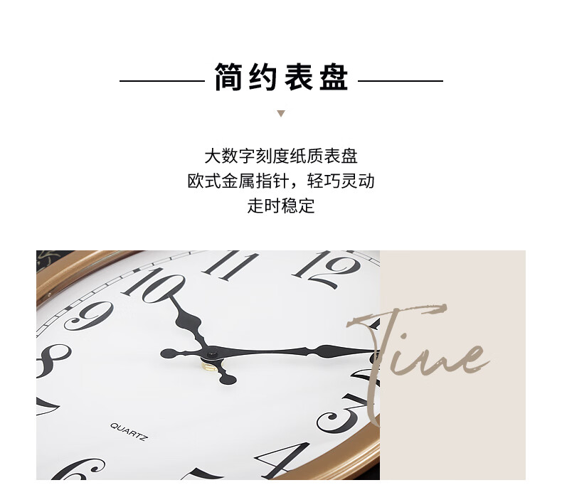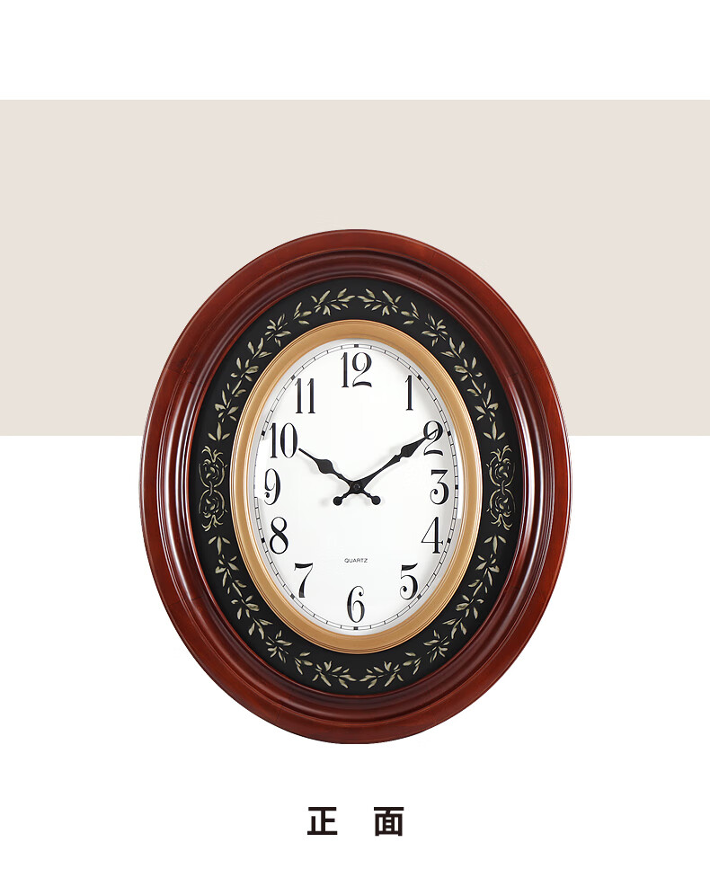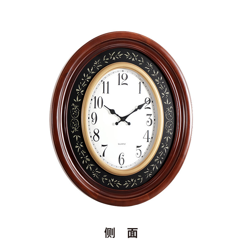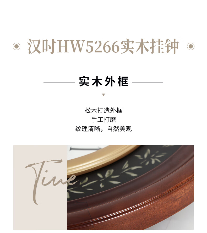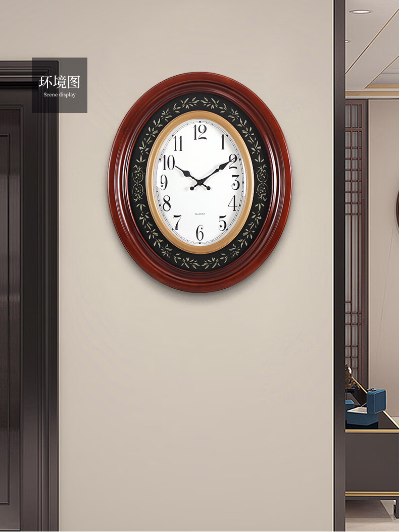 汉时(Hense)大尺寸椭圆实木挂钟客厅大堂挂墙时钟欧式高档大气石英钟表HW5266 带摇摆(高度60CM)