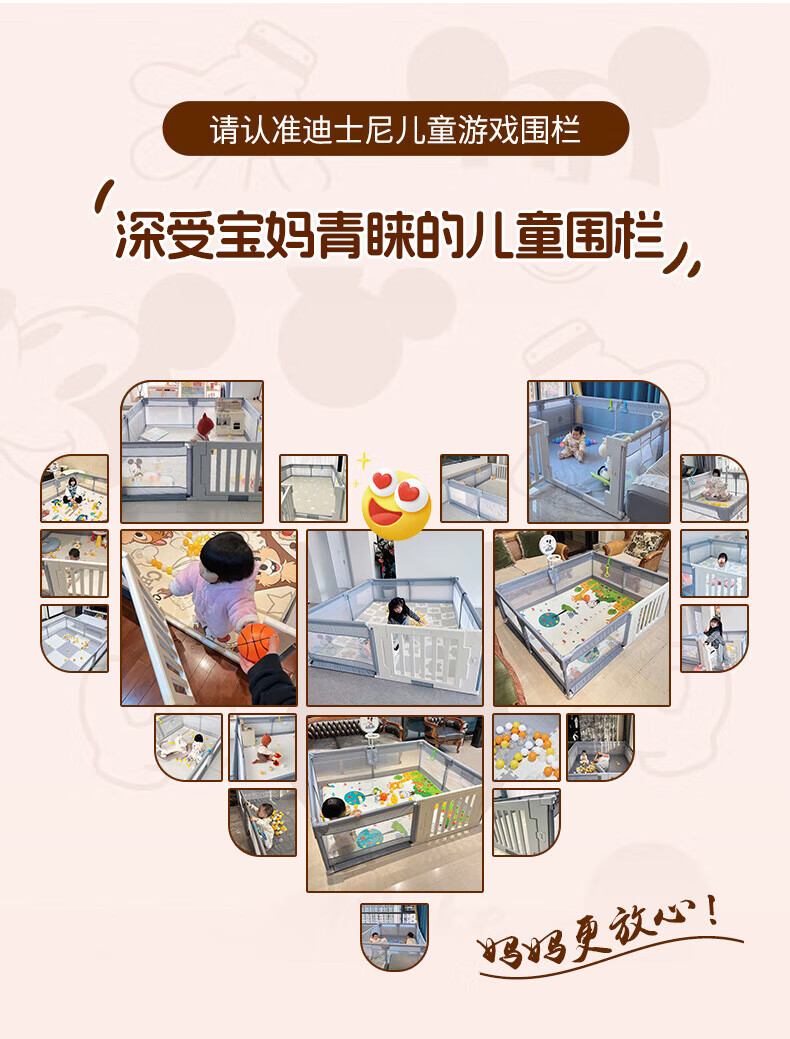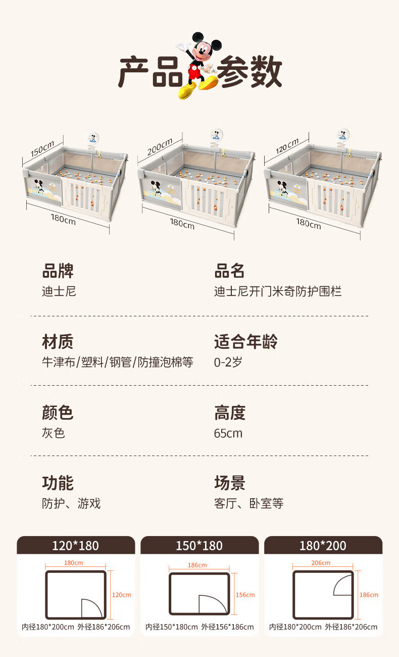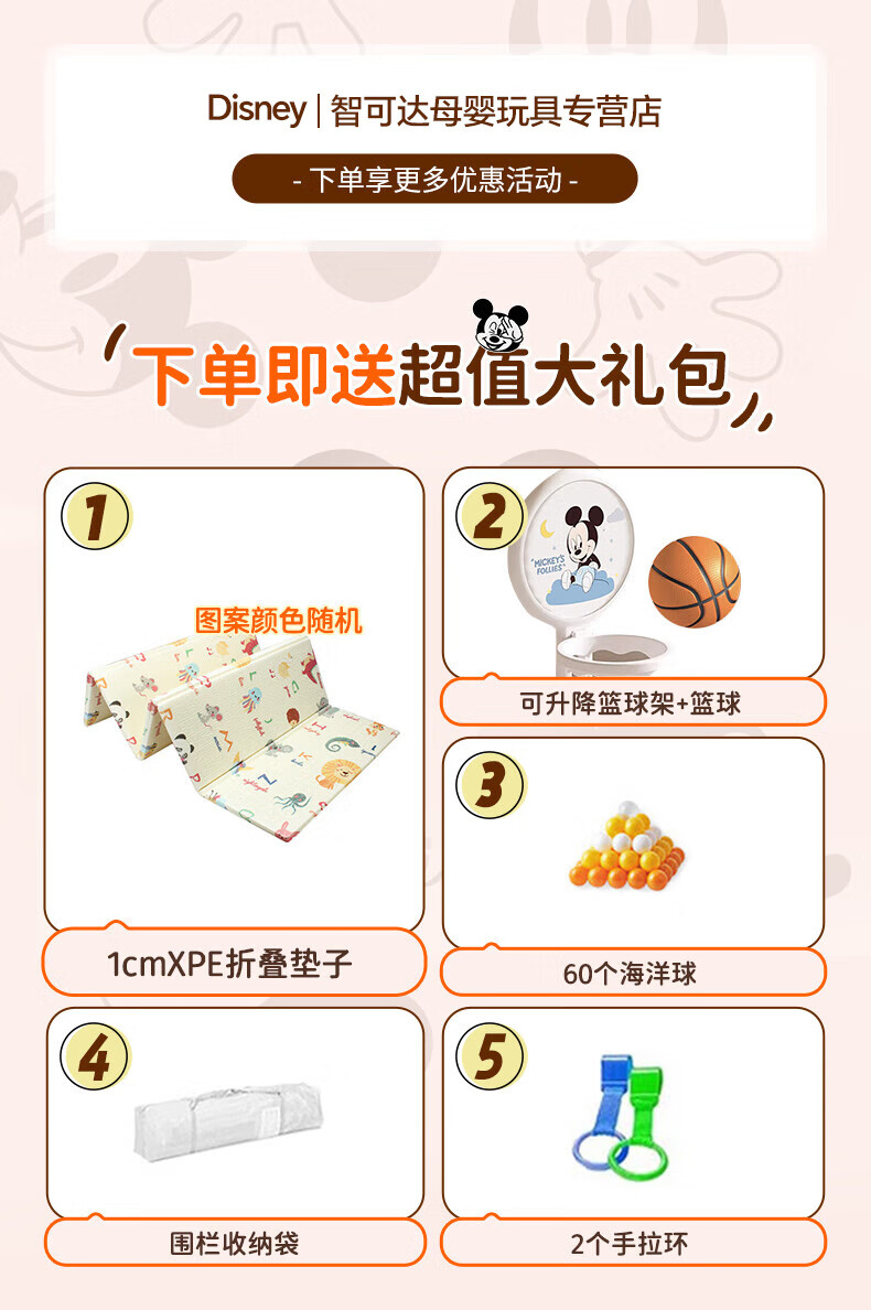 Disney children's games, baby climbing mat, baby fence, floor fence, crawling mat, living room guardrail, children's indoor playground, household door opening model丨180*200cm, free storage bag, 1cm mat+basketball+frame+60 ocean balls+2 pull tabs