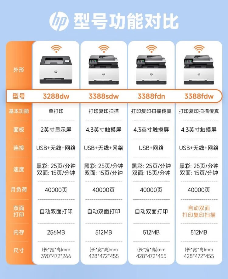 HP (HP) 3388sdw/3388fdw color laser multi-function printer automatic double-sided copying and scanning all-in-one machine 3388fdw (automatic double-sided printing, copying and scanning) official standard brand new authentic one-year door-to-door