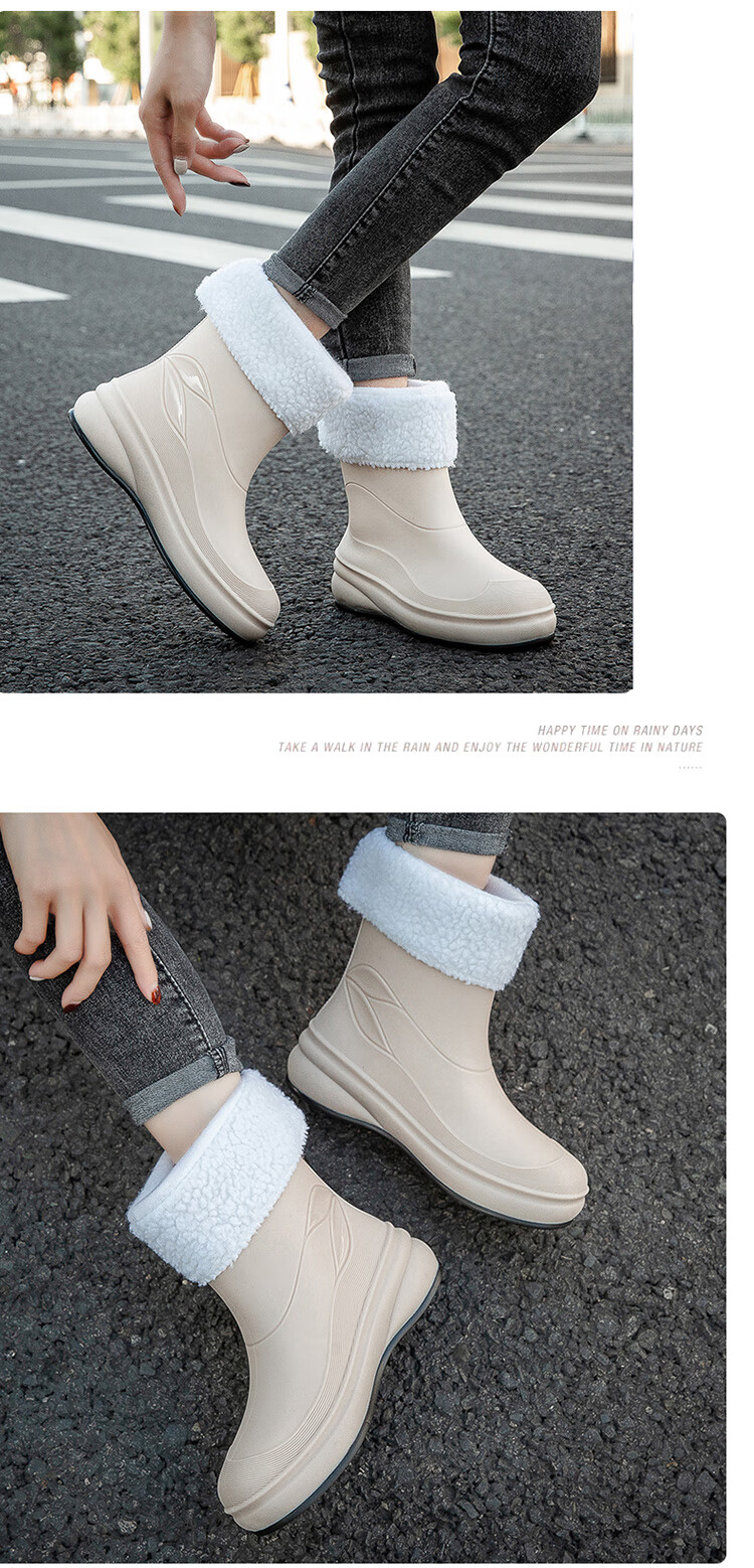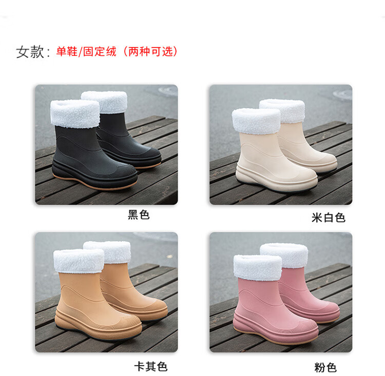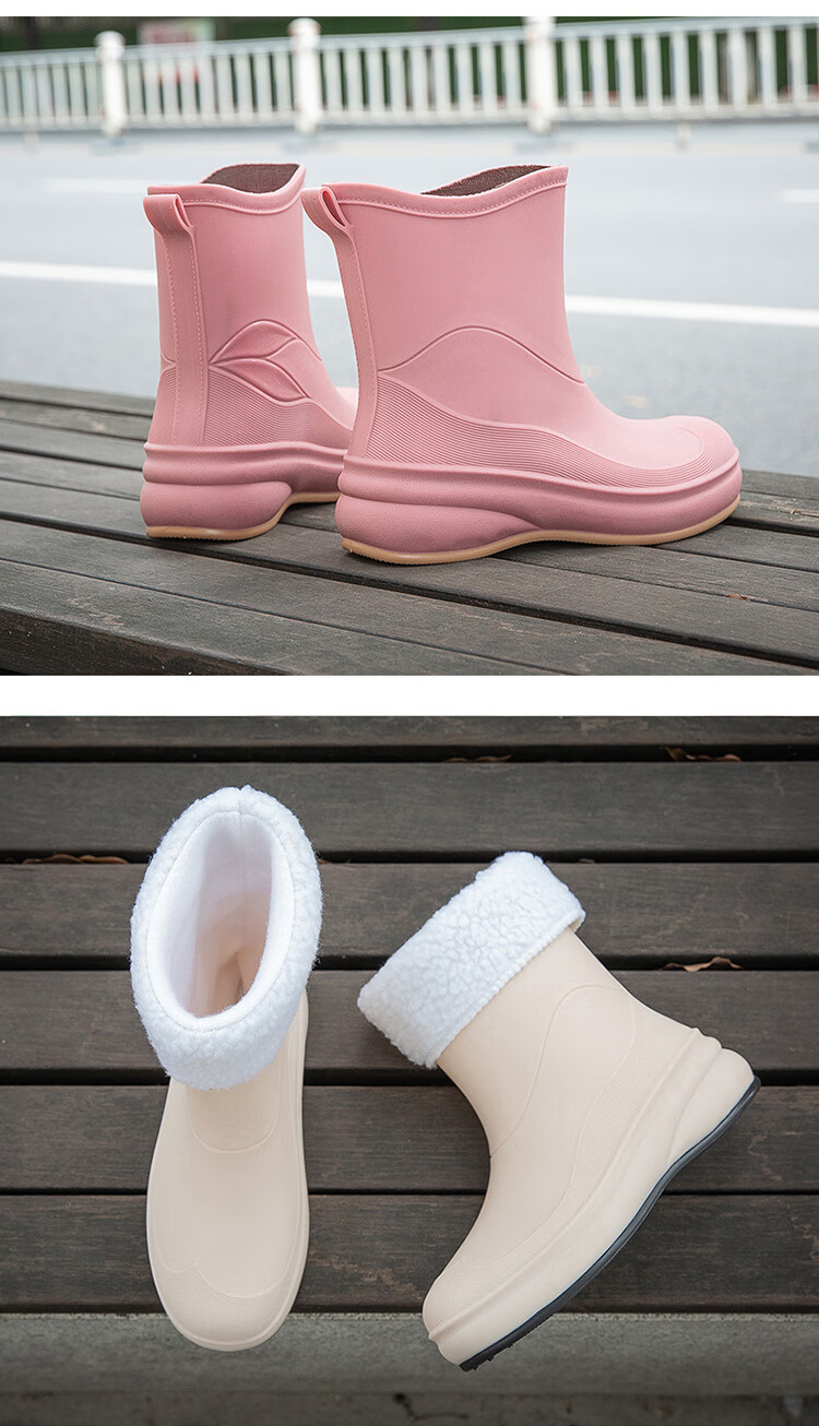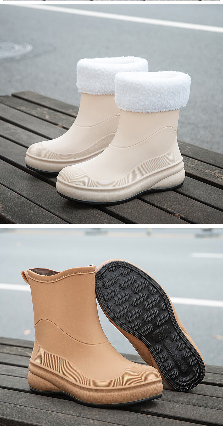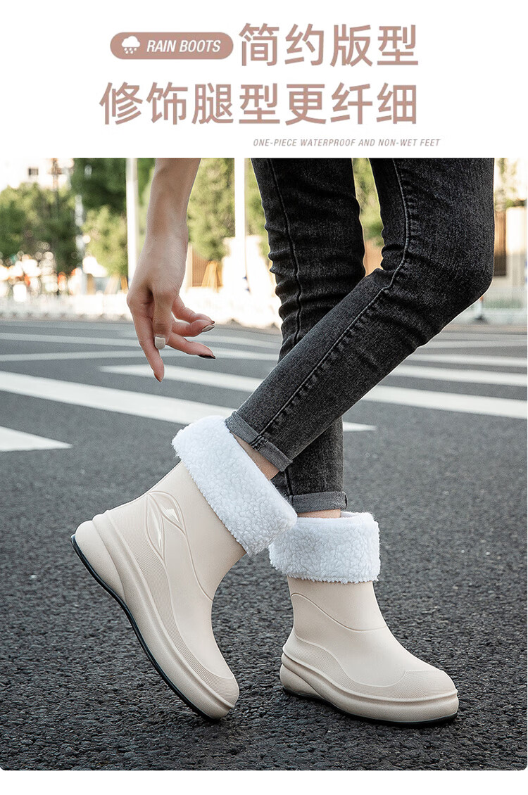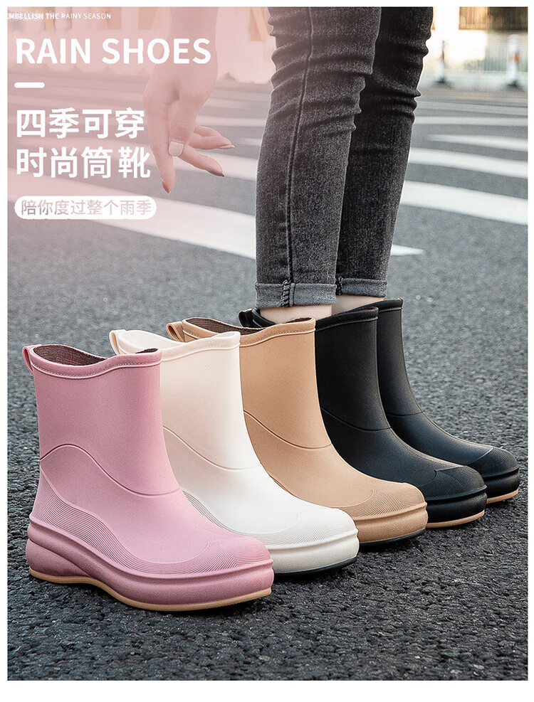 小回力家日系雨鞋女款时尚外穿防滑雨靴国潮新款工作胶鞋女士漂亮水鞋 858-1米白不加棉 标准码 36