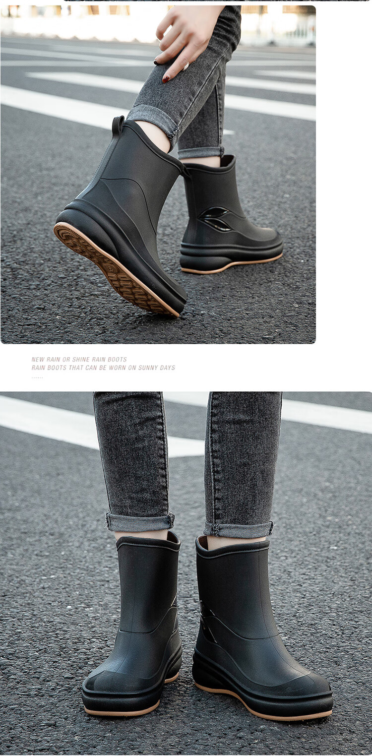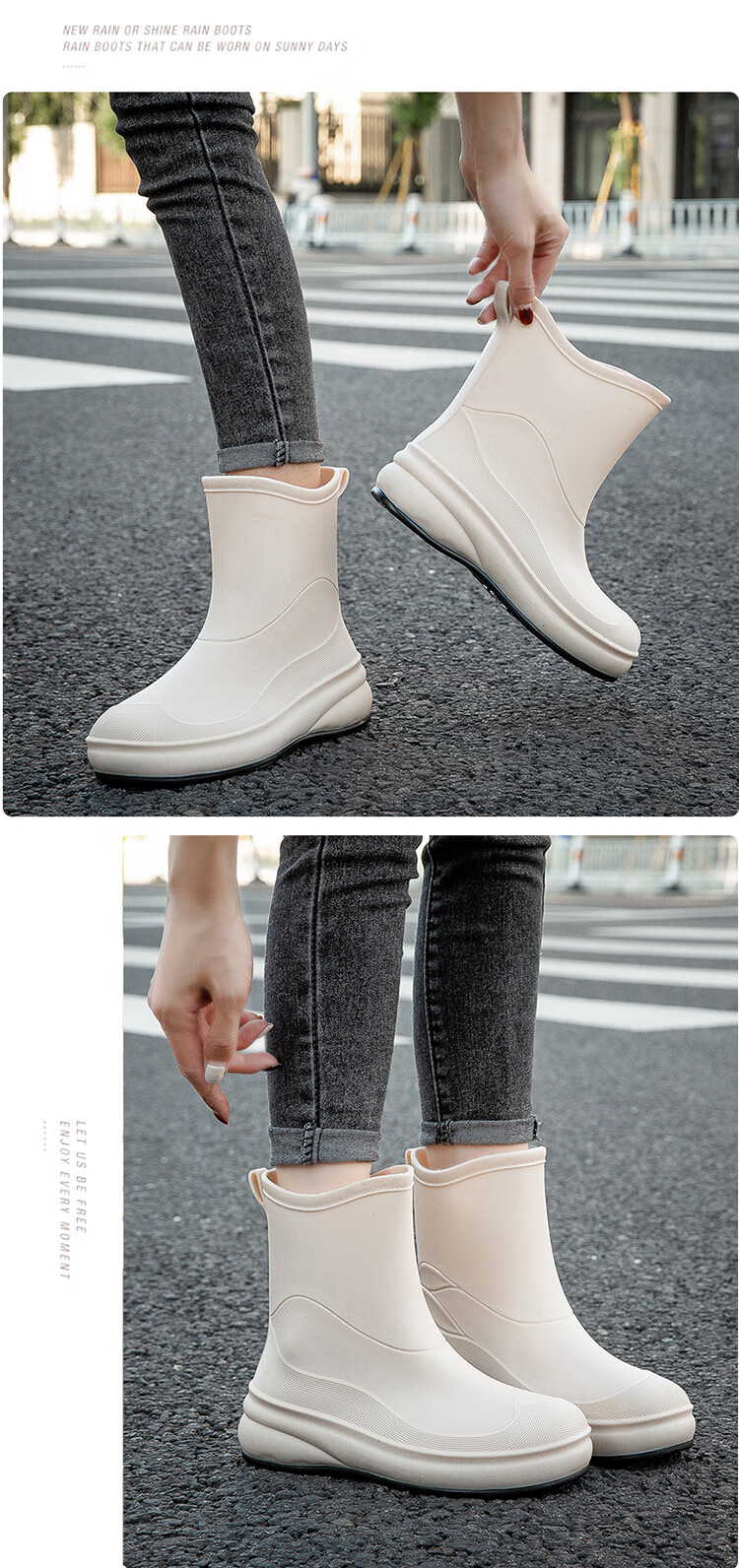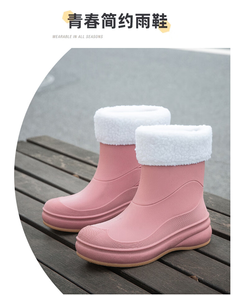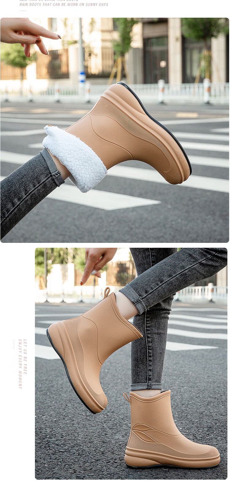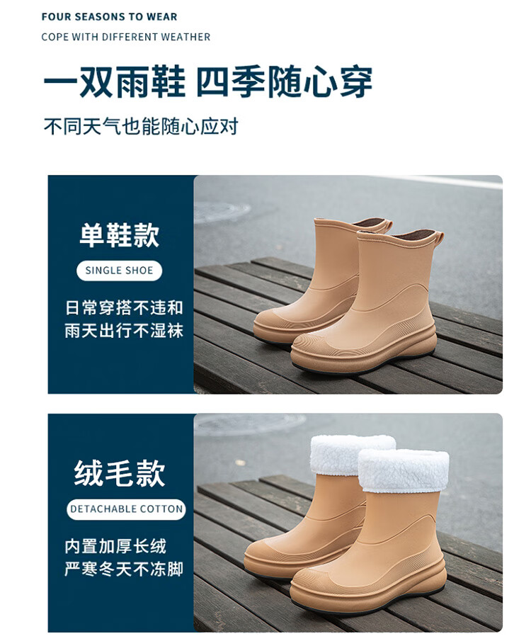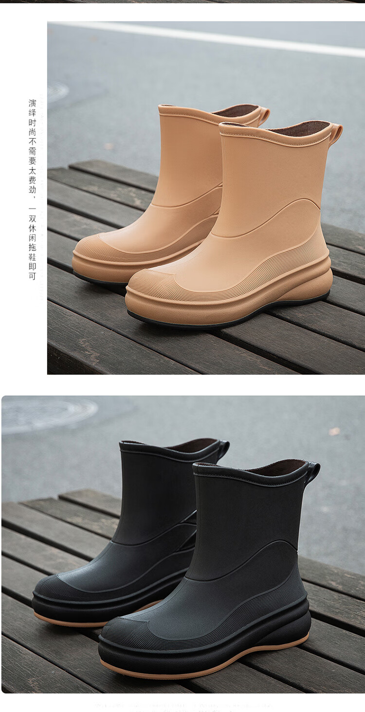小回力家日系雨鞋女款时尚外穿防滑雨靴国潮新款工作胶鞋女士漂亮水鞋 858-1米白不加棉 标准码 36