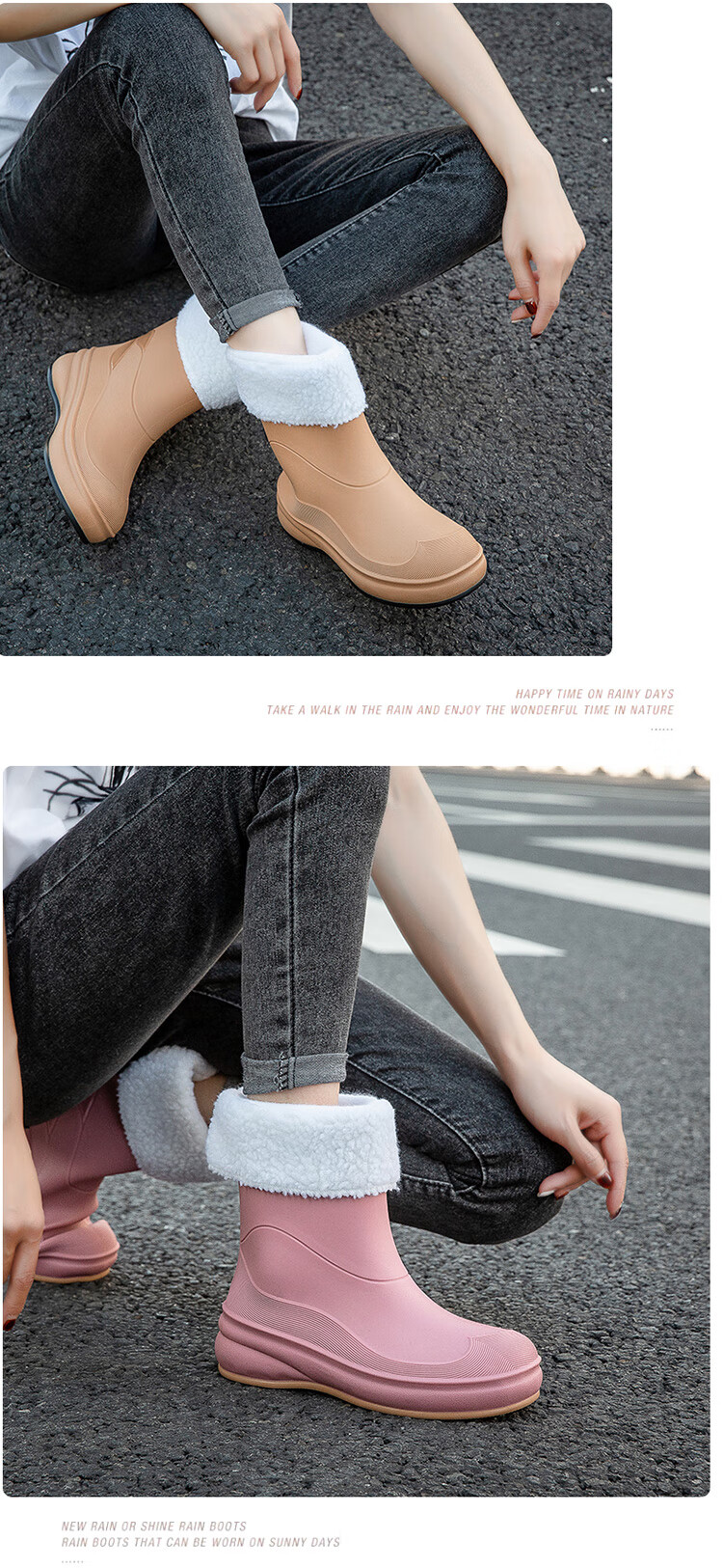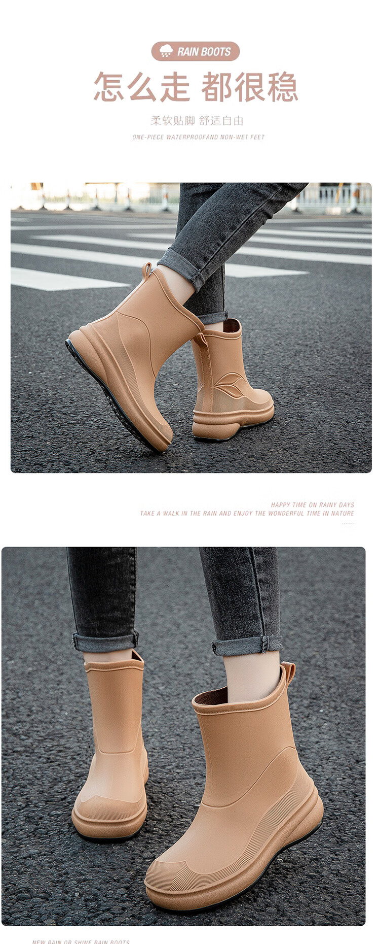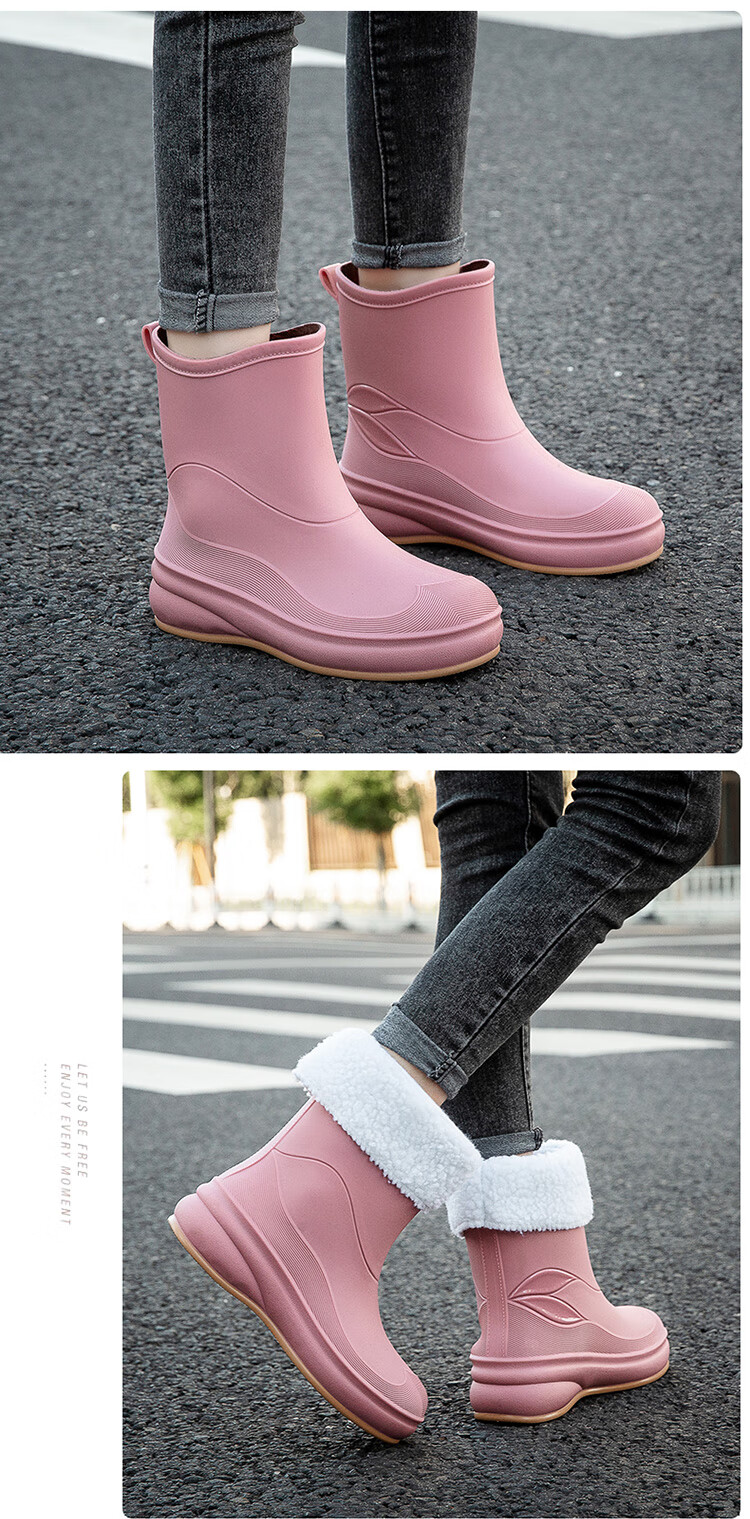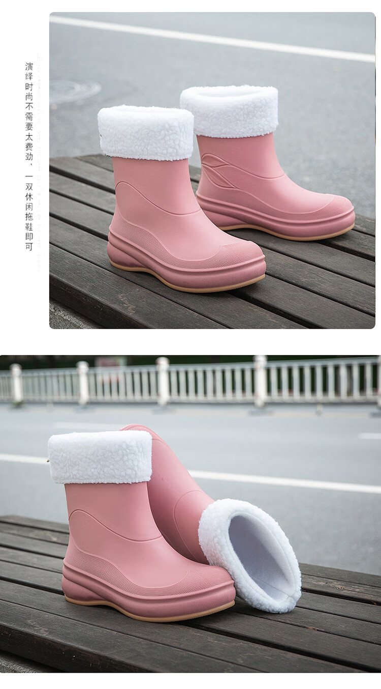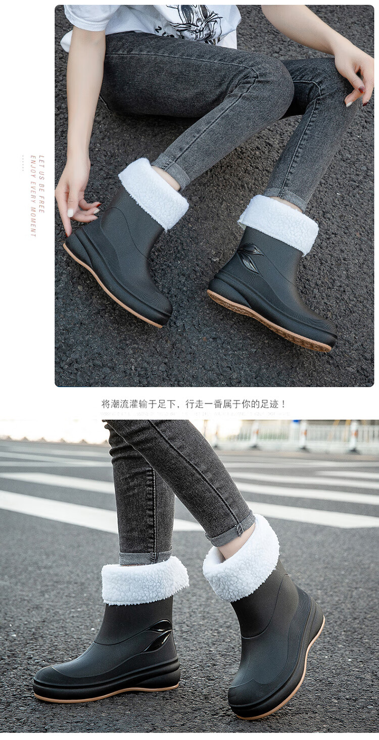 小回力家日系雨鞋女款时尚外穿防滑雨靴国潮新款工作胶鞋女士漂亮水鞋 858-1米白不加棉 标准码 36