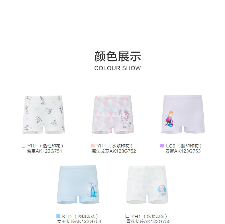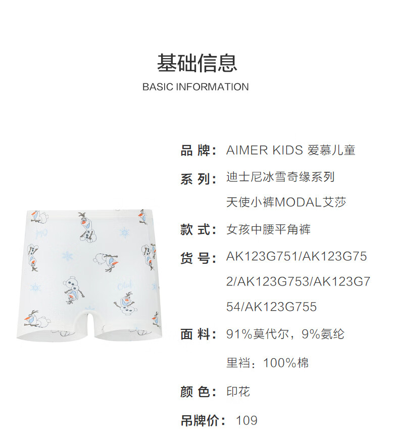 爱慕儿童(AIMER KIDS)夏季新品抗菌0碳莫代尔儿童内裤女童中腰平角裤冰雪奇缘系列艾莎 安娜AK123G753 1条 110