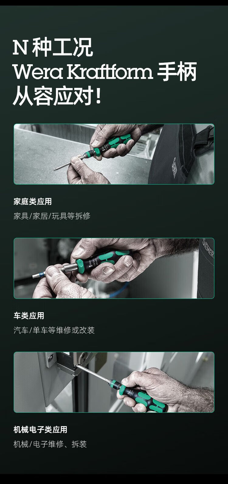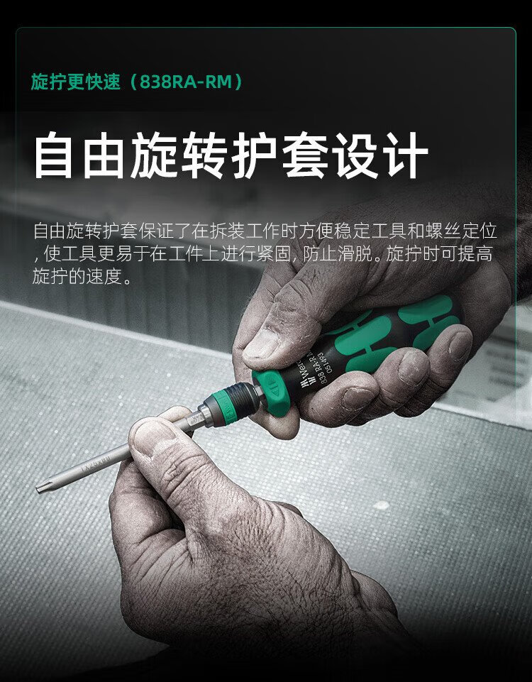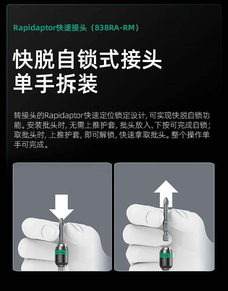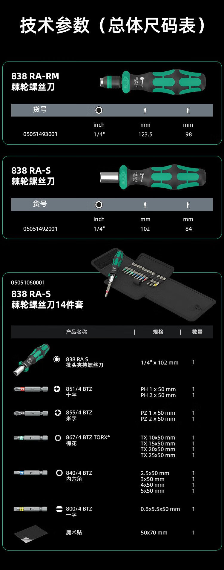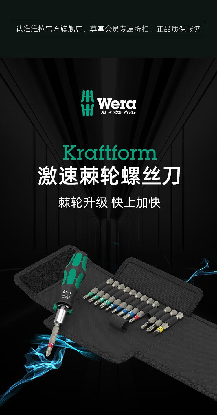 维拉(WERA)棘轮螺丝刀套装838RA德国进口快速强磁手柄快换接头十字一字组合 838RA-M快换头手柄15件套051061