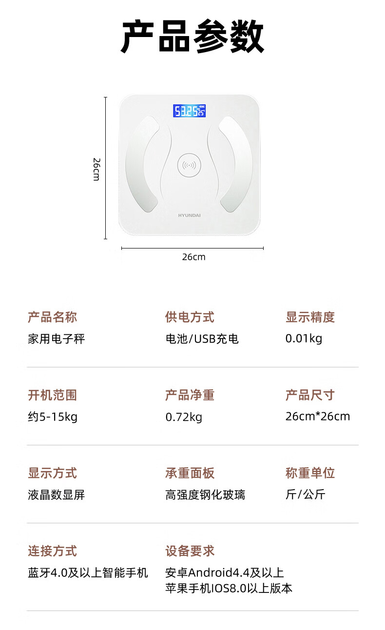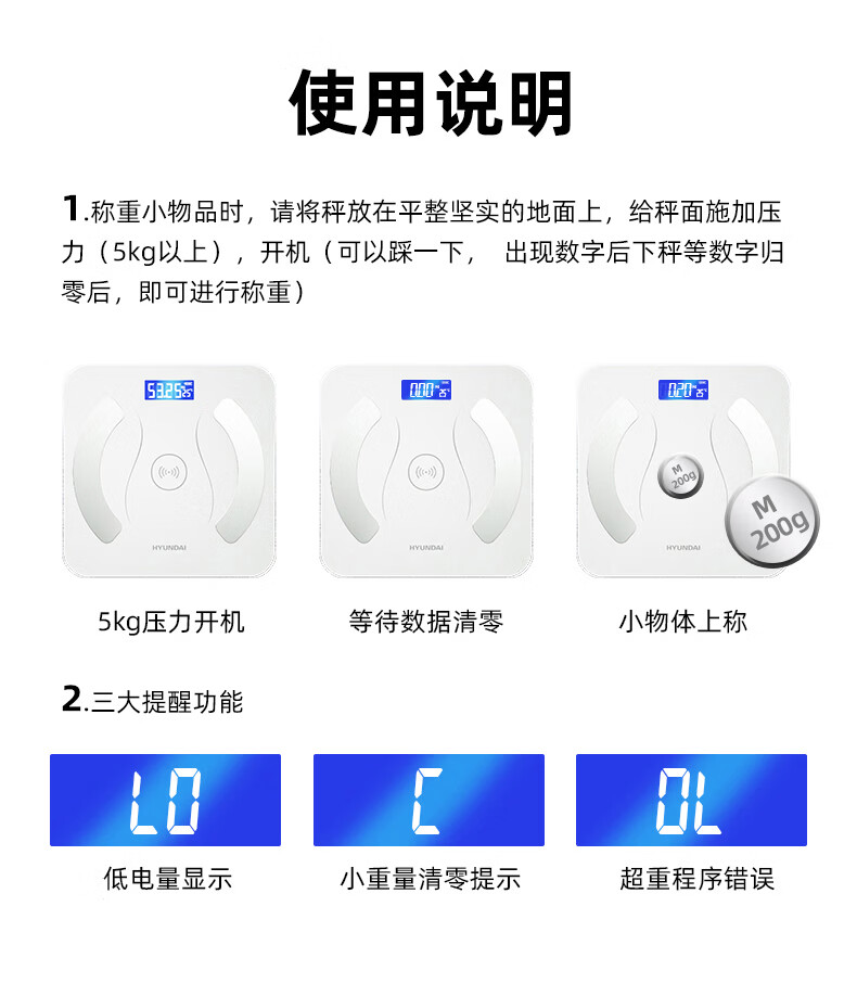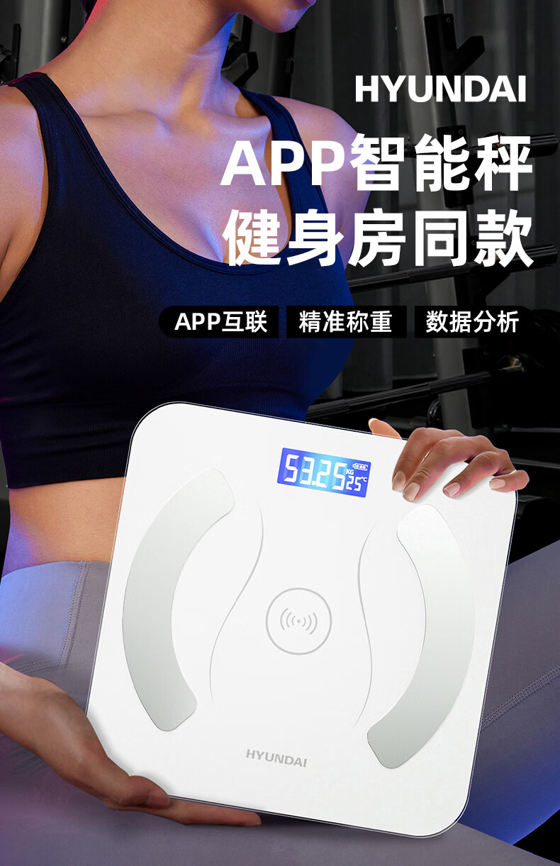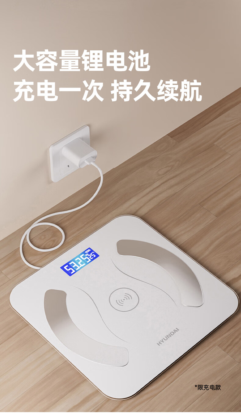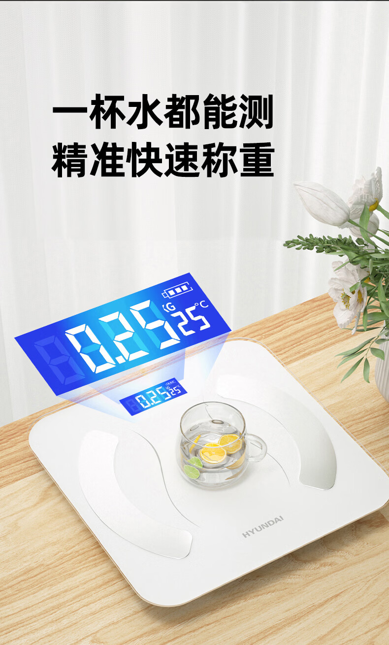HYUNDAI weight scale, household precision electronic scale, smart weight scale, special body fat scale for weight loss, rechargeable electronic weighing scale, holiday gift for parents, elders, fathers, boyfriends and girlfriends, weight scale - rechargeable model, high-precision weighing + LCD screen + measurable room temperature
