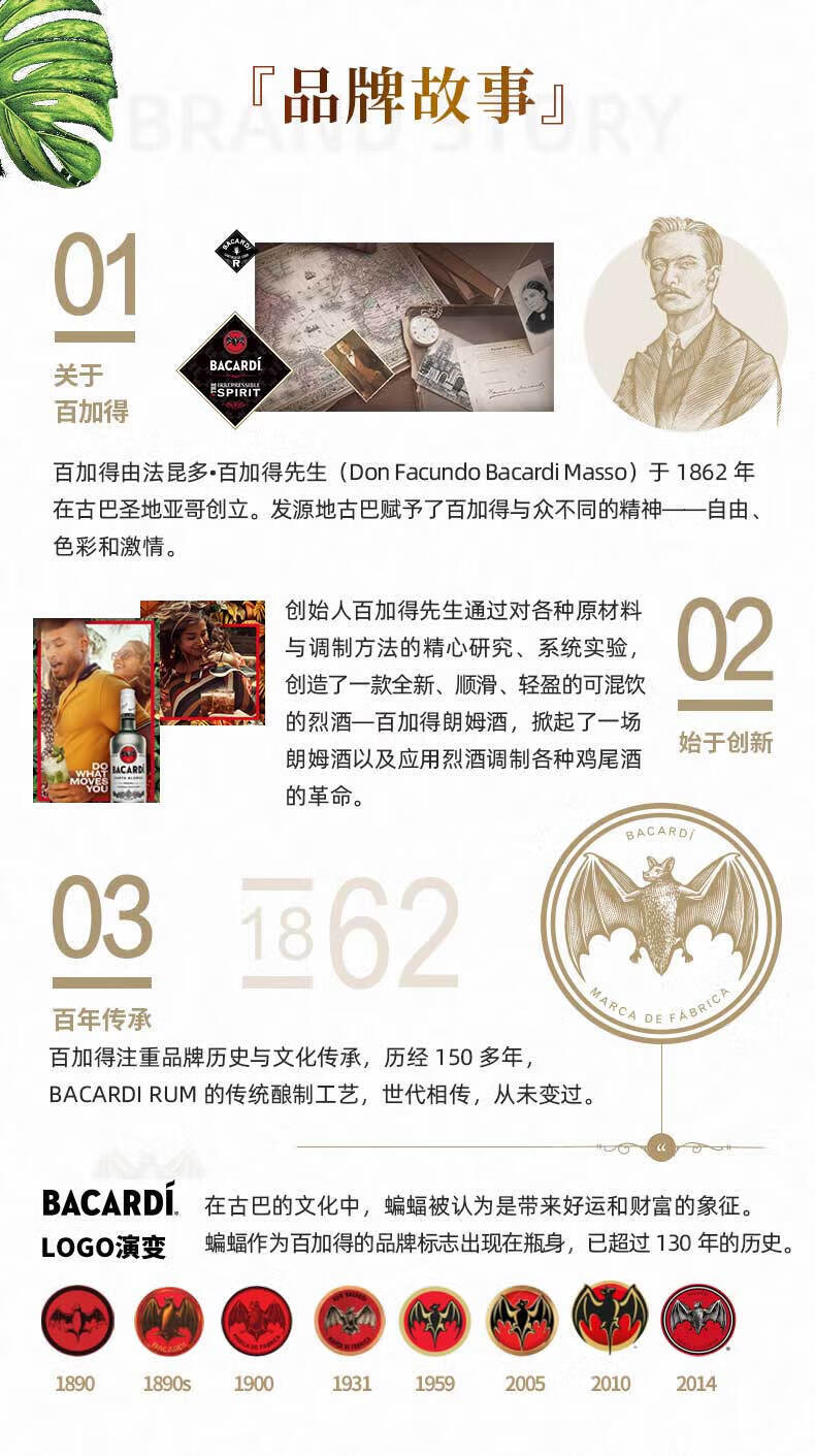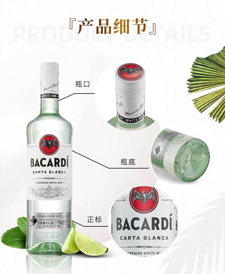 Jack Daniel's Bacardi (Bacardi) liqueur rhum blanc mojito base liqueur cocktail 750ml rhum blanc 750mL 1 bouteille bouteille unique