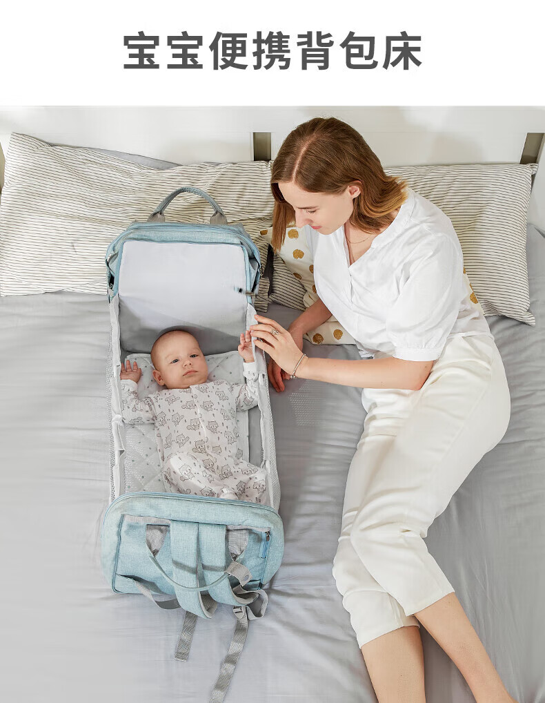 橦舟渡妈咪包/背婴带年可变婴儿床大容量多功能双肩妈妈母 安伯灰+床包一体+收藏加购床垫