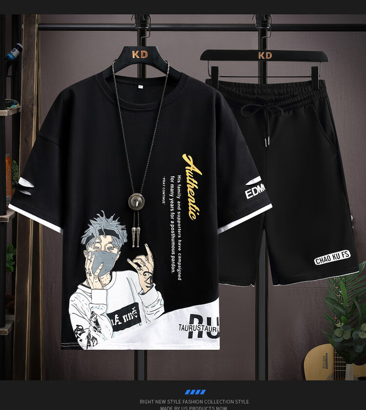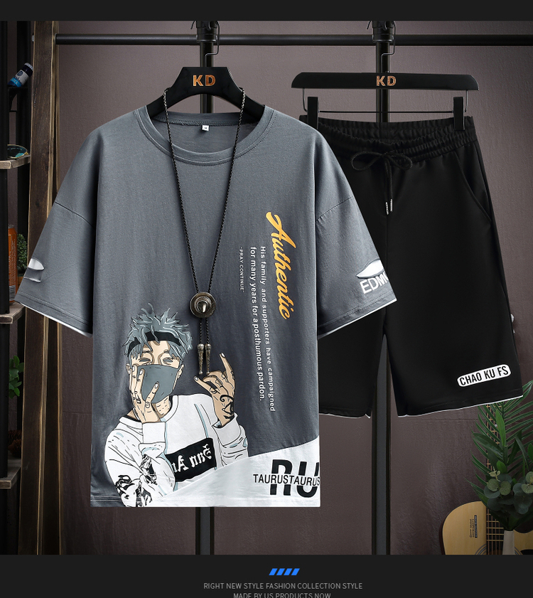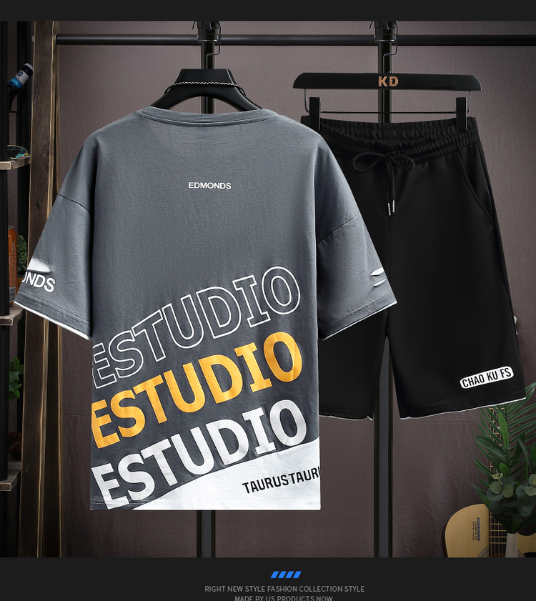 Bailedi T-shirt à manches courtes garçons 12-15 ans collégiens costume d'été 16 adolescents et enfants plus âgés vêtements d'été tendance et beau WY-6169 Lake Blue (manches courtes + short) 180 3XL (140-160Jin Jin équivaut à environ 0,5 kg)