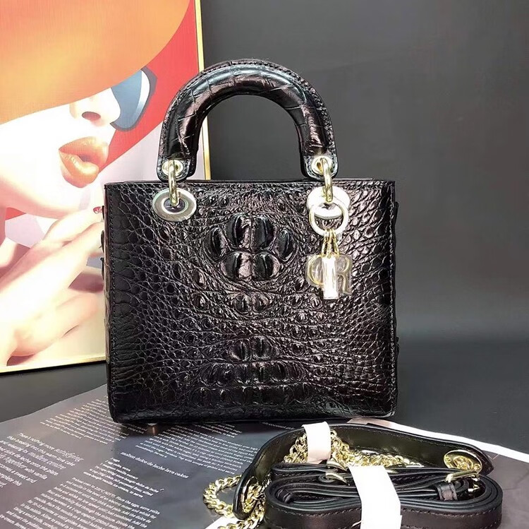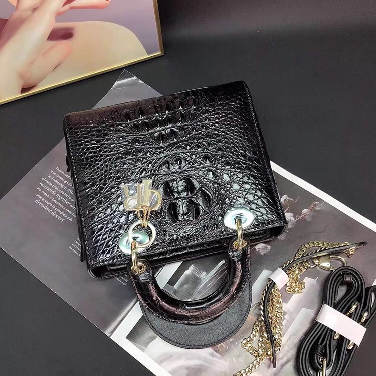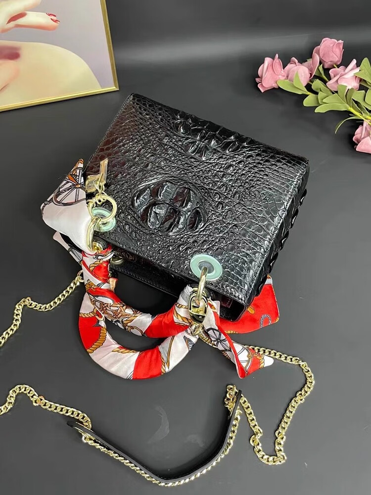 卡梵蒂(GAVADI)2024新款鳄鱼皮女包感云朵包时尚百搭贝壳包真皮手提斜挎包 黑色20cmx17cmx10cm