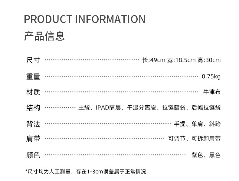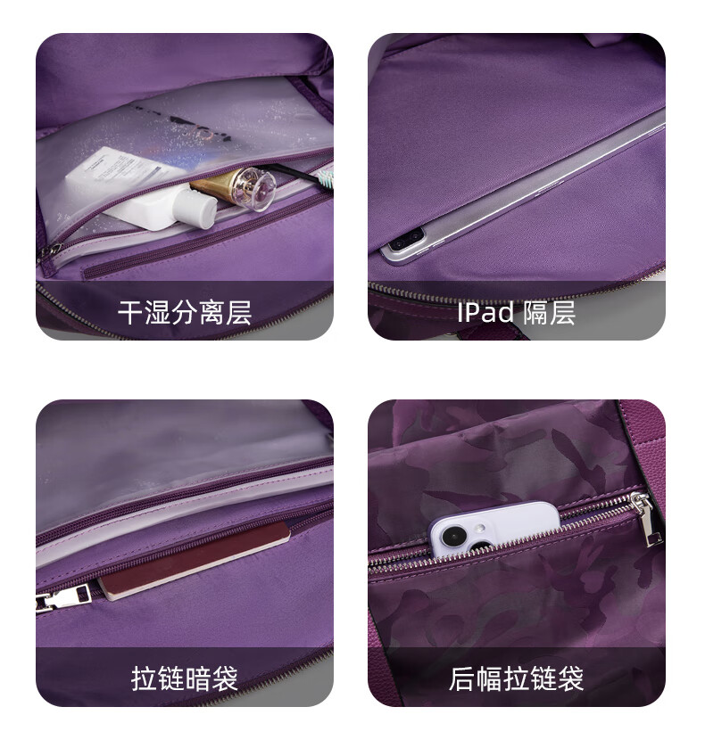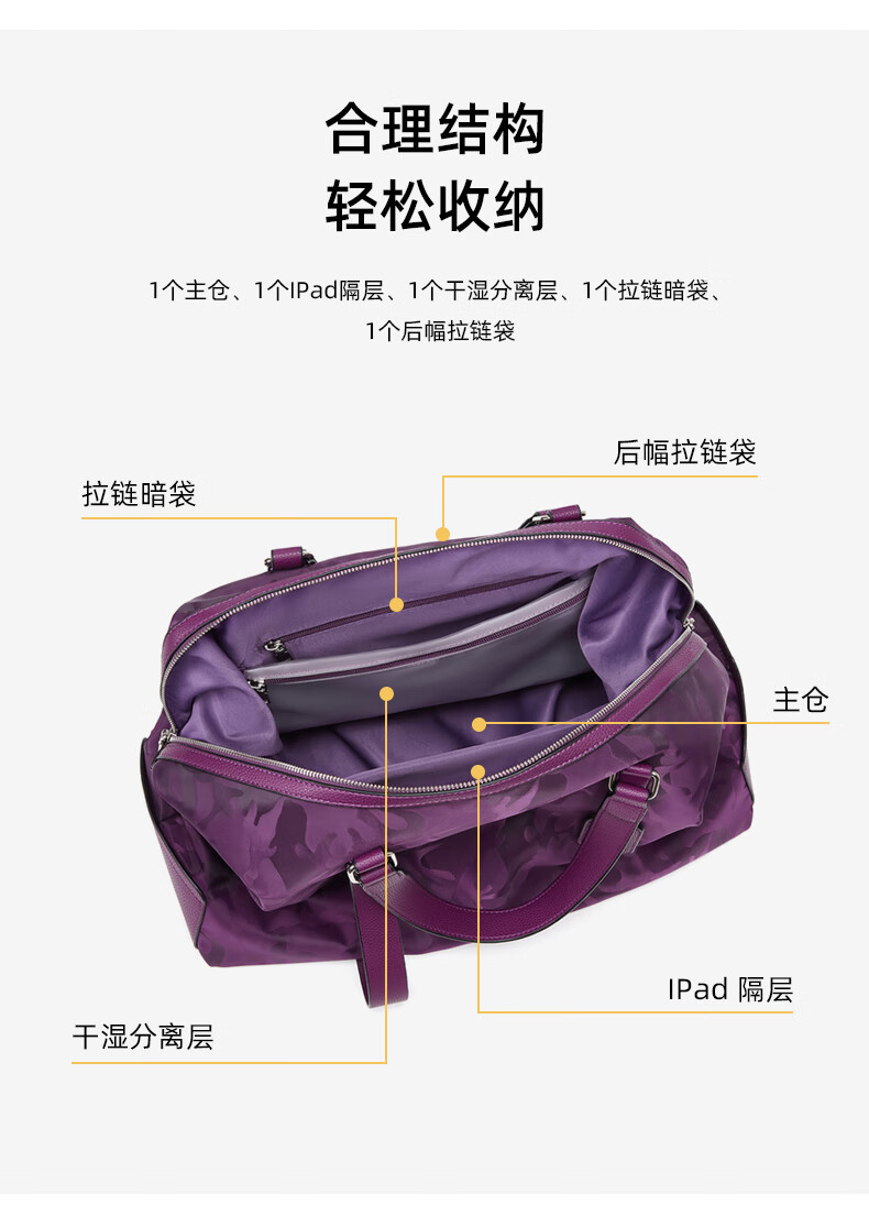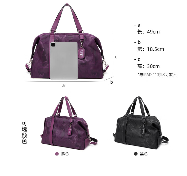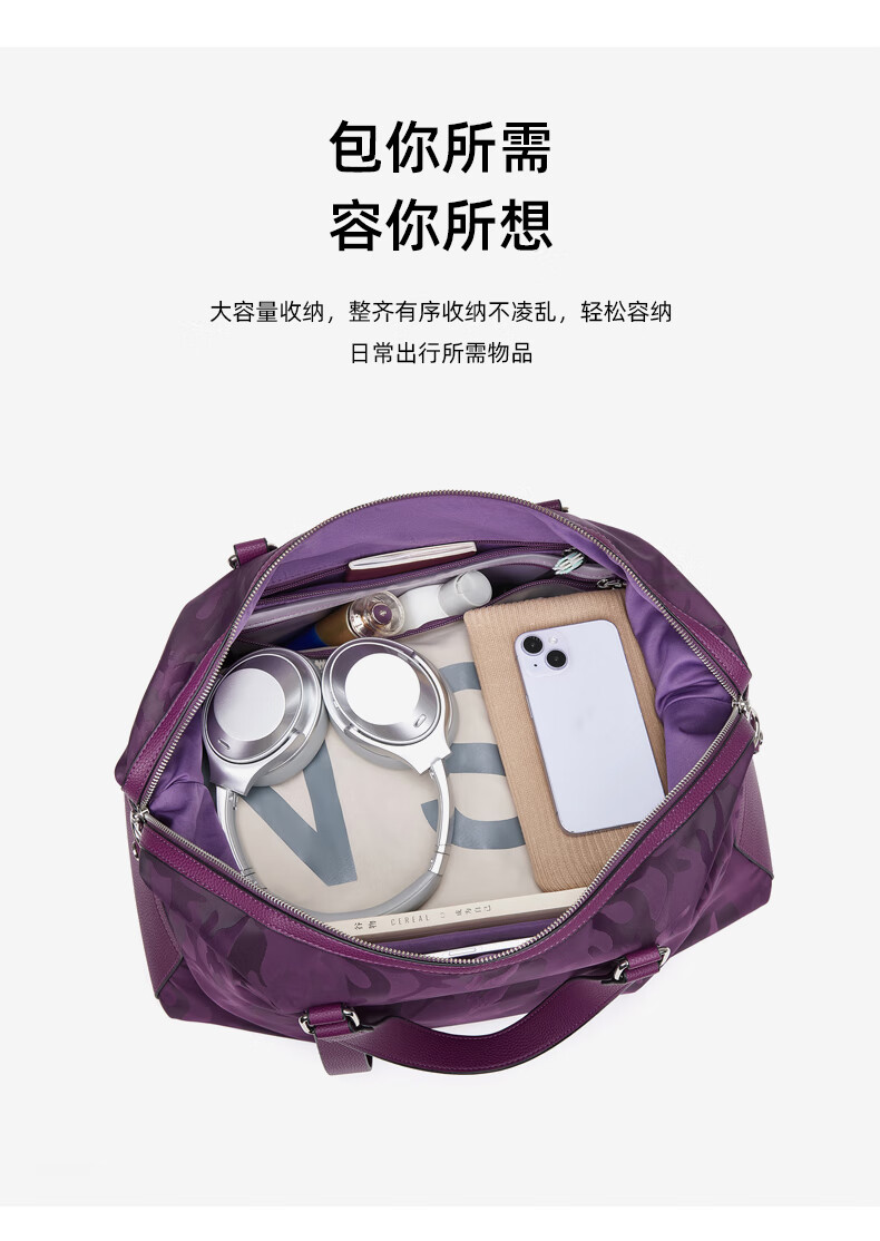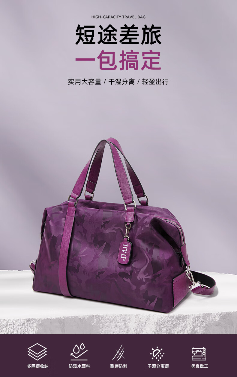 CRISP KERREIN香港品牌短途旅行包女手提大容量轻便健身包游泳潮牌行李包袋男 紫色
