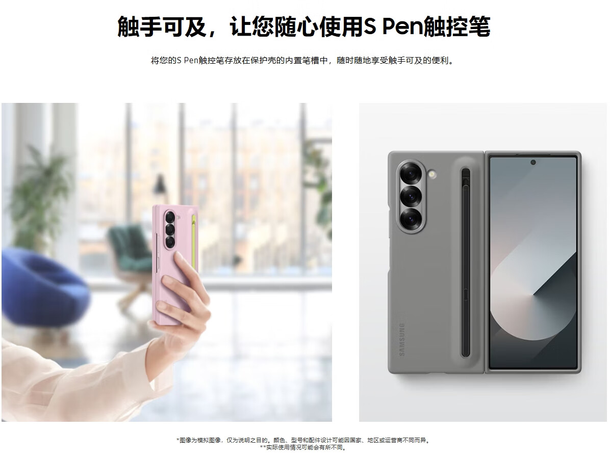 三星(SAMSUNG)Galaxy Z Fold6原装手机壳纤巧S Pen保护壳原厂手机套前后壳带笔 深蓝色-顺丰包邮