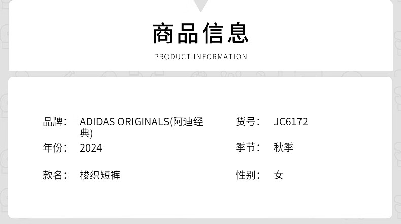 阿迪达斯(adidas)胜道运动 2024秋三叶草女梭织简约舒适透气休闲运动短裤 JC6172 JC6172 XXS