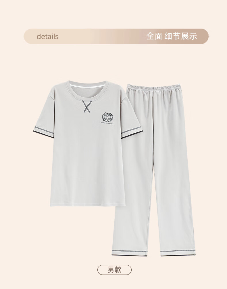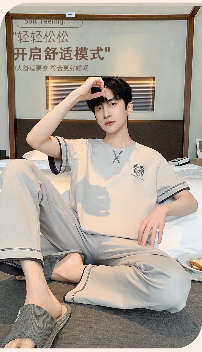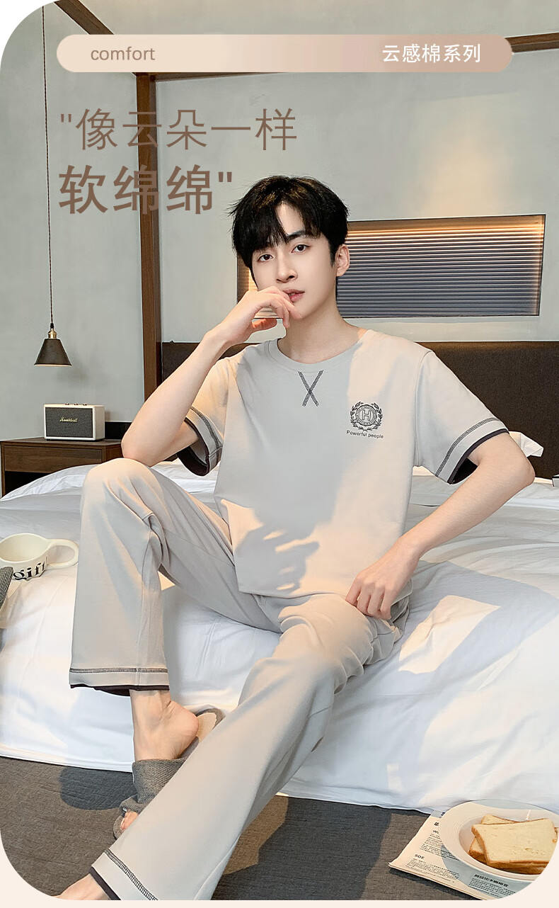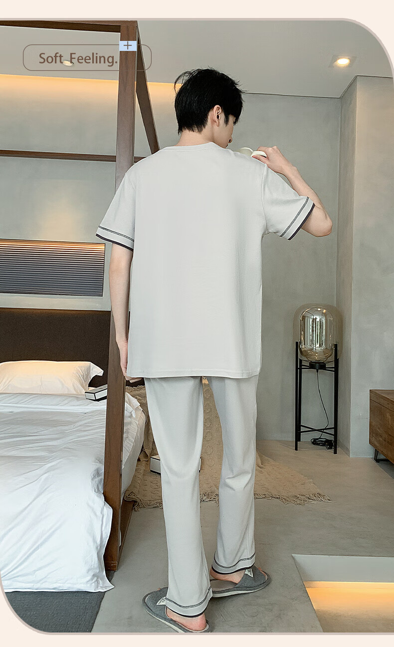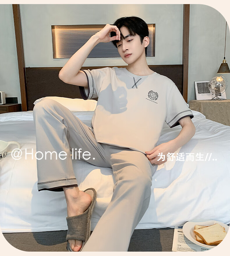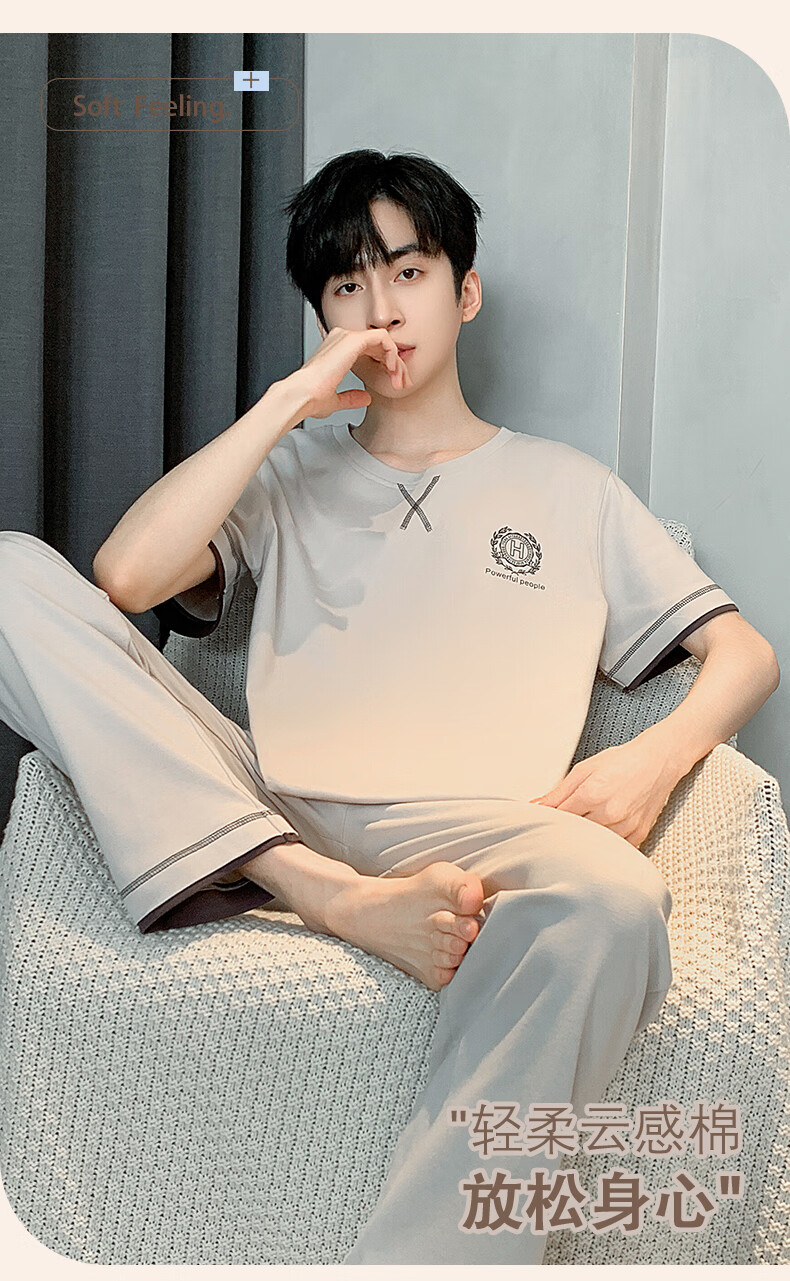 浪莎(LangSha)睡衣夏天男2024新款夏季薄款纯棉短袖长裤家居服春秋青年大码套装 #XF-3923 优质款 L 【100-125】斤
