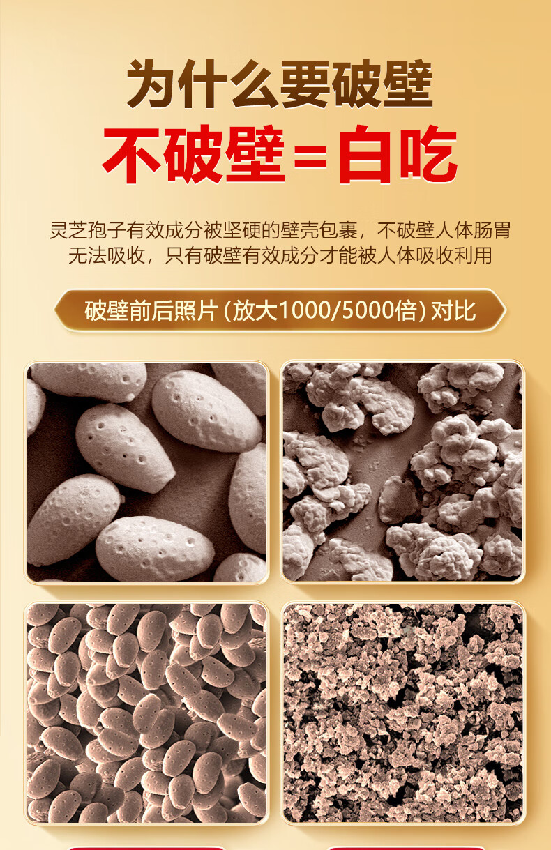 Lemei Broken Ganoderma Spore Powder Changbaishan Linzhi Paozhi Powder is rich in spore oil. Tonic for middle-aged and elderly people. Quarterly quantity. Broken Ganoderma Spore Powder Capsules 180 capsules * 3 boxes
