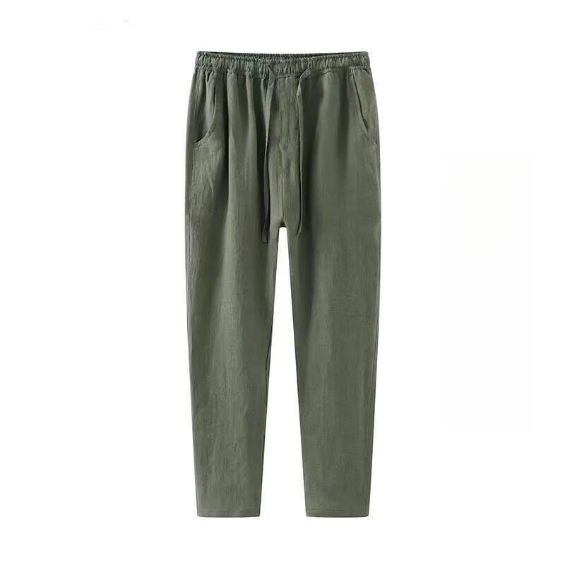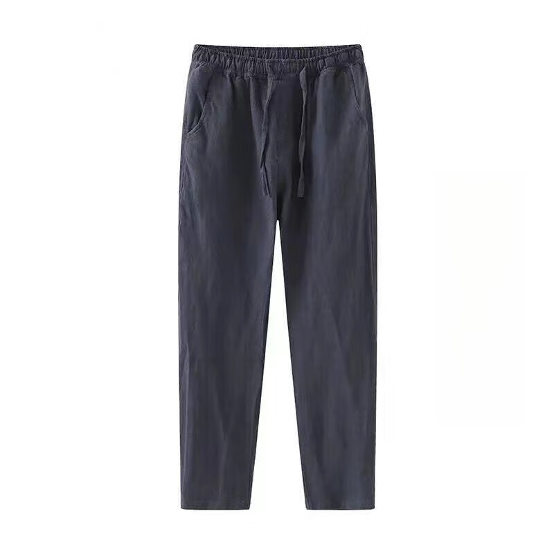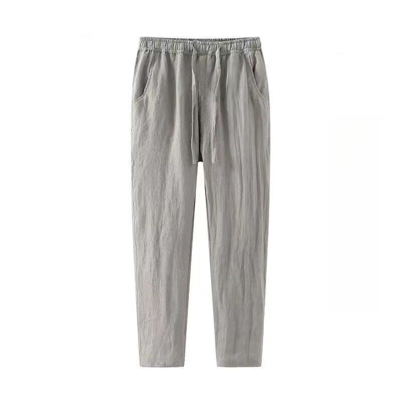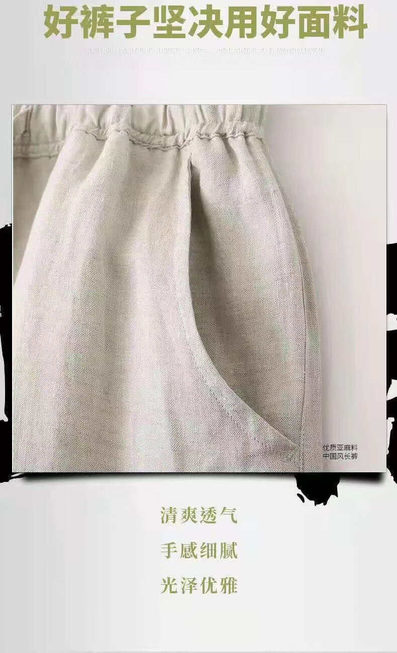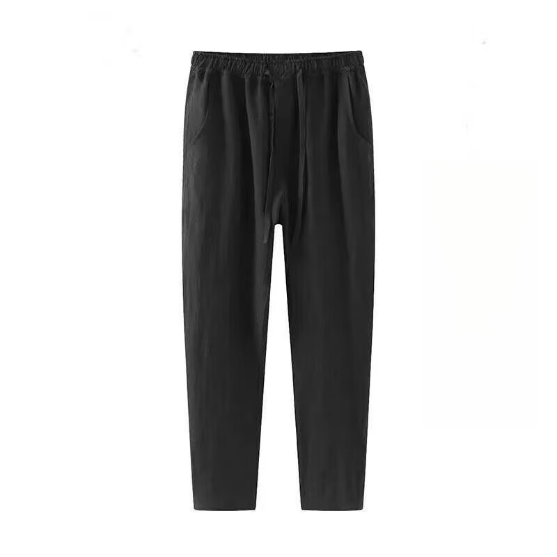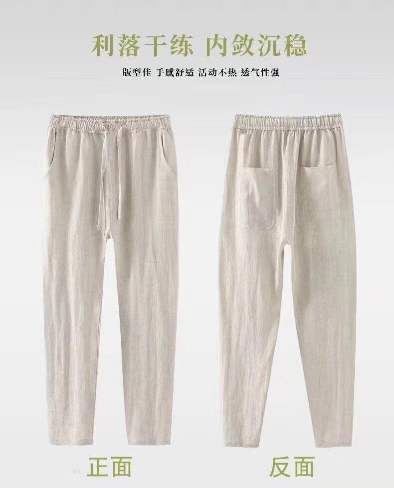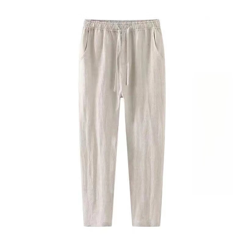 ROMON linen pants men's summer thin nine-point pants loose slim casual harem pants large size straight pants men linen-color summer style 3XL 130-145Jin Jin equals 0.5 kg