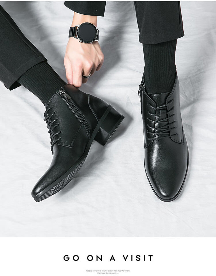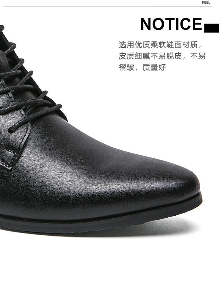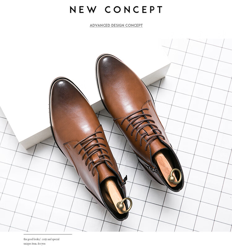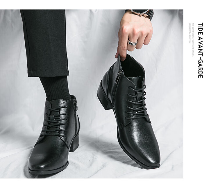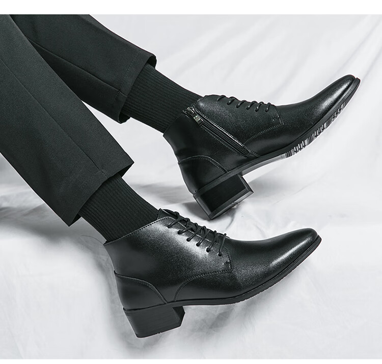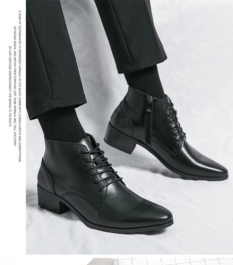 啄木鸟真皮马丁靴男韩版英伦商务内增高中帮高跟尖头发型师皮鞋高帮皮靴 2232棕色 42 标准皮鞋码