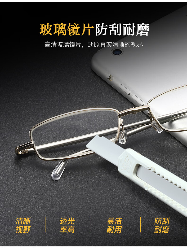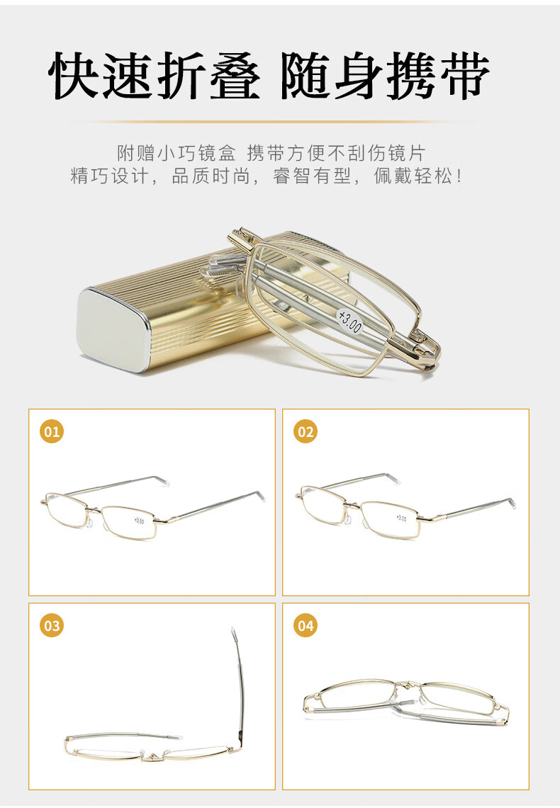 浅里折叠花镜高档天然水晶石头眼镜老花镜折叠式微型眼镜携带方便男女 水晶老花镜[带盒子] 45-49岁参考[100度]