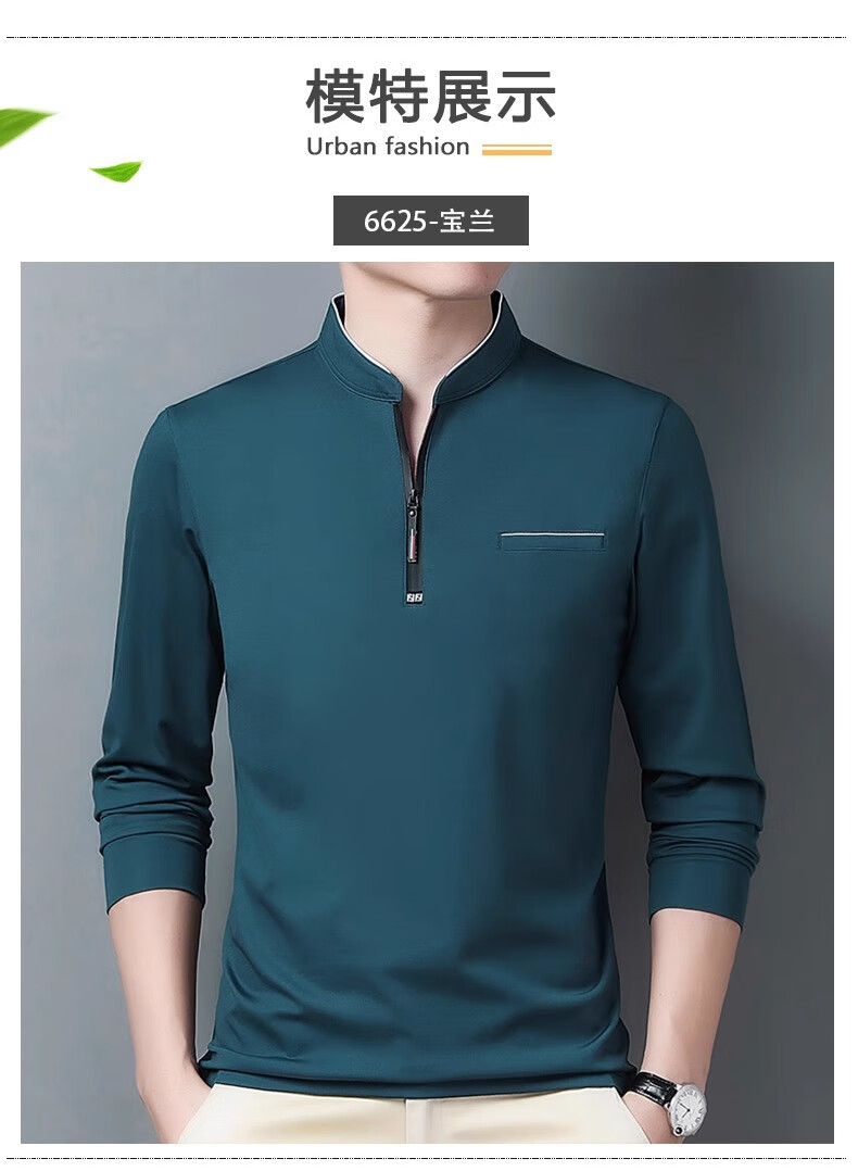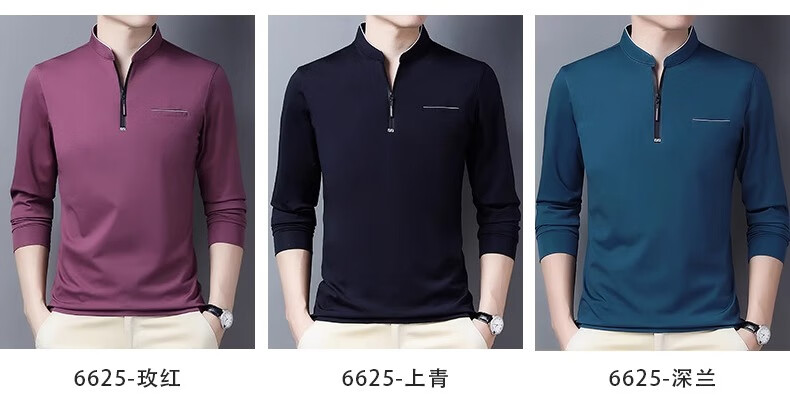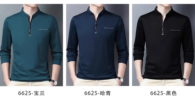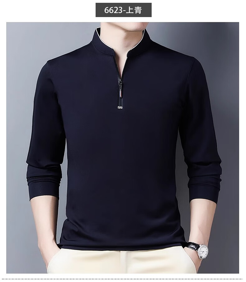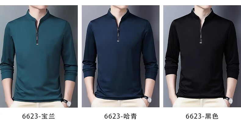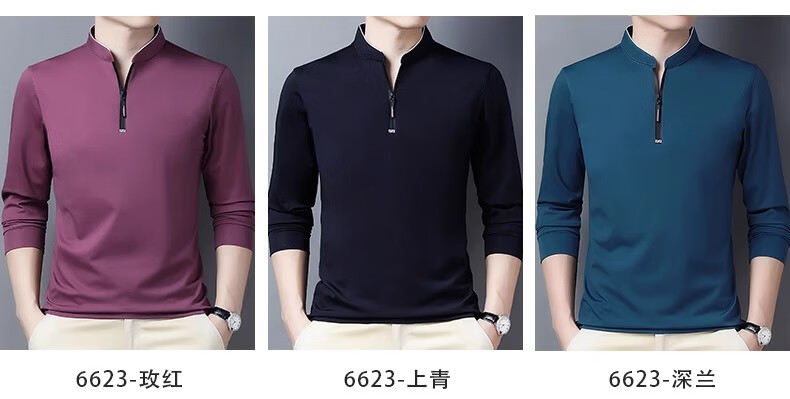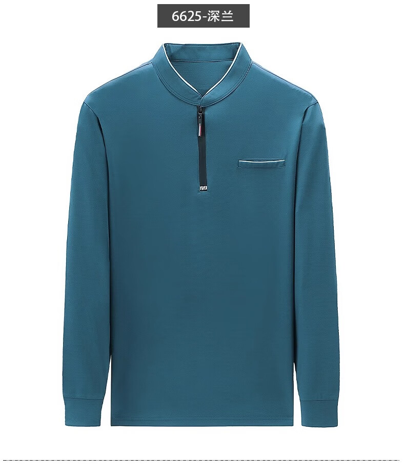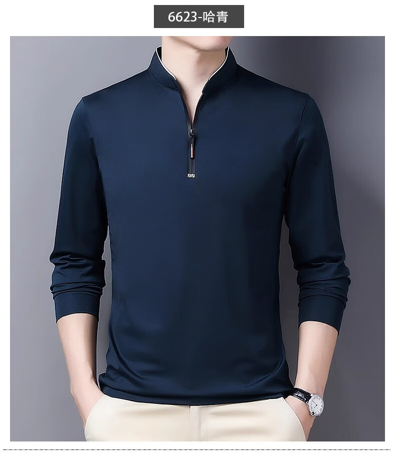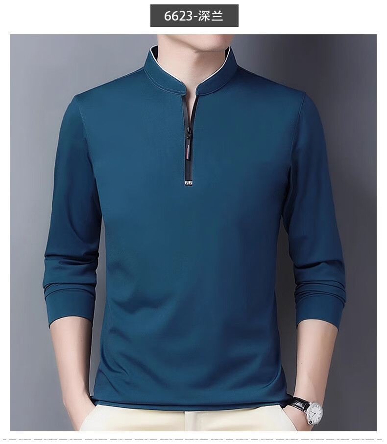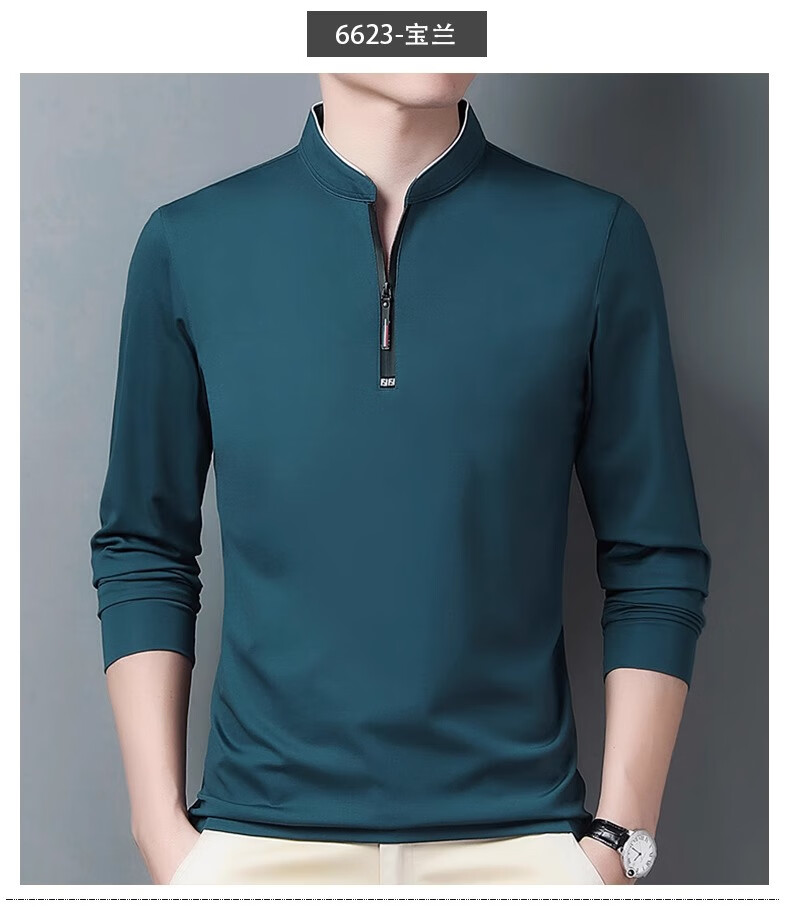 Hengyuanxiang long-sleeved T-shirt casual T-shirt sweatshirt spring and autumn middle-aged men's stand-up collar plus velvet warm bottoming shirt for men plus velvet and thickening 6623 Baolan M