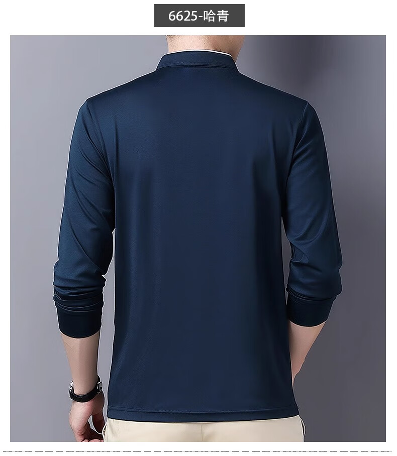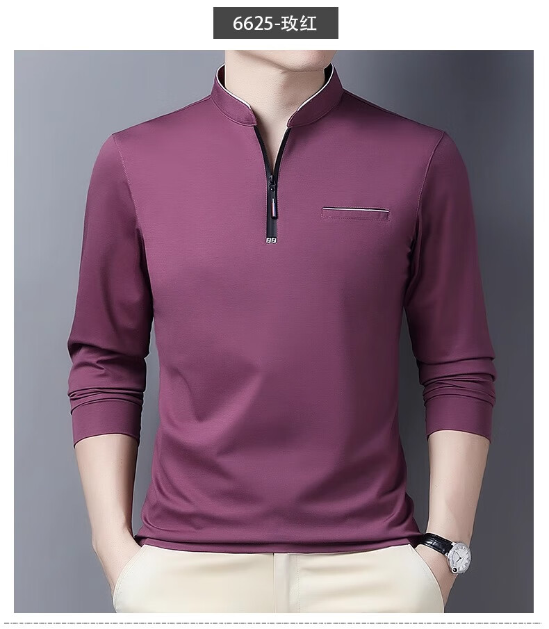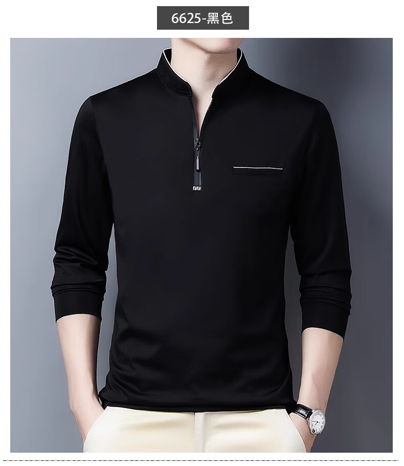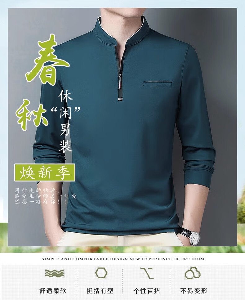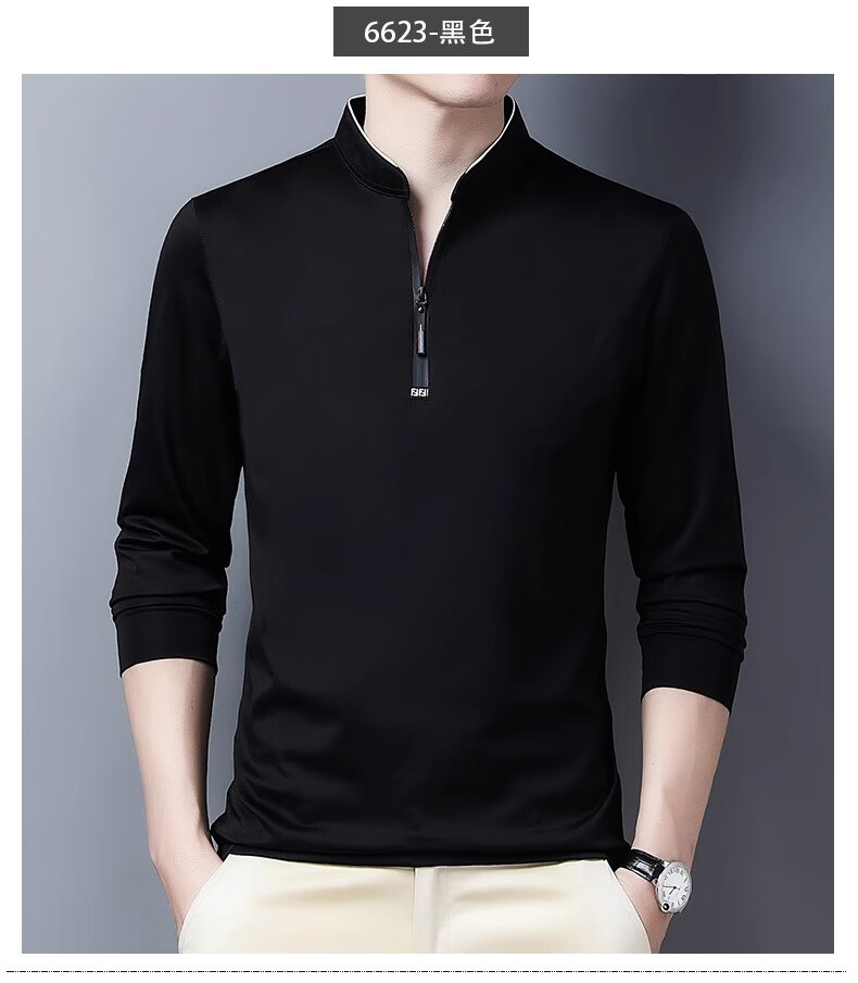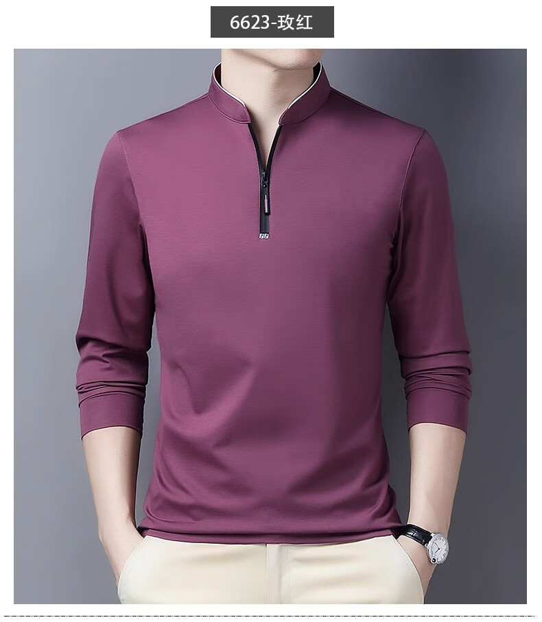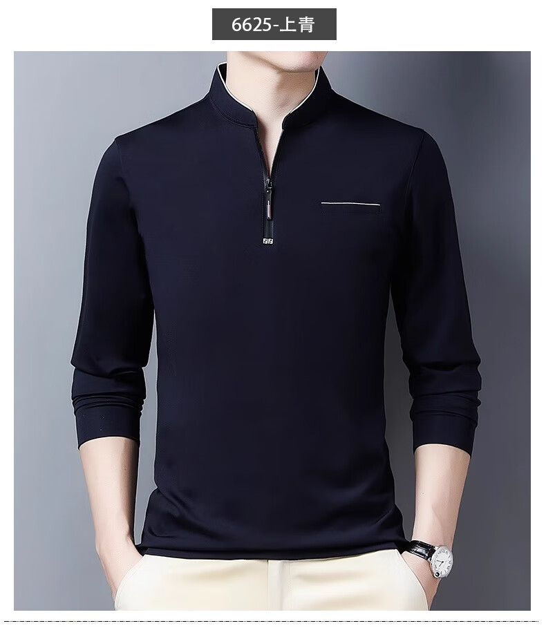 Hengyuanxiang long-sleeved T-shirt casual T-shirt sweatshirt spring and autumn middle-aged men's stand-up collar plus velvet warm bottoming shirt for men plus velvet and thickening 6623 Baolan M