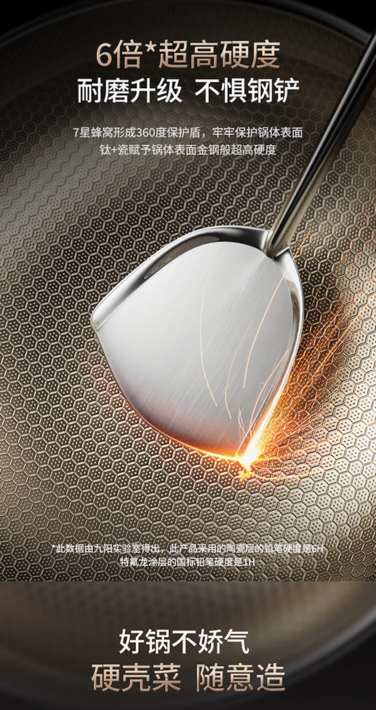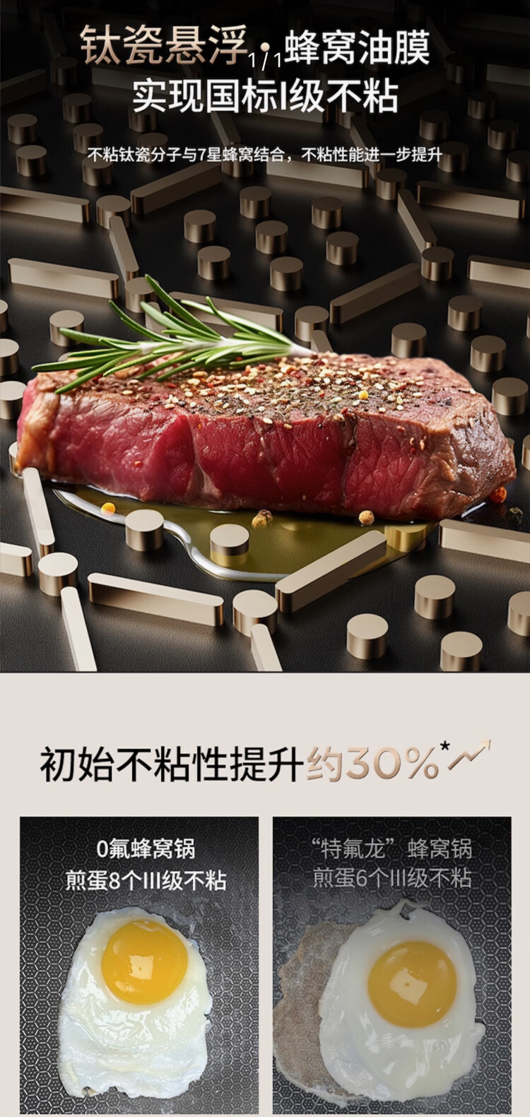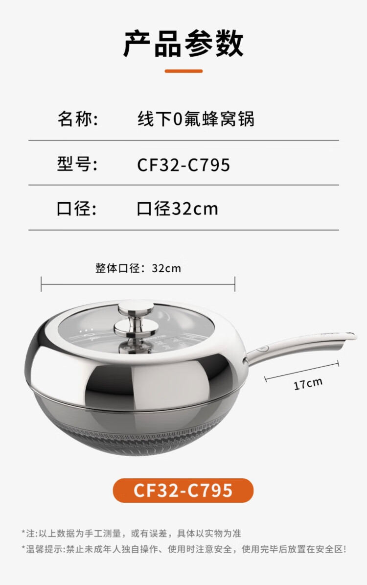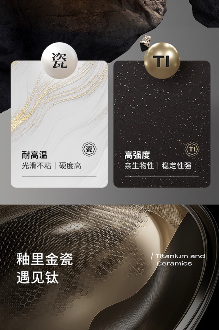 Joyoung C795 non-stick wok 0 fluorine titanium porcelain anti-stick wok 316 flat bottom stainless steel honeycomb induction cooker gas stove CF32-C795 national joint warranty steamer 32cm shopping mall store products