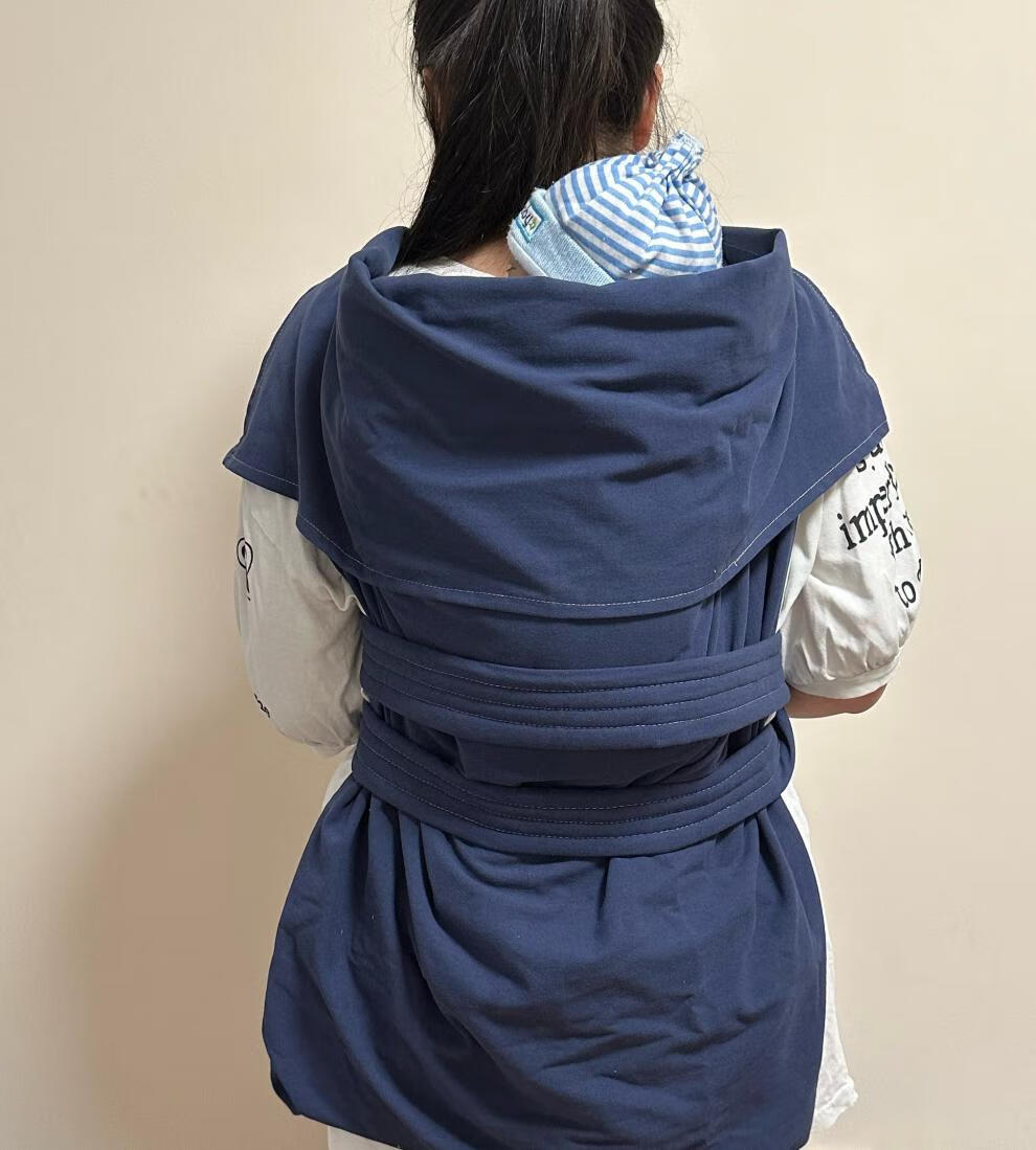 四川传统薄棉背巾前后两用婴儿后背老式背带抱式宝宝外出简易背袋 全棉布深蓝色