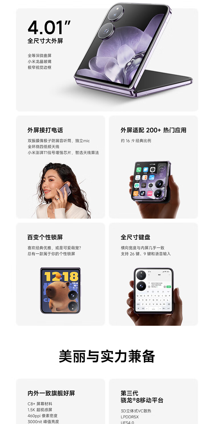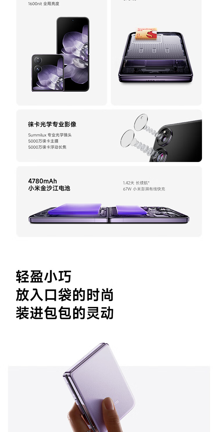 小米(MI)小米mix flip 现货速发 折叠屏5G旗舰手机 徕卡影像 小折叠 白色 12GB+512GB官方标配