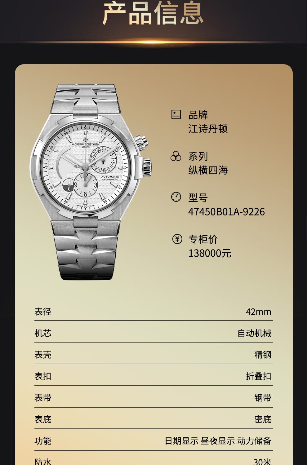 Second-hand 99 new Vacheron Constantin Overseas Series automatic mechanical men's watch date day and night display white plate dense bottom 42mm steel belt folding buckle 47450/B01A-9226 1 fake one pays 3