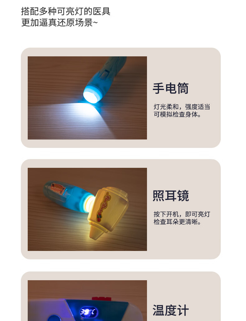 Timini Children's Little Doctor Toy Set Girls Play House Stethoscope Nurse Injection Baby Medical Box Pink 73-piece Set Storage Box 4 Functions with Sound and Light