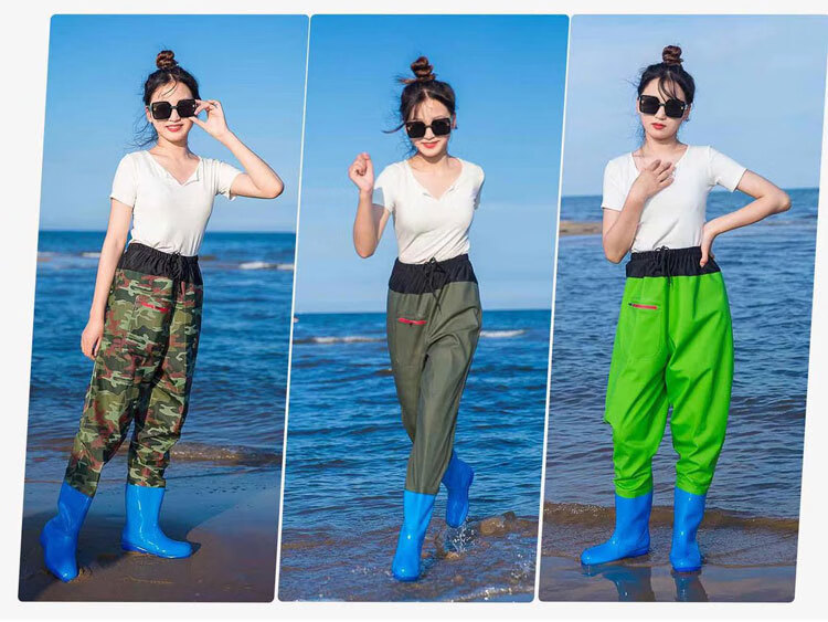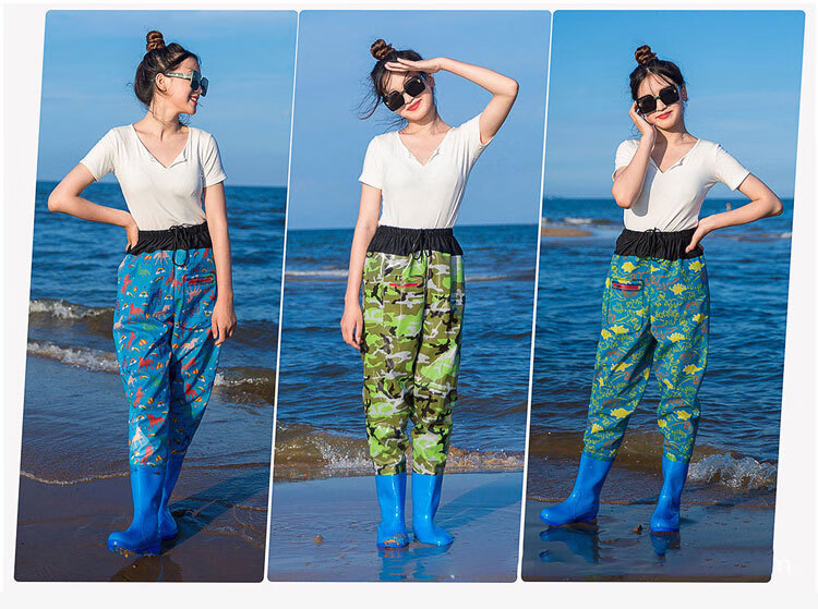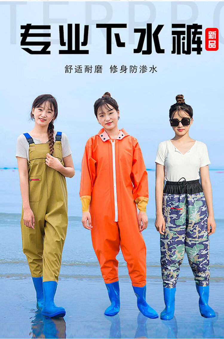 映季下水裤女连体半身带鞋雨裤防水防污防滑捕鱼插秧雨衣涉水游玩雨披 女款绿迷彩半身 36标准鞋码(推荐参考详情图)