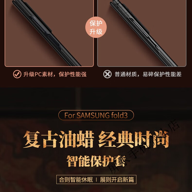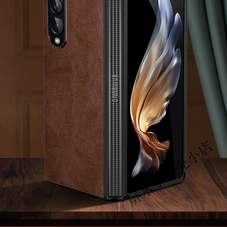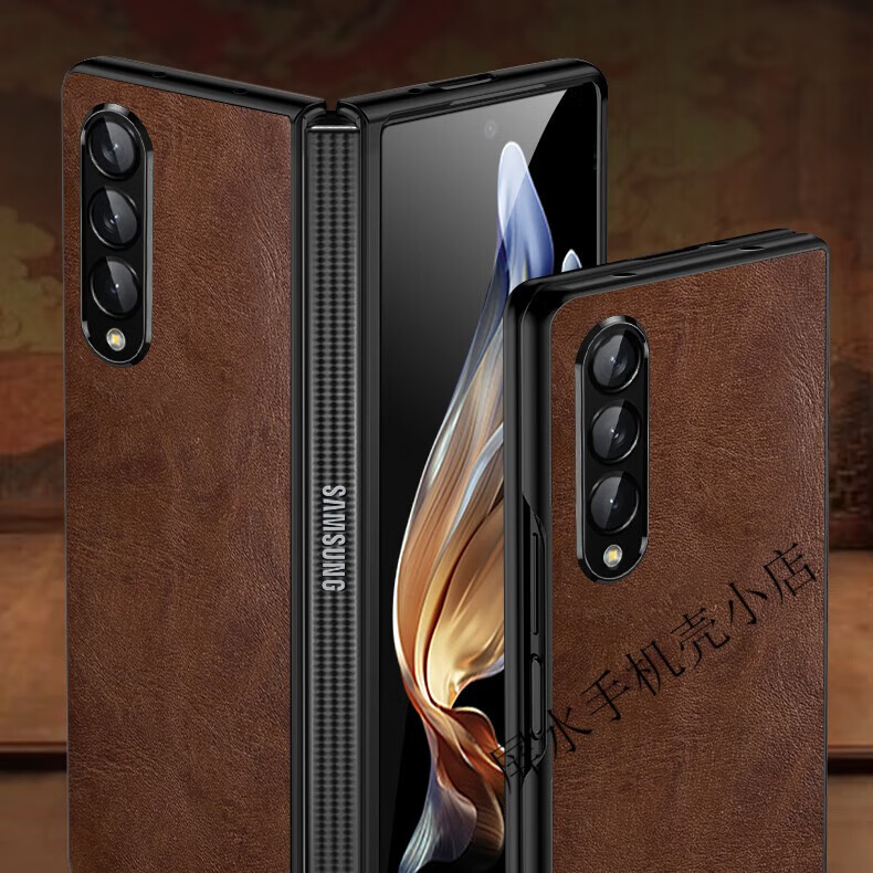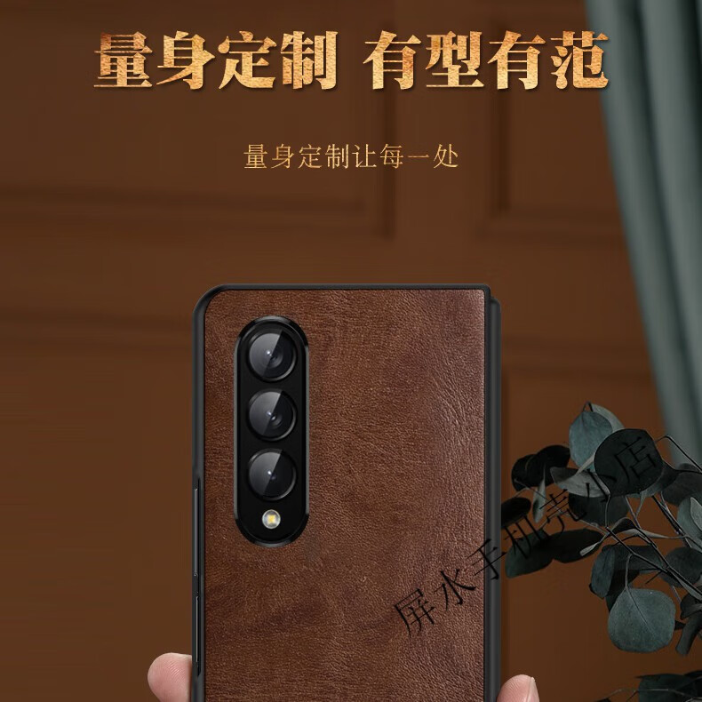 适用于三星Fold3手机壳真皮w22折叠屏翻盖式保护套Zfold3全包电镀f9260 电镀边【复古棕】头层牛皮 三星Galaxy Z Fold3