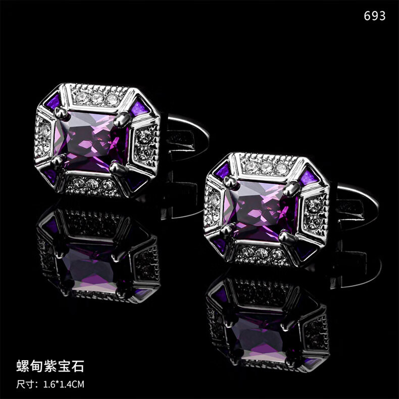 Longdai cufflinks crystal gift box men's French shirt red women's light luxury zircon cufflinks cuff buttons shirt birthday vast starry sky stone copper material gift box