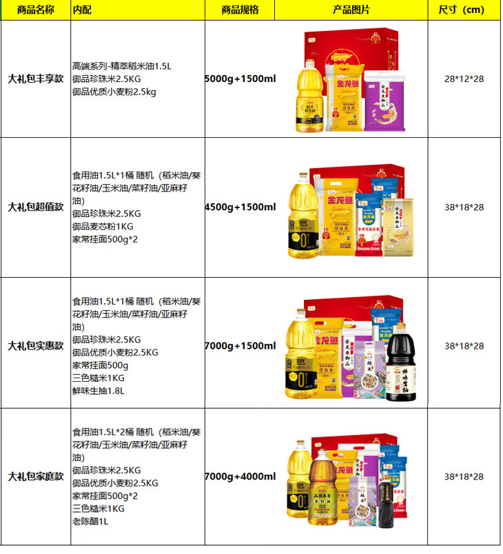 金龙鱼五谷杂粮礼盒 米面粮油大小规格组合大礼包米面油套餐【实物】 伴手礼F款1000g+688ml