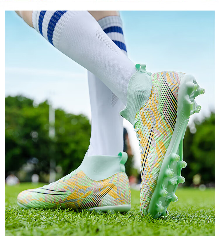 LREA耐C罗刺客15足球鞋男孩女儿童小学生训练飞克尅 绿色x761g长钉 34