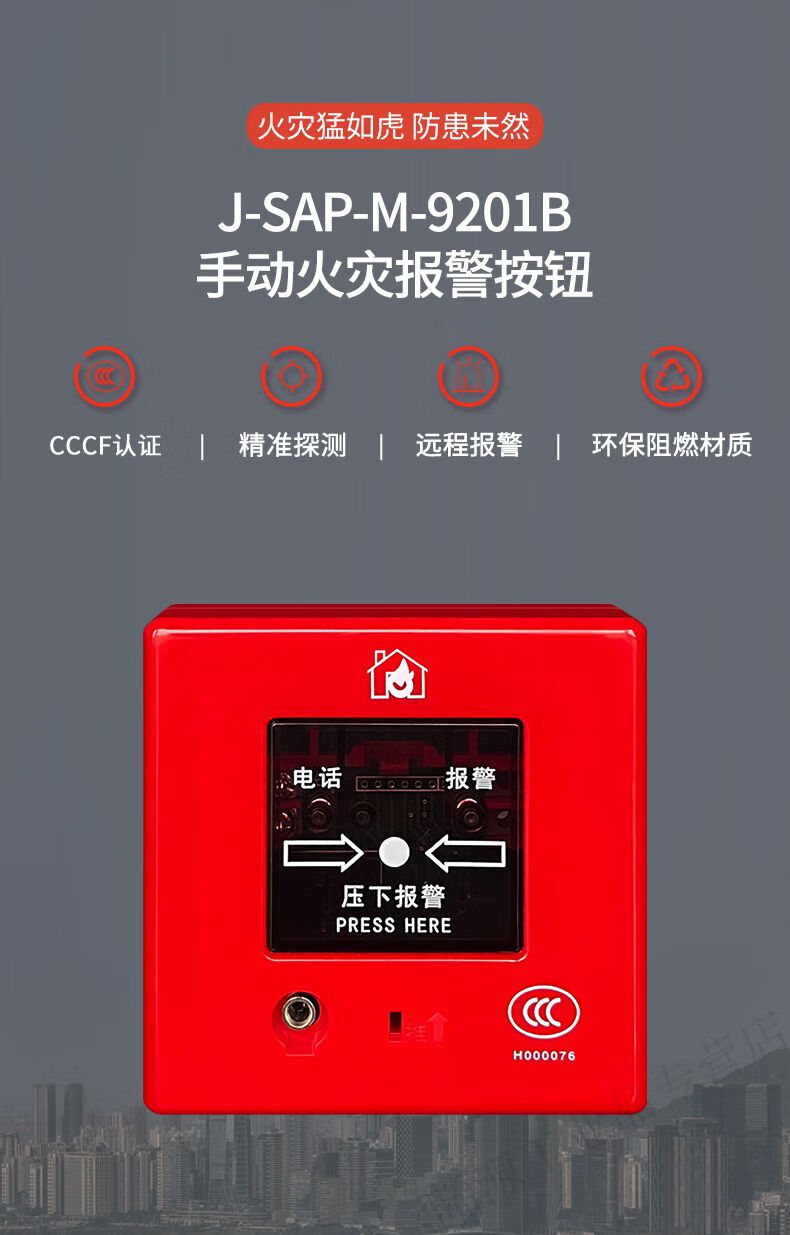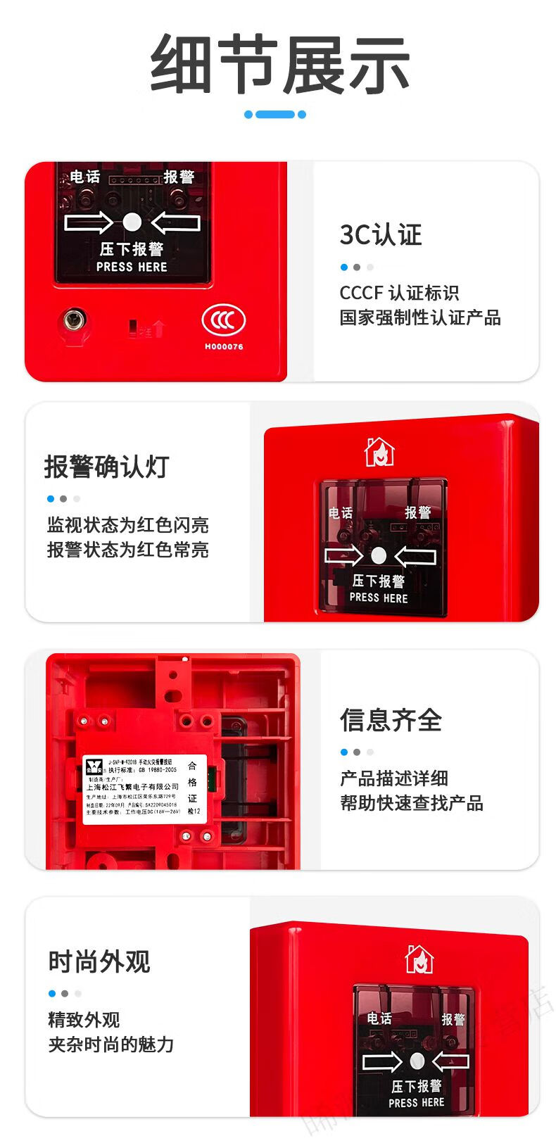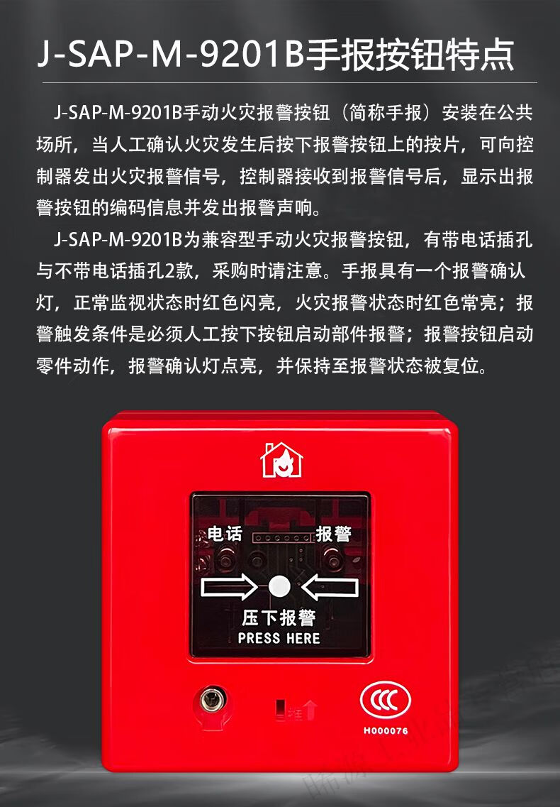 上海松江飞繁云安手报J-SAP-M-9201B火灾手动报警按钮带电话插孔 不带电话插孔