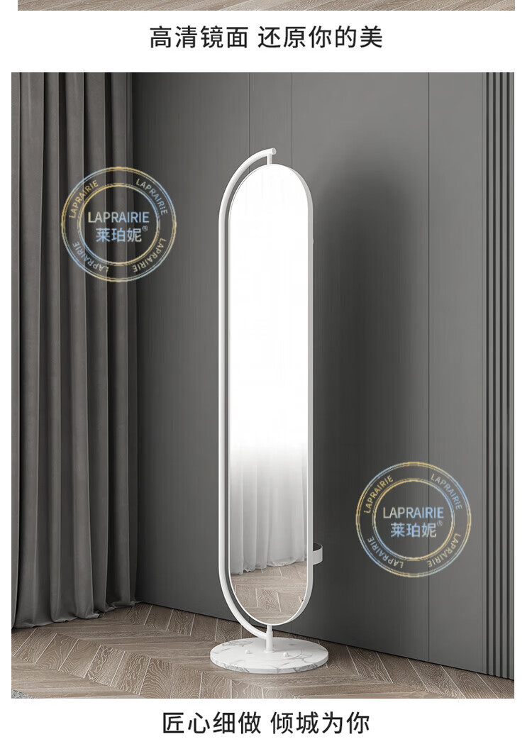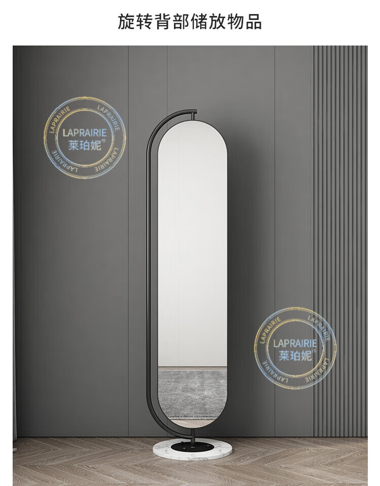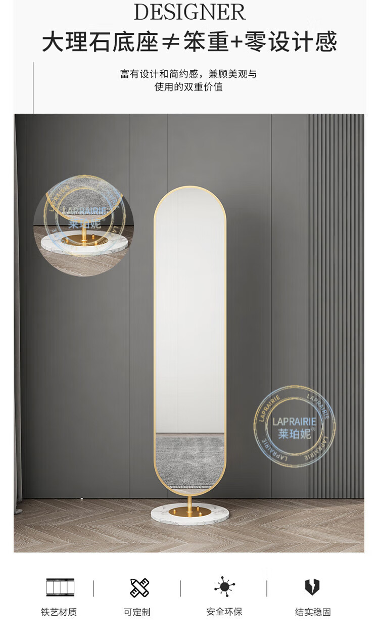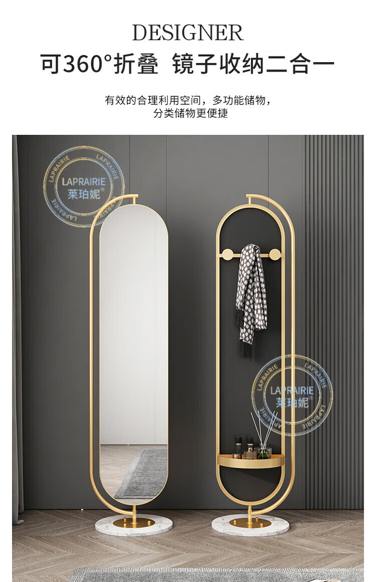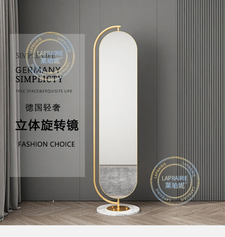 LA PRAIRIE德国品牌 轻奢镜子全身镜穿衣镜家用落地镜女生卧室可旋转试衣镜 大号旋转镜(金架+白石)带收纳 免费上门安装