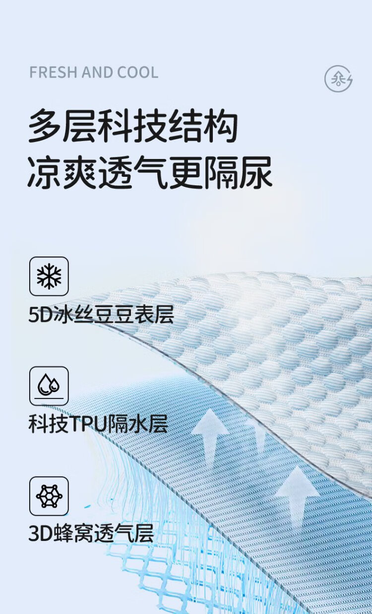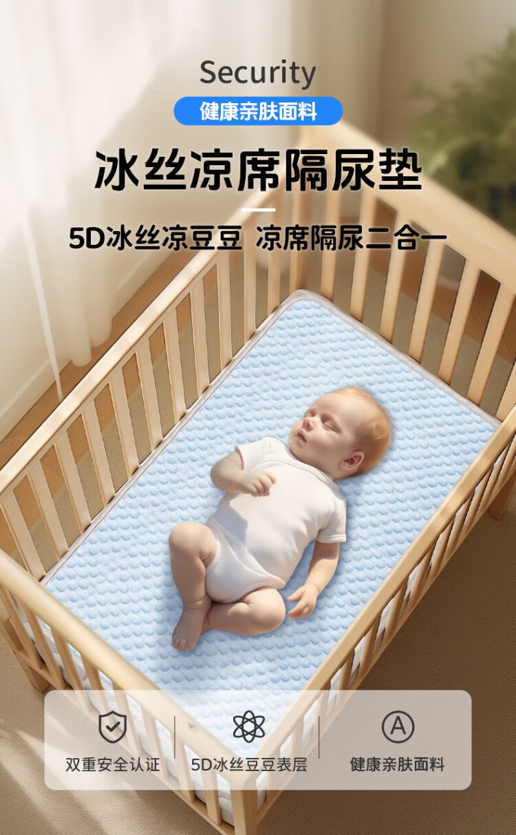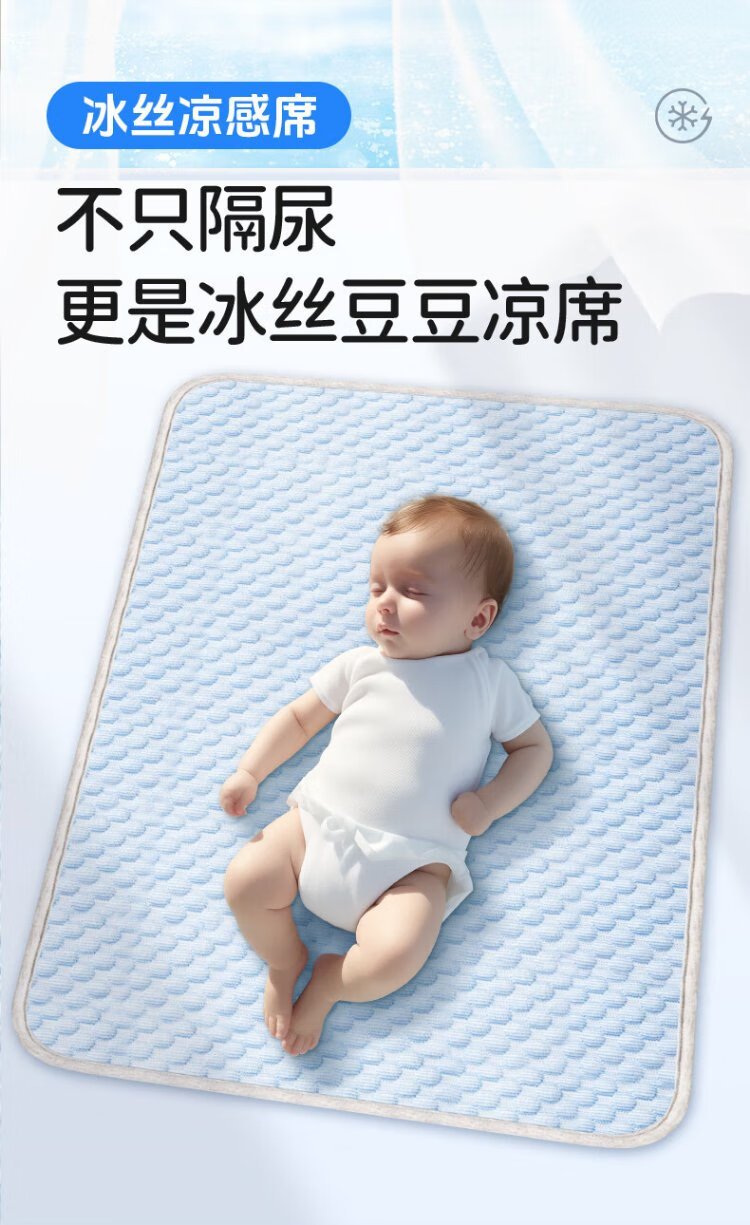 帮备冰丝凉席产妇冰豆豆席子隔尿垫老人家用宿舍大尺寸床垫可机洗 天蓝色 60x80cm