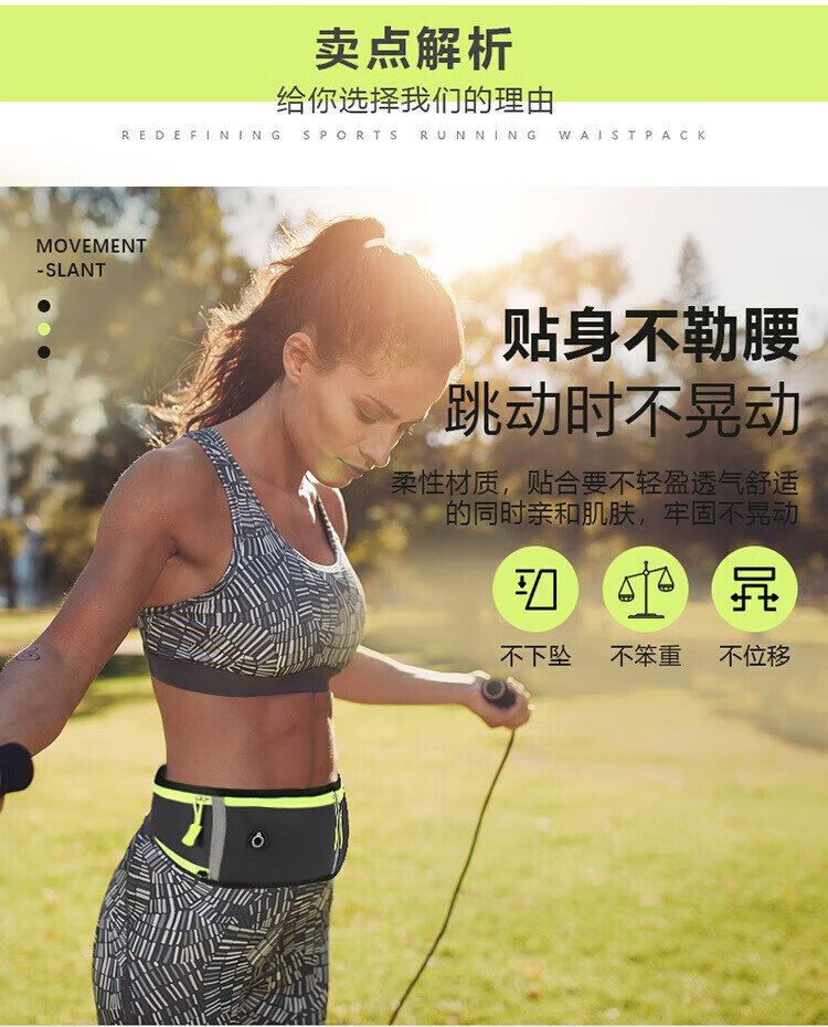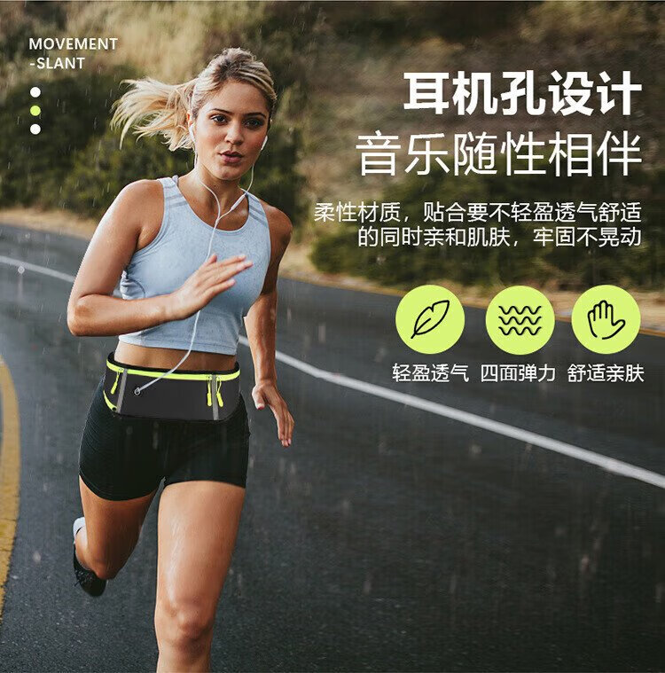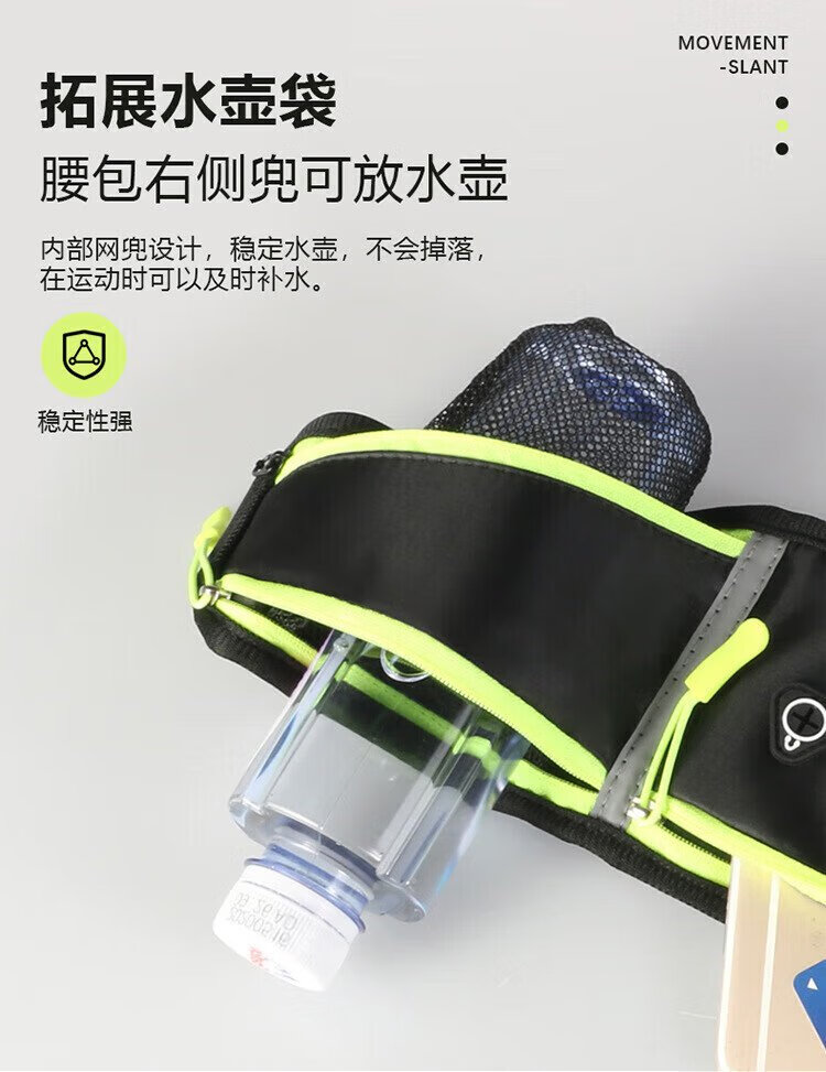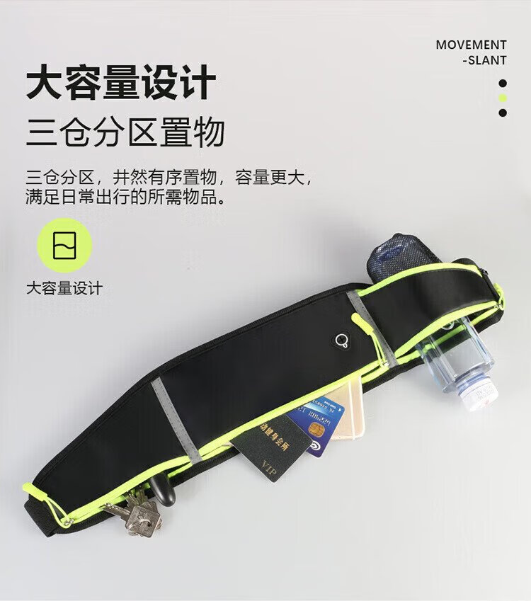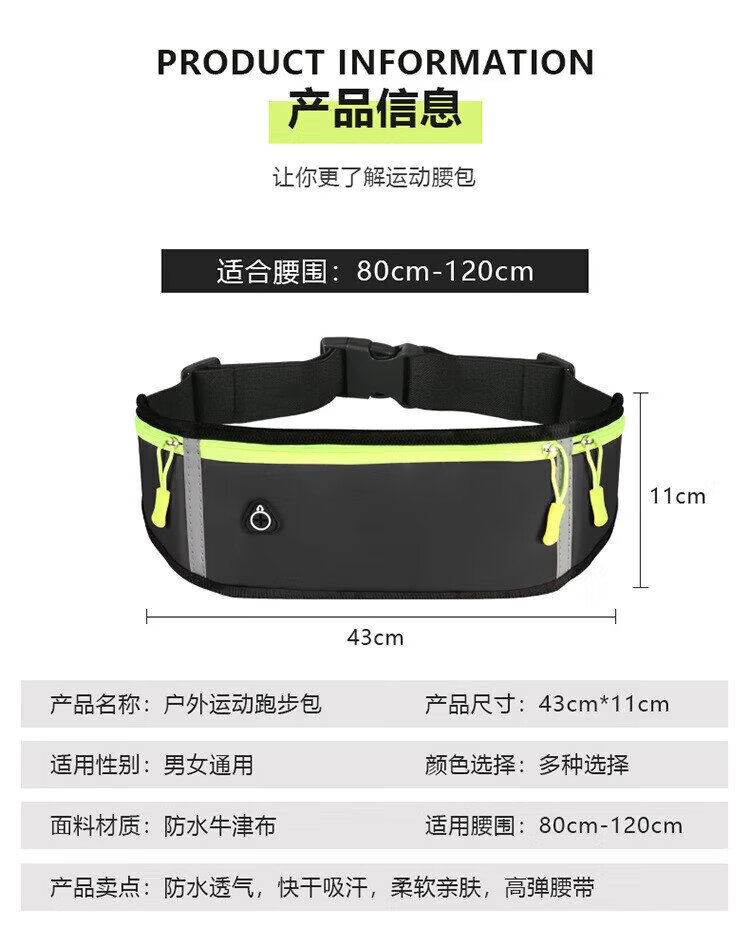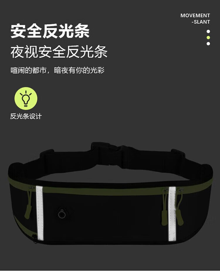 歌柏妮运动腰包跑步手机携带神器男女户外多功能收纳包防水调节腰带臂包 防泼水反光黑色【新款】