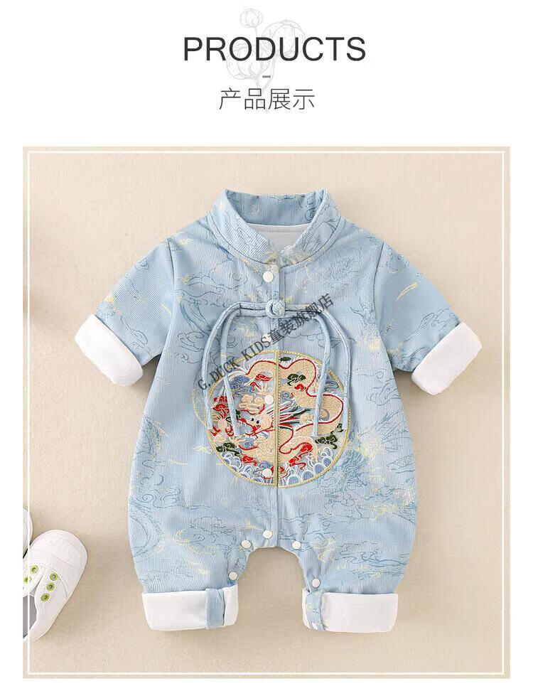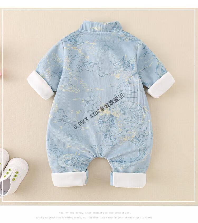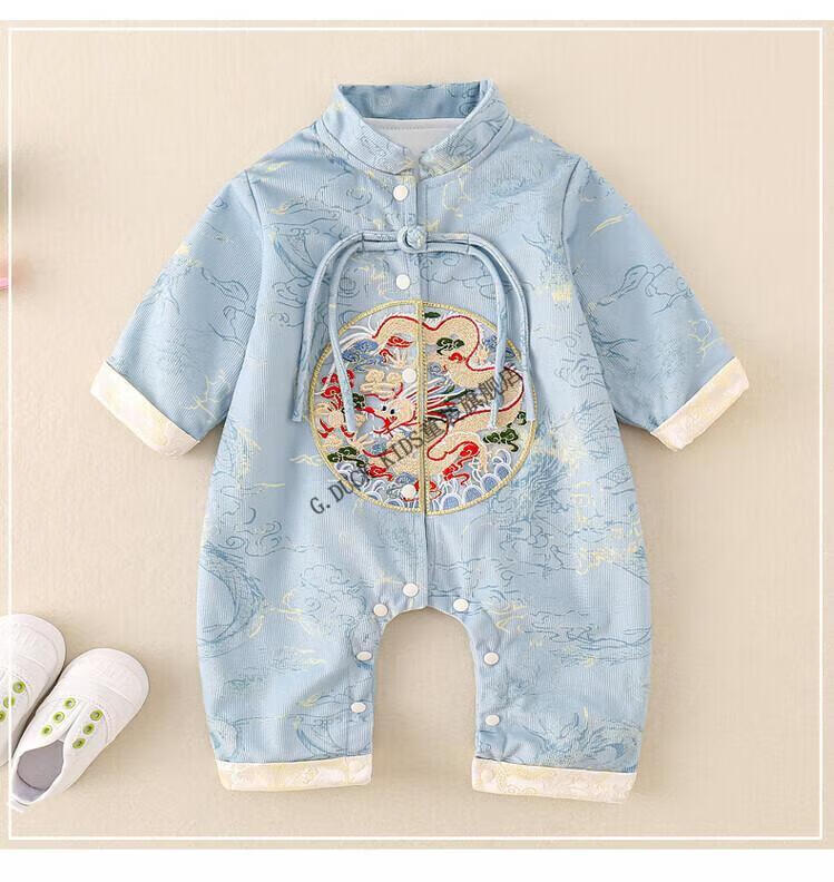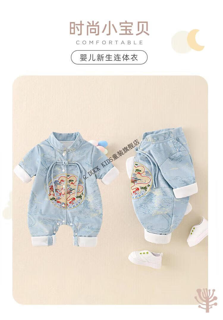 G.duck小黄鸭婴儿衣服中国风抓周新生儿连体衣男宝宝满月百日宴周岁礼服 9921 红色 66cm 3-6个月(建议宝宝10-13斤)