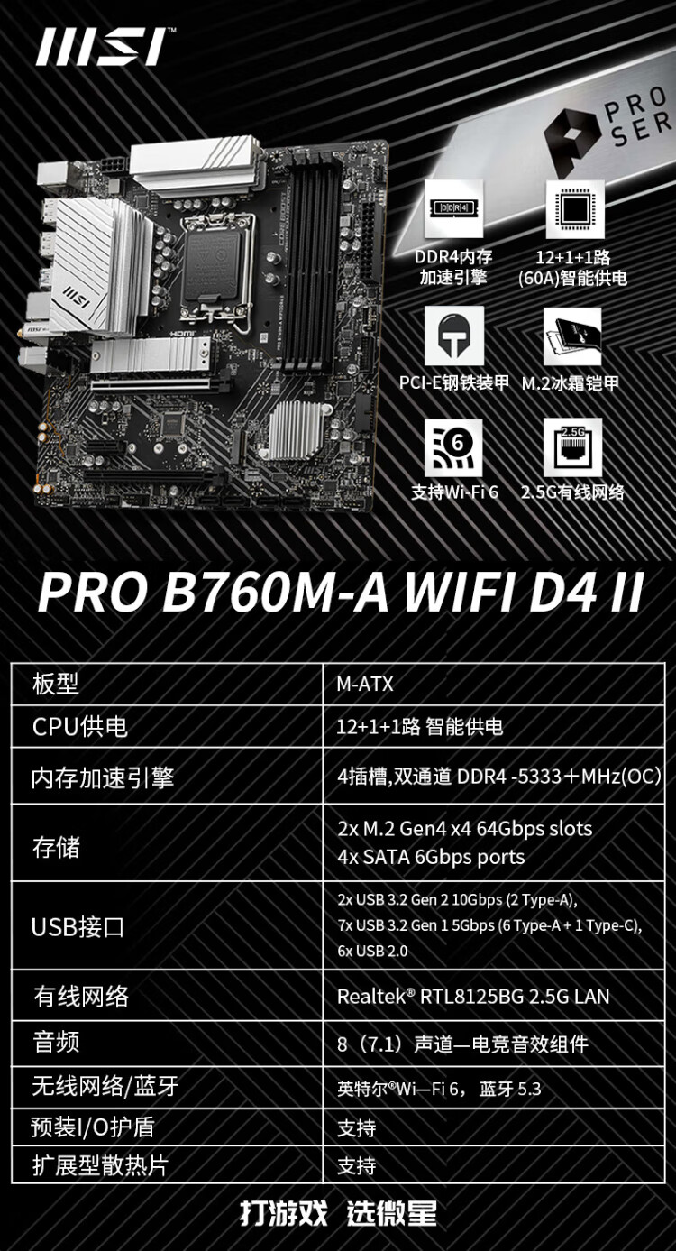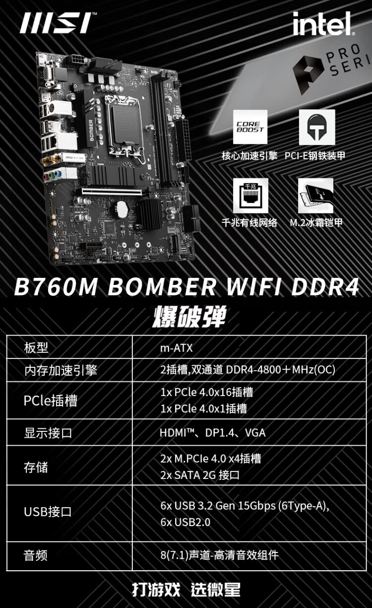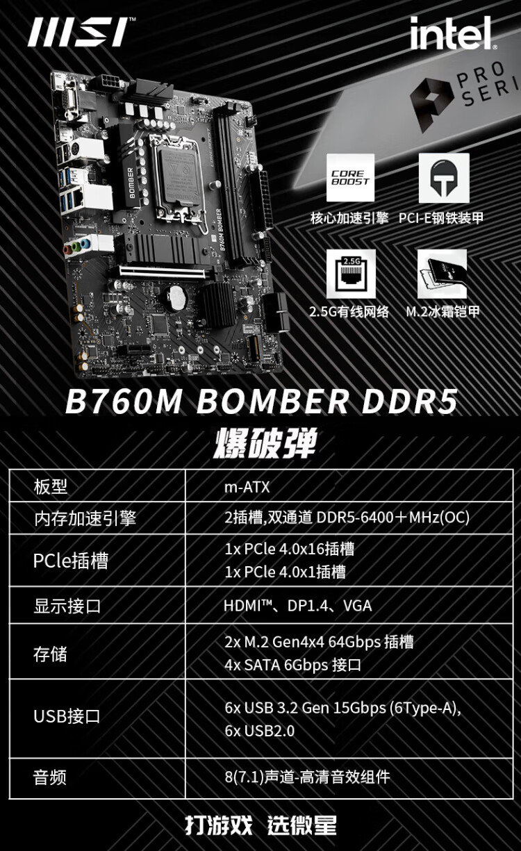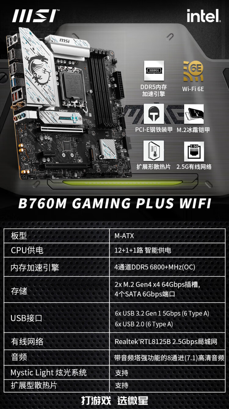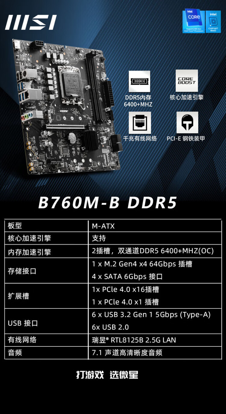 微星(MSI)B760M 搭 英特尔 12代I5 CPU主板套装 B760M GAMING PLUS WIFI D4 I5 12600KF