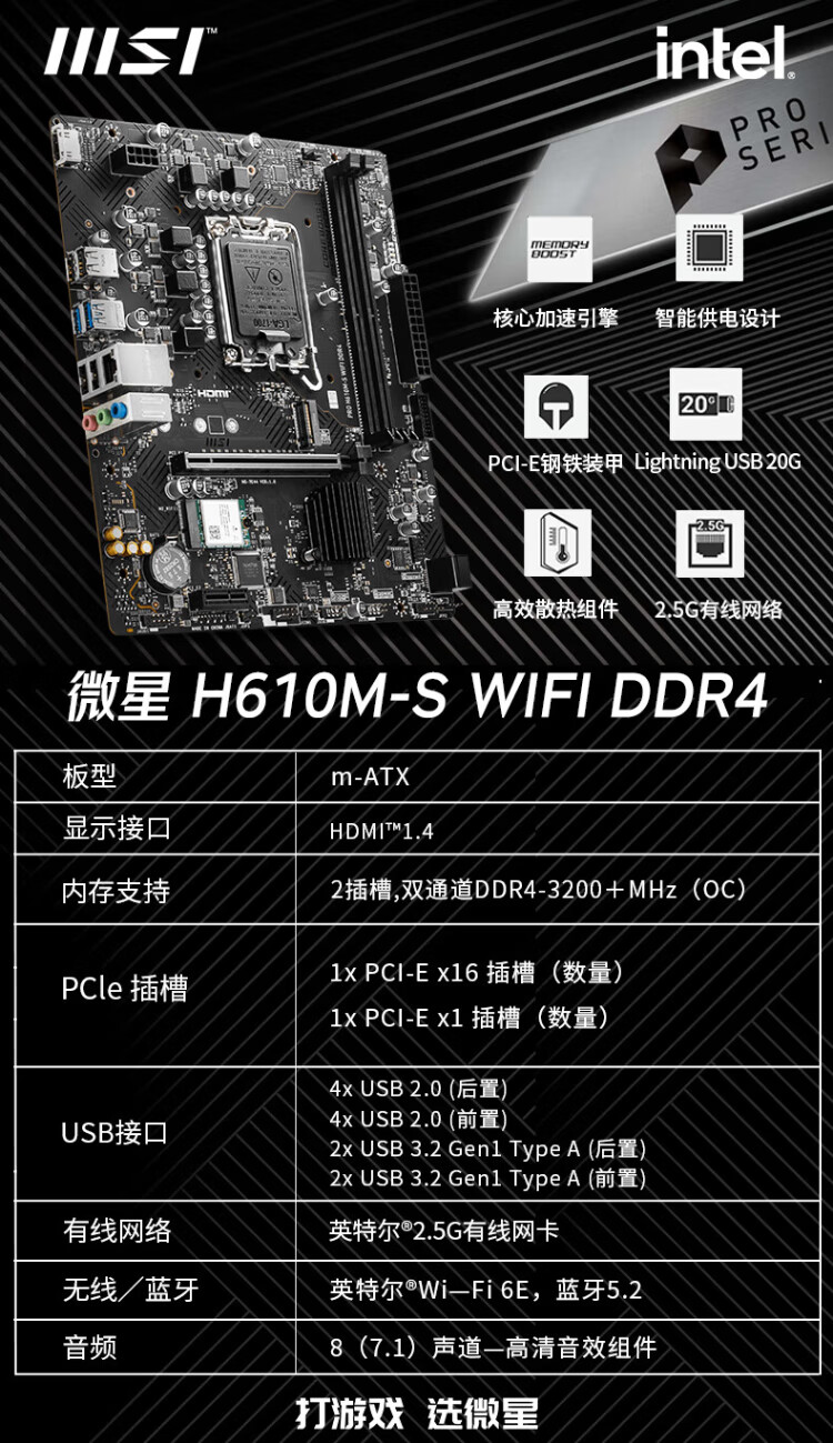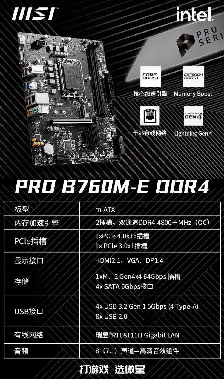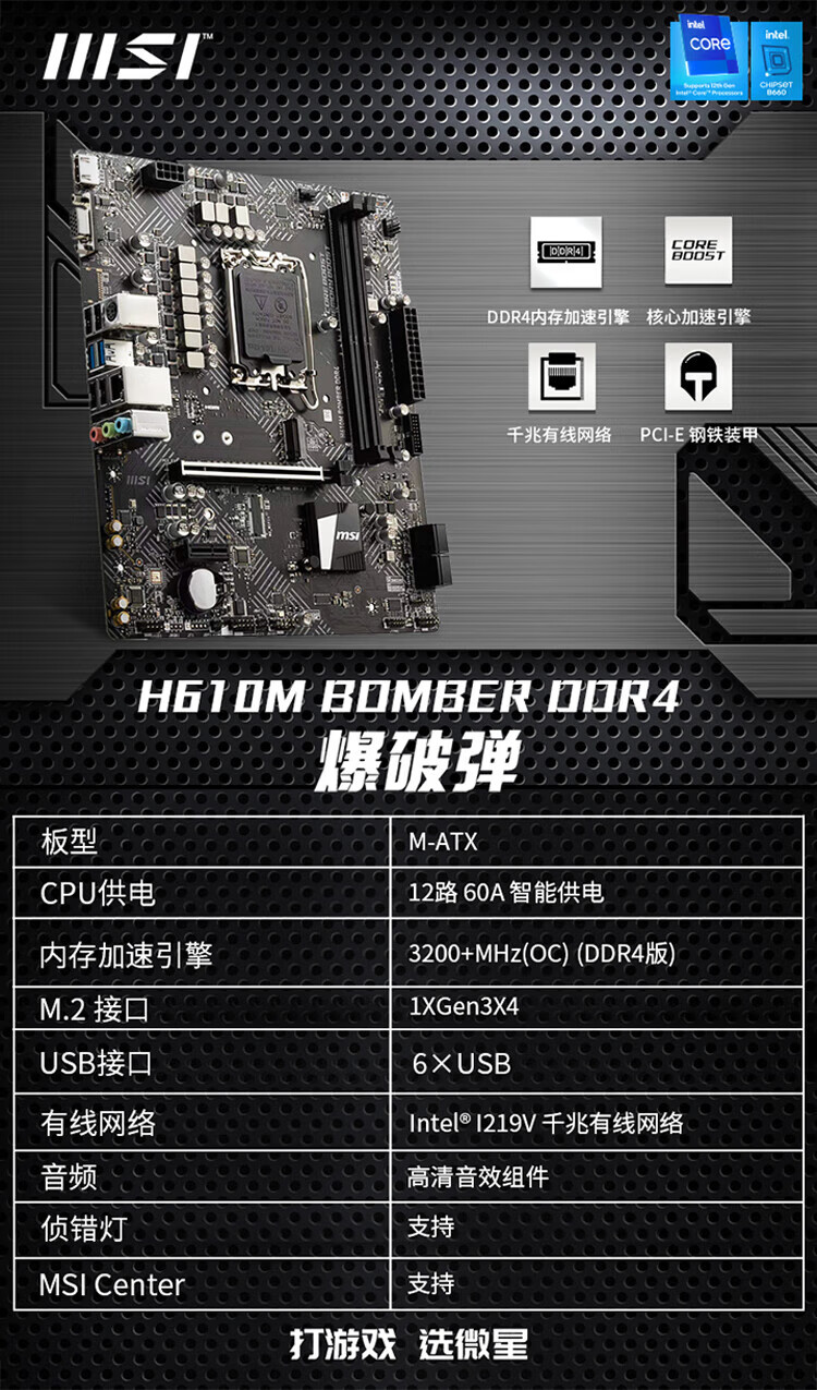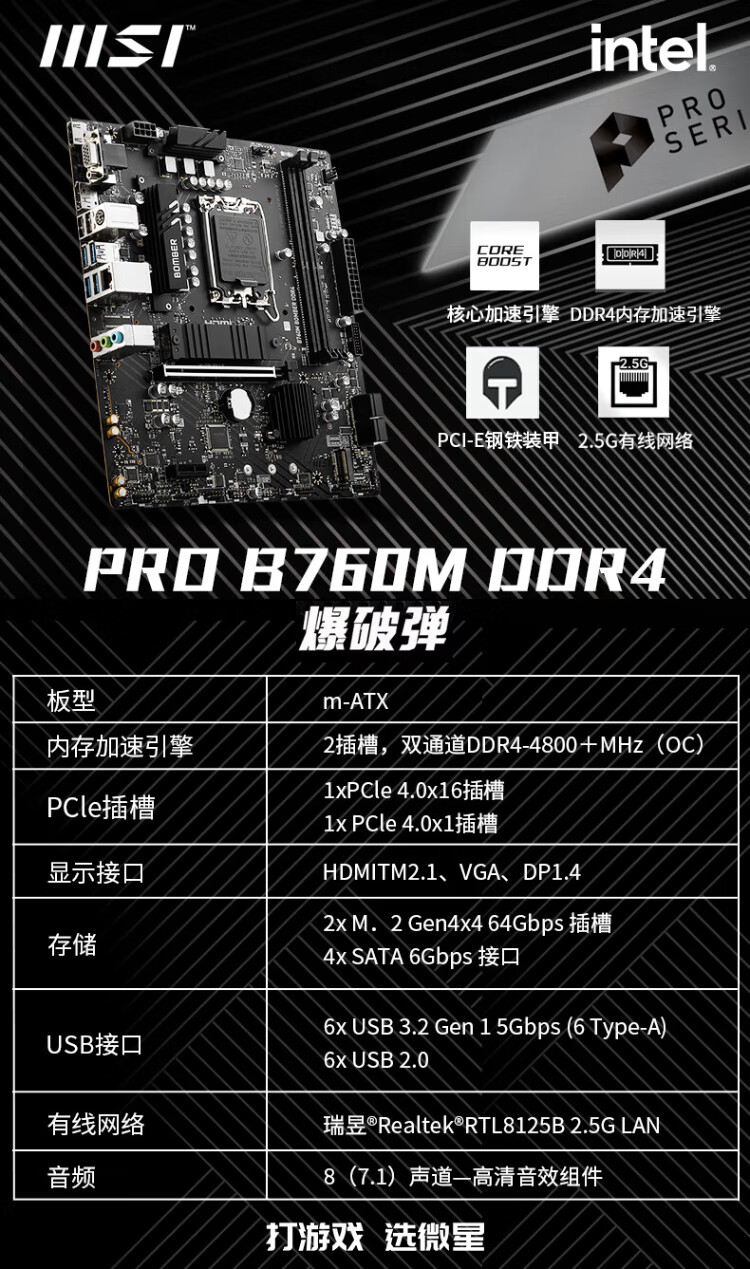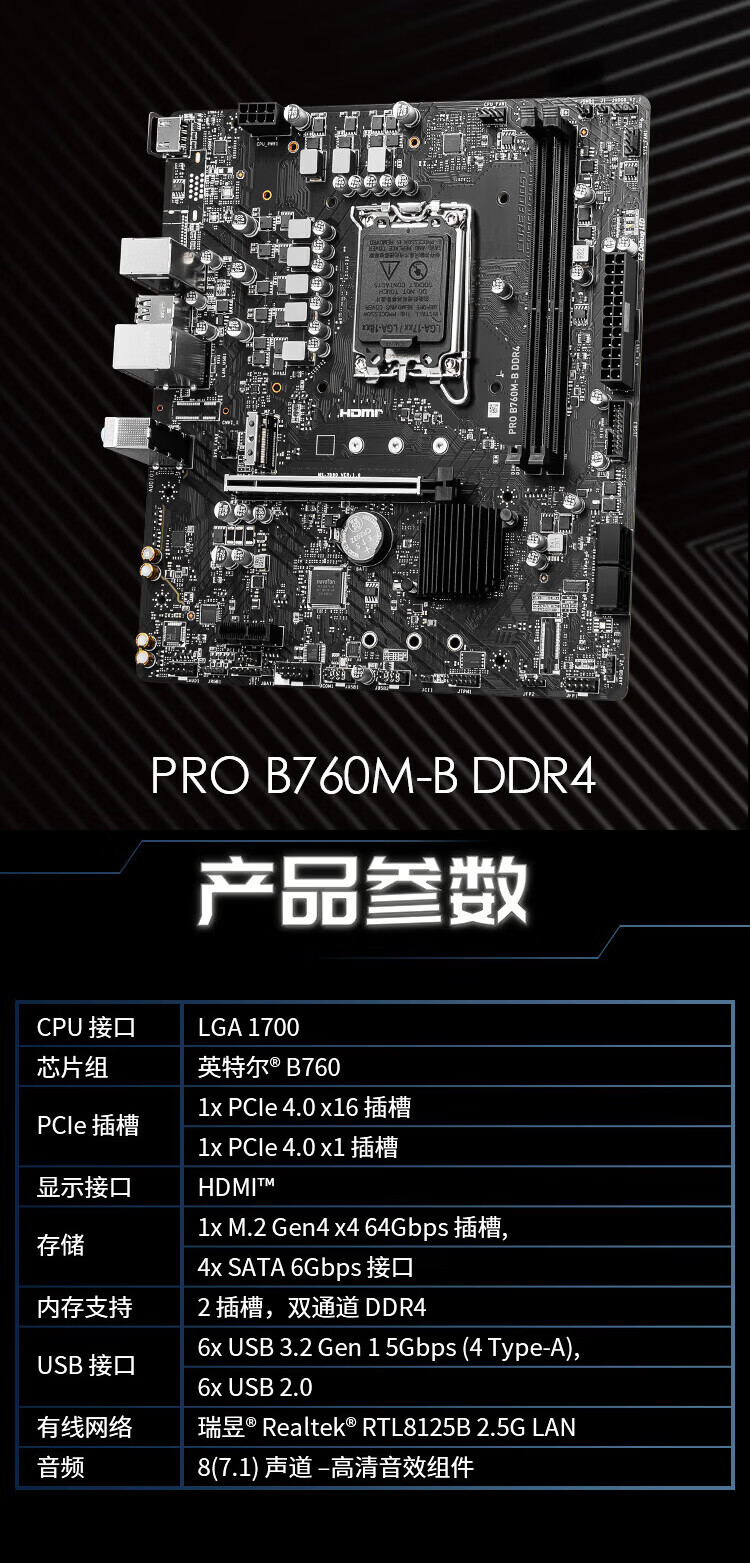 微星(MSI)B760M 搭 英特尔 12代I5 CPU主板套装 B760M GAMING PLUS WIFI D4 I5 12600KF